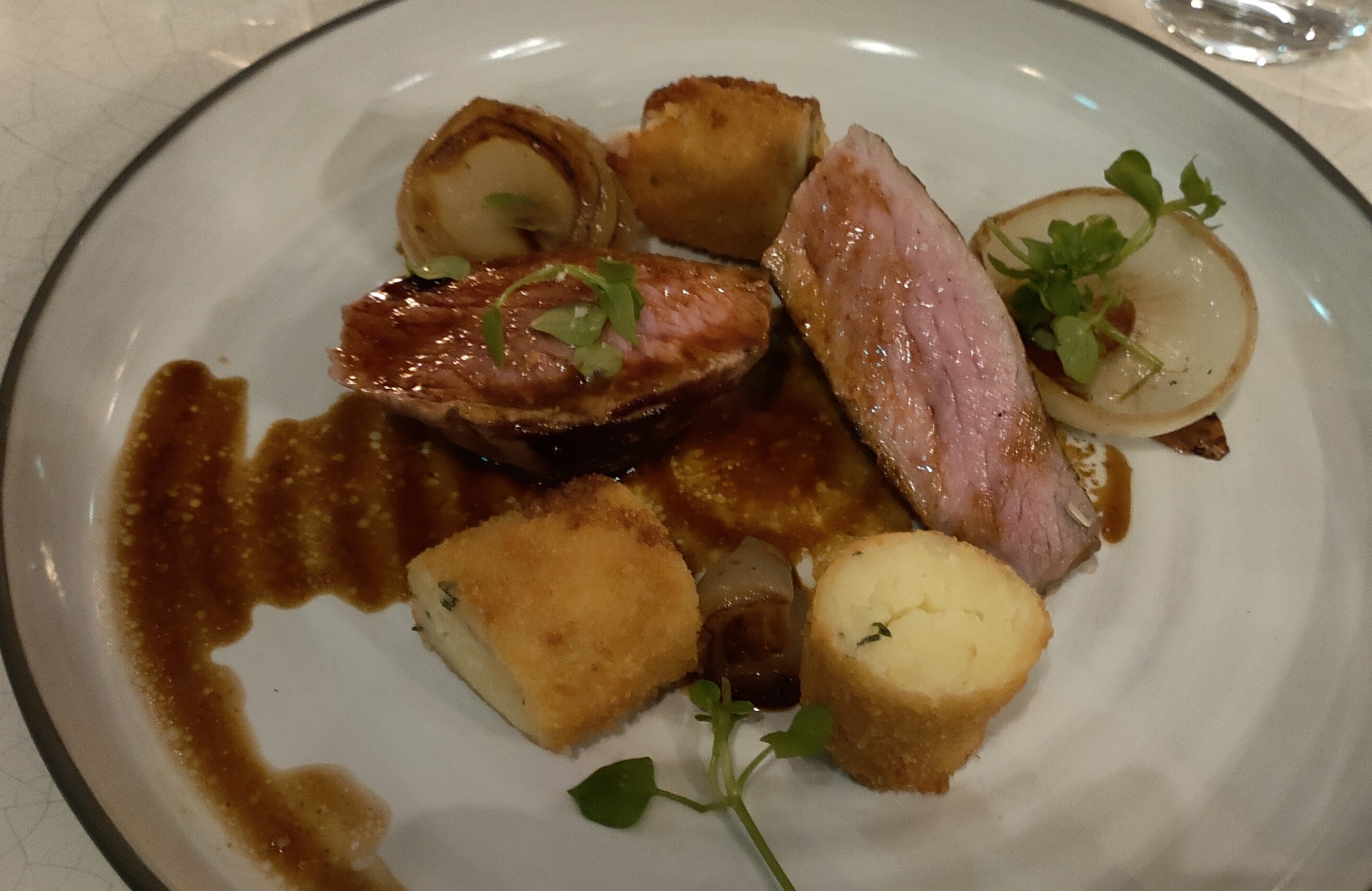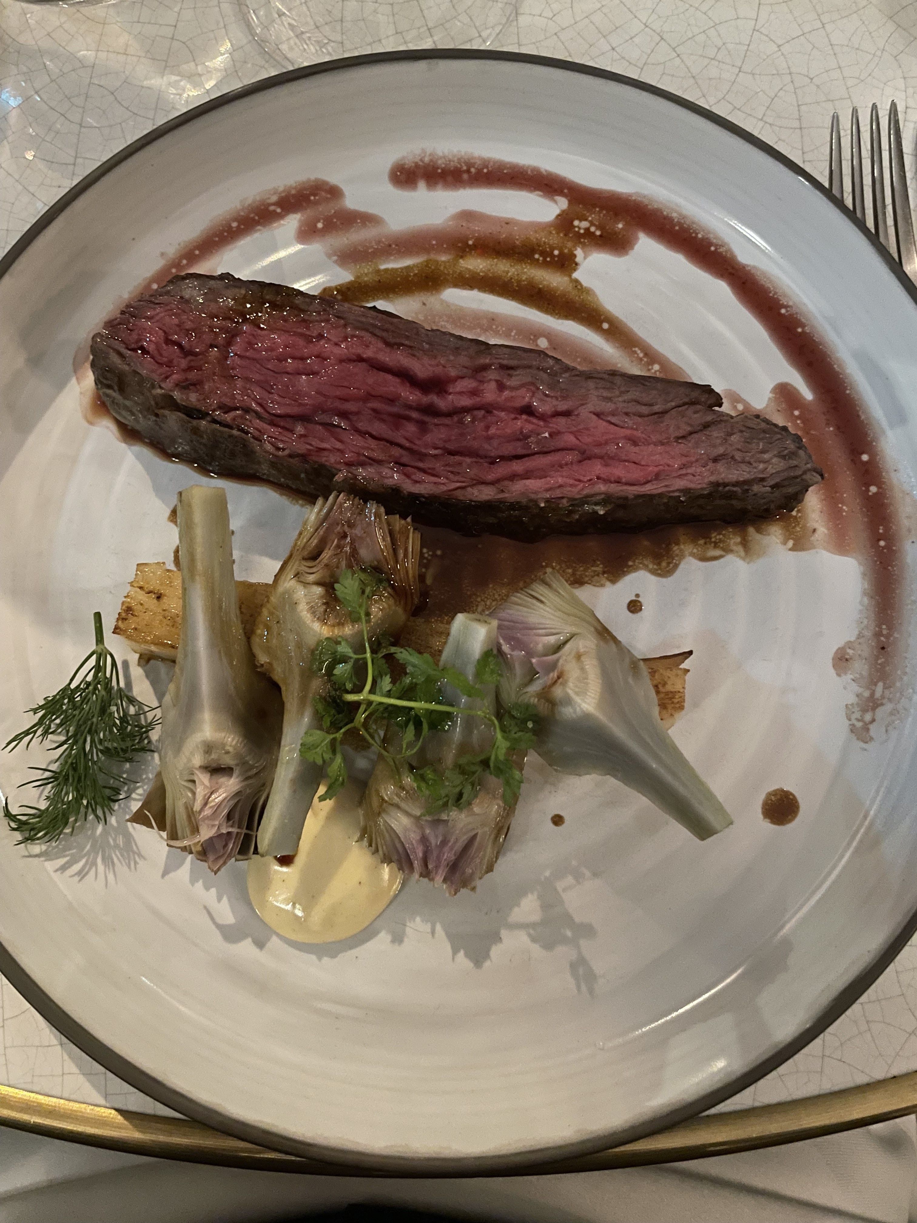 Tout était absolument délicieux ! Ce restaurant propose une carte avec des prix très raisonnables (menus à 44 €), compte tenu de la qualité des plats, qui sont tout simplement exquis, de l'entrée au dessert ! Le service est impeccable, et l'endroit est magnifique.