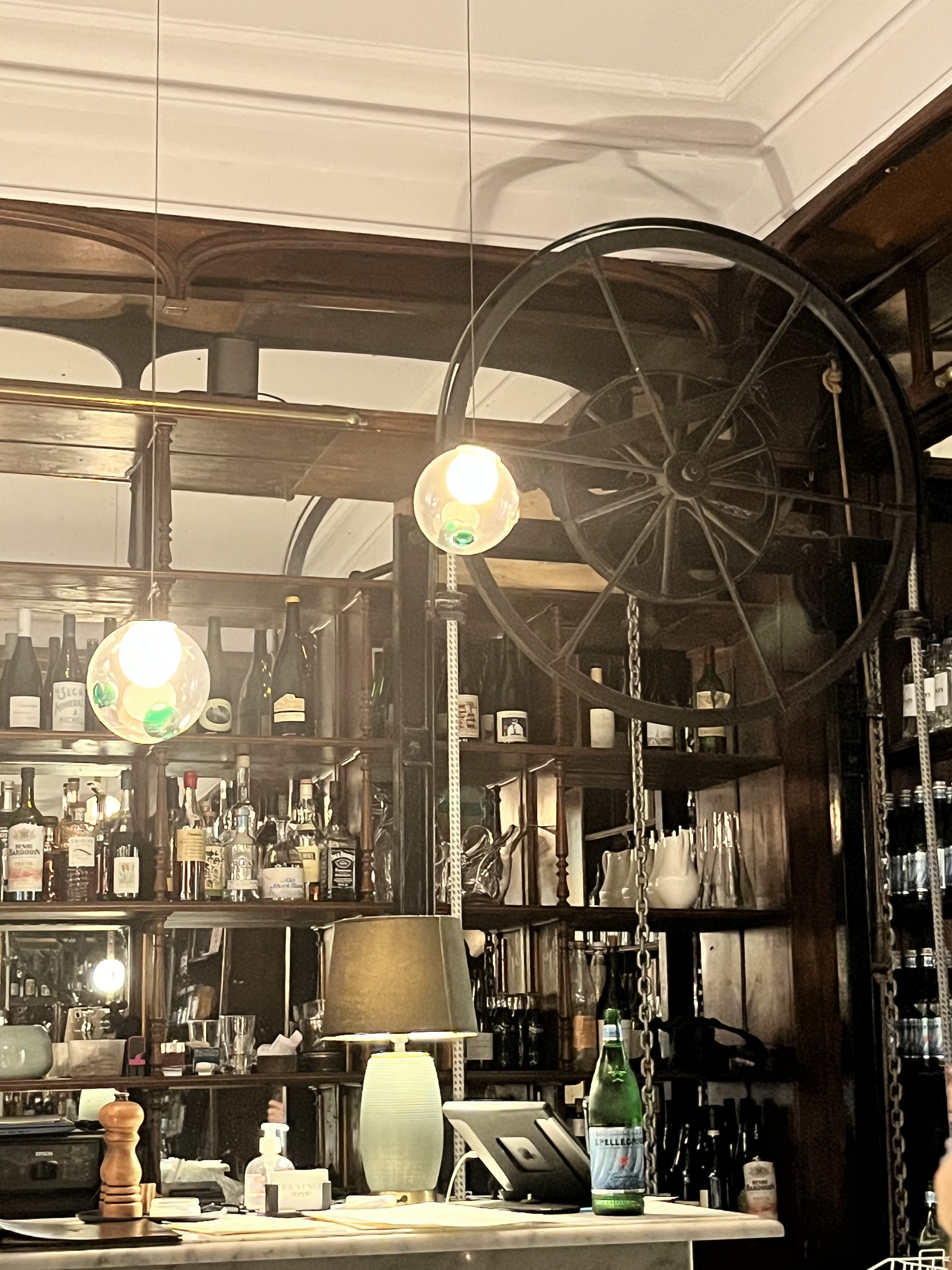 Superbe endroit, d'un intérêt historique. Pand en bois et miroir au mur, carrelage d'origine, bien remis au goût du jour. Un très bon service. Un excellent choix de vins. Et pour la qualité un bon rapport qualité prix sur le menu dégustation.