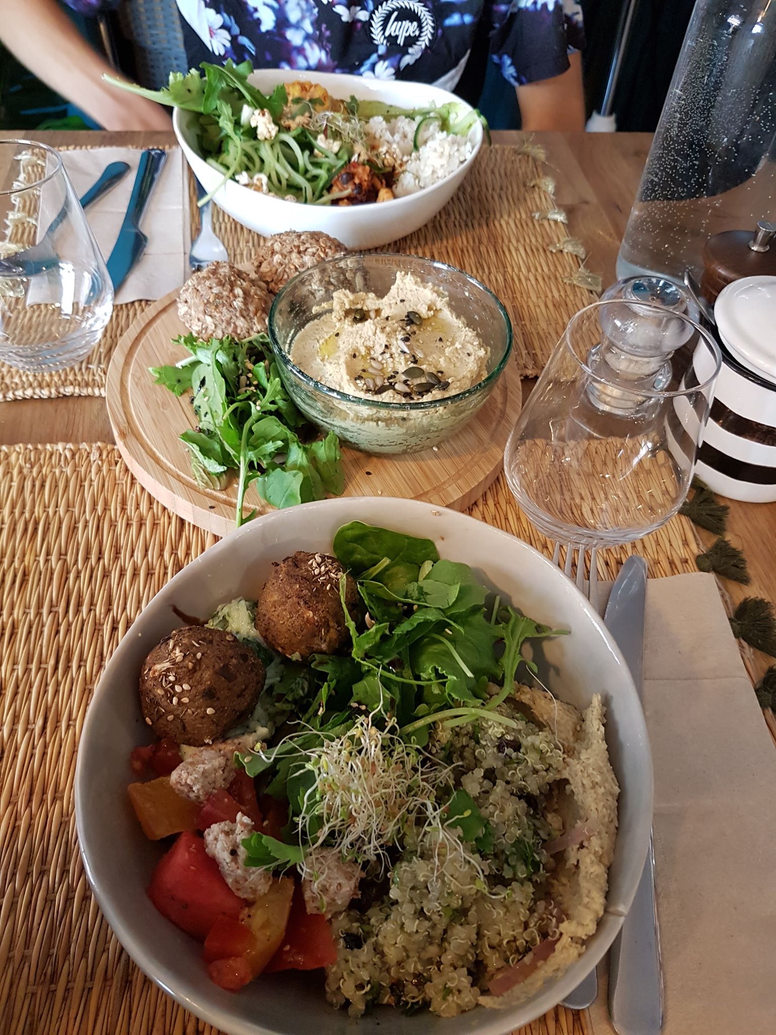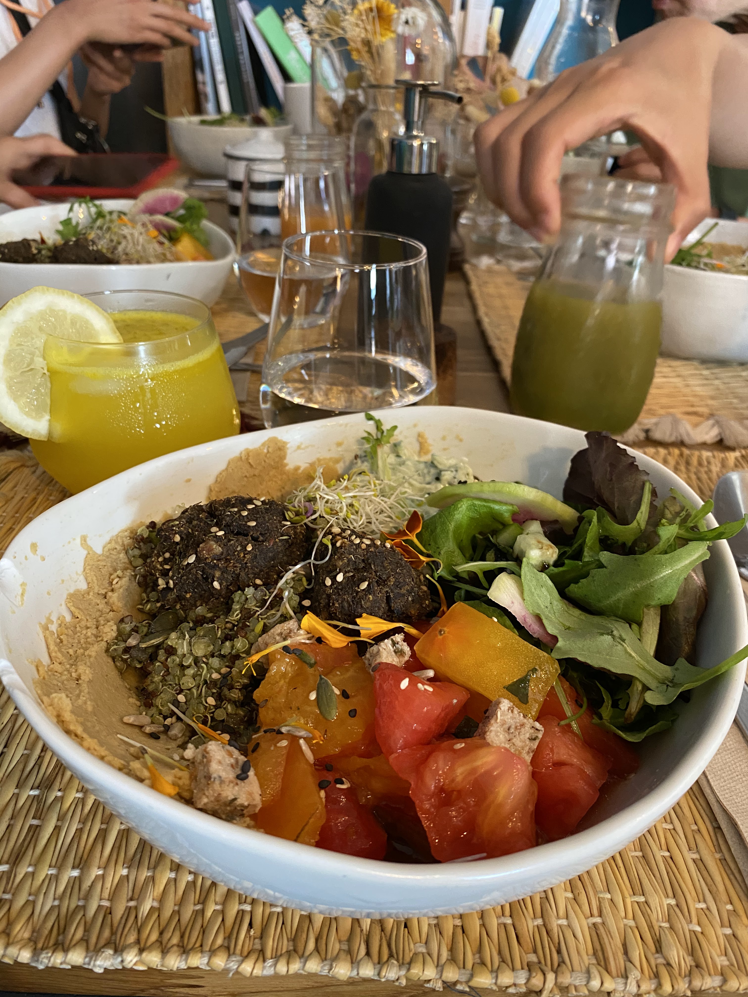 Vacanciers de passage, après trois jours saucisson-fromage dans les Cévennes, nous voulions manger du frais et des légumes... On a trouvé l'adresse sur les internets, et nous n'avons pas été déçus ! Déjà, l'endroit est superbe, avec une déco soignée. Ensuite et surtout, c'est délicieux, avec le petit plus qui fait la différence pour chaque préparation du bowl (l'assaisonnement original, les amandes dans les boulettes d'aubergine, les pistaches dans le quinoa...). La quantité m'a parue très bien puisque j'ai été tout à fait repue (au point que je me suis sentie incapable de prendre un dessert qui me faisait pourtant très très envie !). Certes, c'est plus cher que les chaînes pokémachin, mais la différence se justifie sans problème par le plus en qualité et originalité (et la citronnade libanaise était topissime !!).