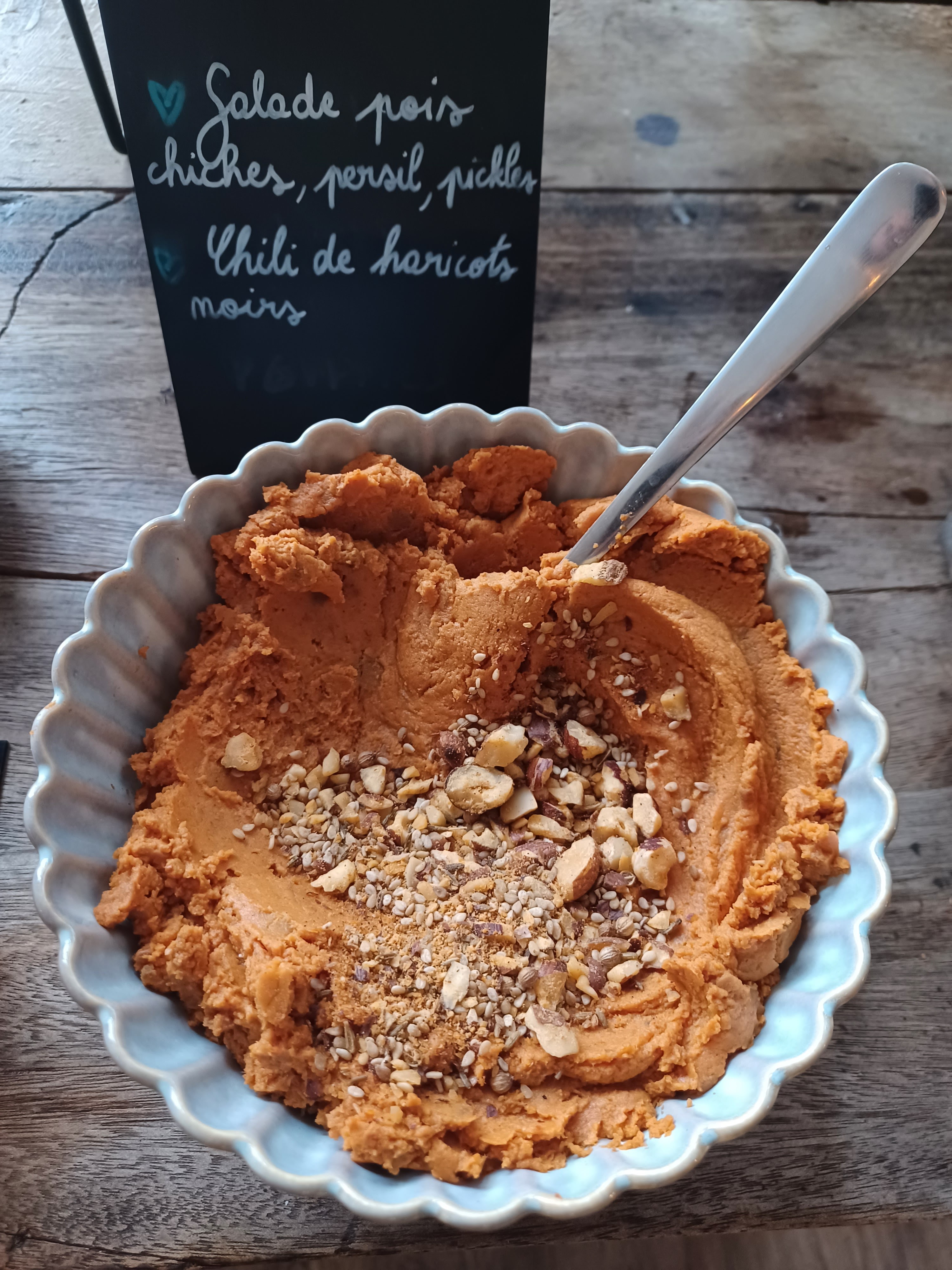 Lieu chaleureux et cosy. Belle décoration. Plats colorés et succulents faits maison. Belle découverte de la cuisine végétarienne.