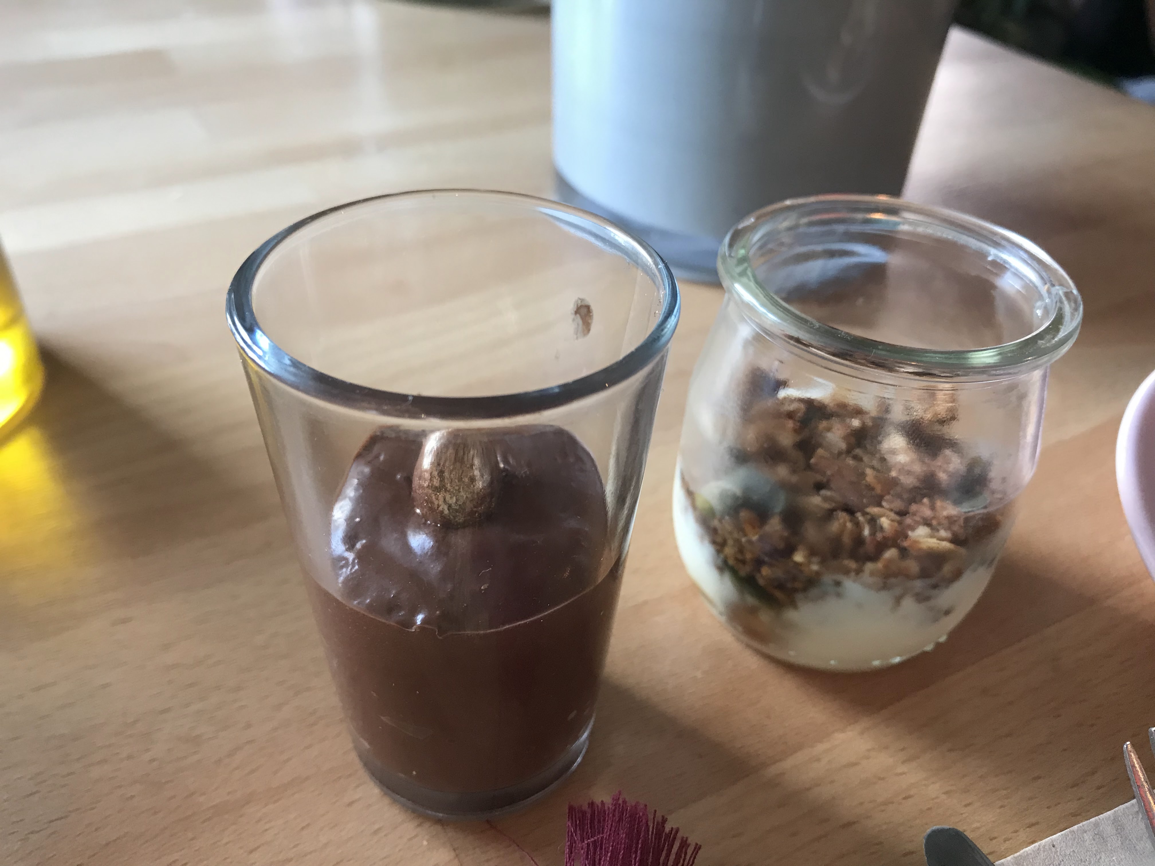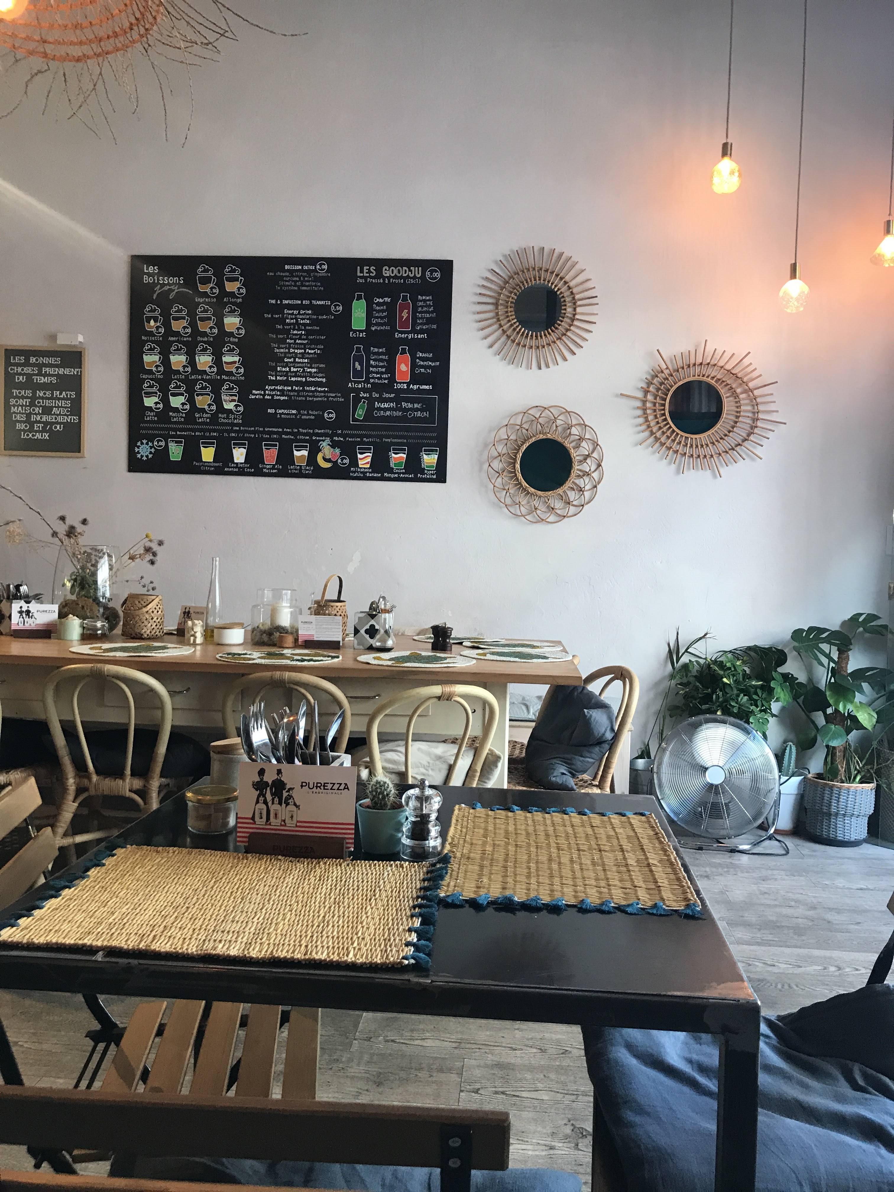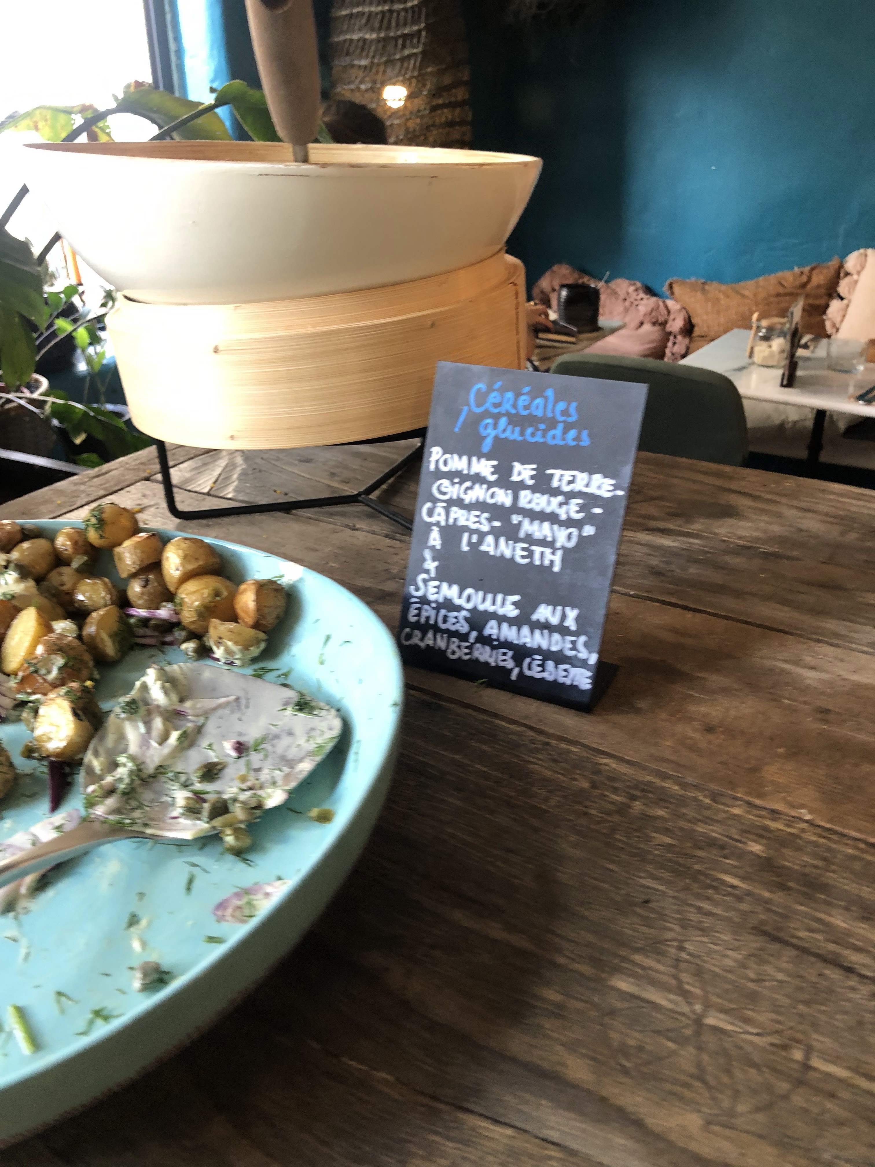 La deco: canon ! Très brunch, fit, dans l air du temps ! Le menu super sympa, jus de fruit, thé chaud , buffet de sucre, une assiette sale. Super bon l’œuf et la purée avec les graines Spécial mention pour le yaourt poire poche et le banana bread! Très réussi, super pour le dimanche matin !
