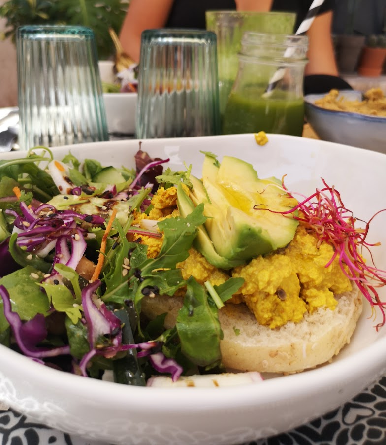 Cuisine originale et variée, que des plats vegan, locaux et bio et serveuse super sympa, que demander de plus ? On a mangé sur la terrasse à l'ombre dans une petite rue très calme. La déco à l'intérieur est splendide avec de nombreuses plantes et livres. Petit coup de cœur pour la mozzarella vegan (plat du jour) et le café glacé au lait de coco <3