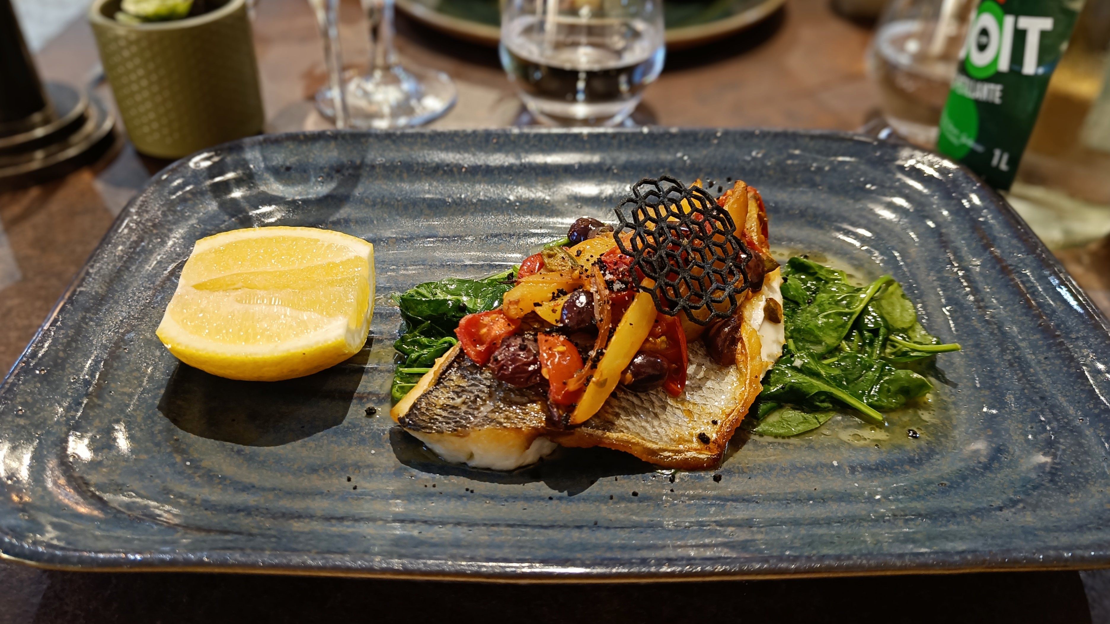 Excellent repas fait maison qui se rapproche de la gastronomie !! Le filet de bar (ou loup dans le sud!!) était parfaitement cuit et posé sur des poivrons rouges fondants et de petites olives noires avec de la roquette: un régal !! En dessert, la pavlola au citron excellente et une tarte au pomme excellente également : pommes caramélisée et pâte feuilleté fine et craquante Bravo au chef qui maîtrise. La qualité a un prix mais le rapport est excellent On recommande vivement. Ce resto n est pas un attrape touriste, comme on en voit beaucoup