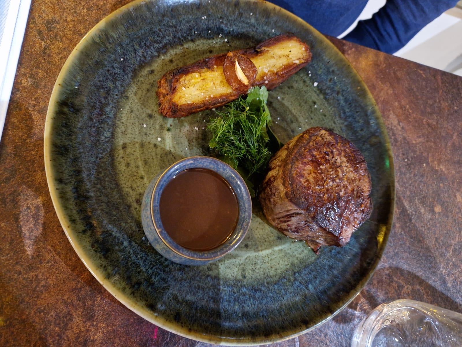 Tarte tatin de tomates caramélisée is amazing. Filet de bœf came out too well done for what was expected for à point. Recommend Dôme au chocolat.