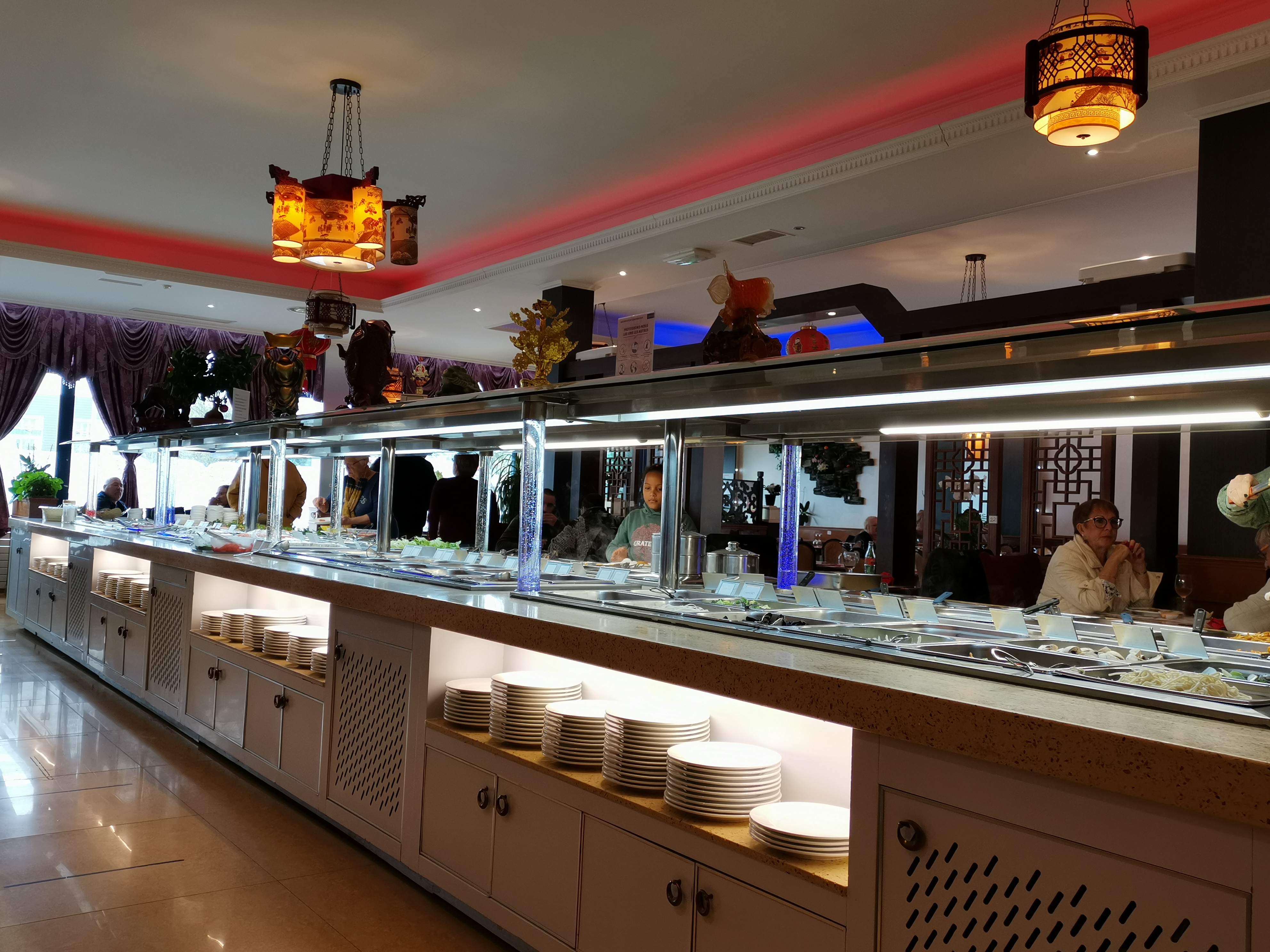Très belle décoration asiatique mais bien visible des affiches A 4 donnant des instructions, payez avant de manger ne gaspillez pas sinon amende laissez les toilettes dans l'état impeccable où vous souhaitez les trouver . Surprenant. Il y a de très beaux emplacements mais réservés aux tables pour 4 ou plus, si vous venez en couple vous serez installés dans le couloir le long du buffet, même si beaucoup de tables de 4 (2x2) restent libre. Pour 19,99 € le buffet propose un très bon choix comme on attend des restaurants de ce type. Pour avoir des sushis il faut lever la feuille de plastique destinée au stockage mais resté pour la présentation. Tout ce que j'ai choisi était très bon, félicitations aux cuisines. Le personnel est très efficace mais pas très agréable, surtout le préposé au wok et la dame à la caisse. Loin du bel accueil asiatique. Je retournerai peut être dans ce resto car j'adore la cuisine asiatique et le choix est limité sur Berck. Ce restaurant peut être amélioré.