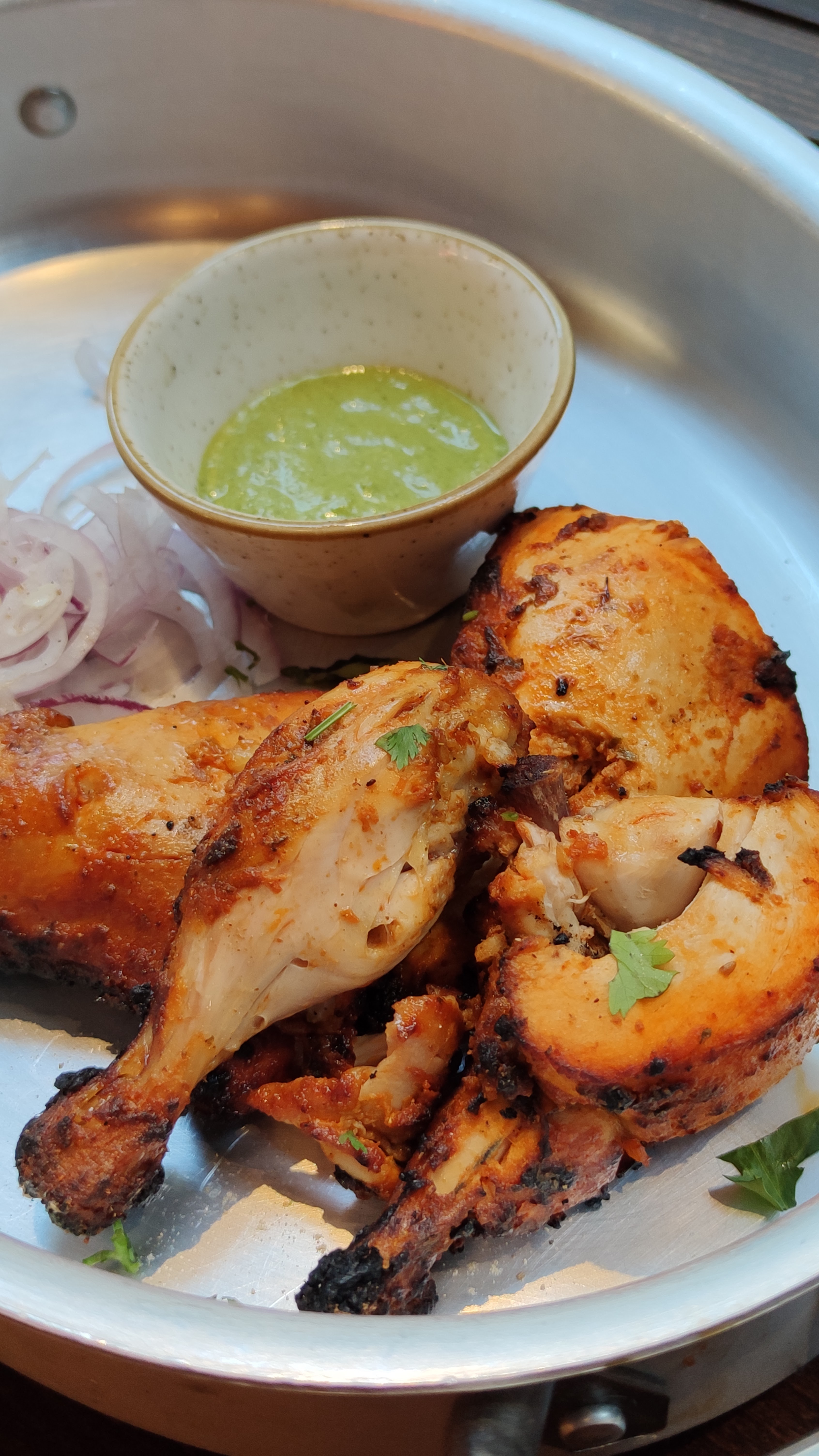 Ce fût une belle découverte de ce restaurant avec ce poulet fermier old Delhi (demi poulet fermier mariné, salade d’oignons rouges et herbes fraiches) accompagné de riz Pulao (riz basmati aromatisé). On a été bien accueillis et bien qu'on n'ait pas pu manger à l'extérieur car nous n'avions pas réservé, la place à l'intérieur était très bien avec assez d'espace pour manger et discuter tranquillement. La serveuse a été de bon conseil et a su répondre rapidement à nos petites questions sur les plats. On y mange bien et les épices donnent du goût aux plats (mes origines font que je connais le riz et les épices depuis mon enfance avec les plats de ma mère et de ma grand mère). Le cocktail feel good in India (crème de coco, passion, ananas, banane) était délicieux !