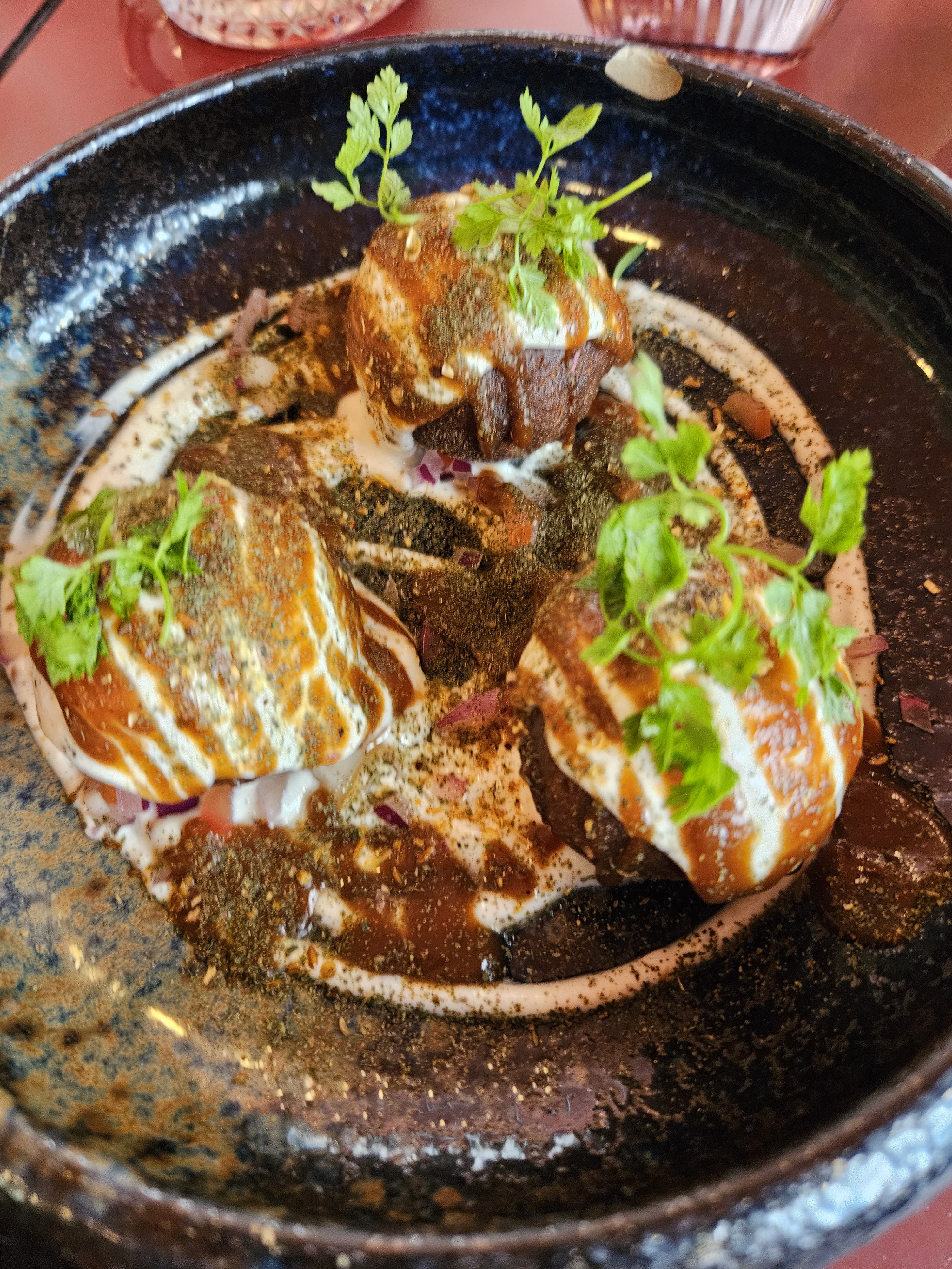 Déjà hâte d’y retourner pour découvrir le reste de la carte! Nous avons adoré notre soirée chez Jugaad. L’accueil et le service impeccable (malgré un oubli qui a vite été corrigé), les plats sont EXQUIS, la déco et l’ambiance cosy.. rien à redire La pintade marinée fabuleuse 🥰 le naan légumes au top🙌🏻 l’aubergine n’en parlons pas 🫠 les croquettes de bœuf 🫶🏻les sauces et assaisonnements sont parfaits