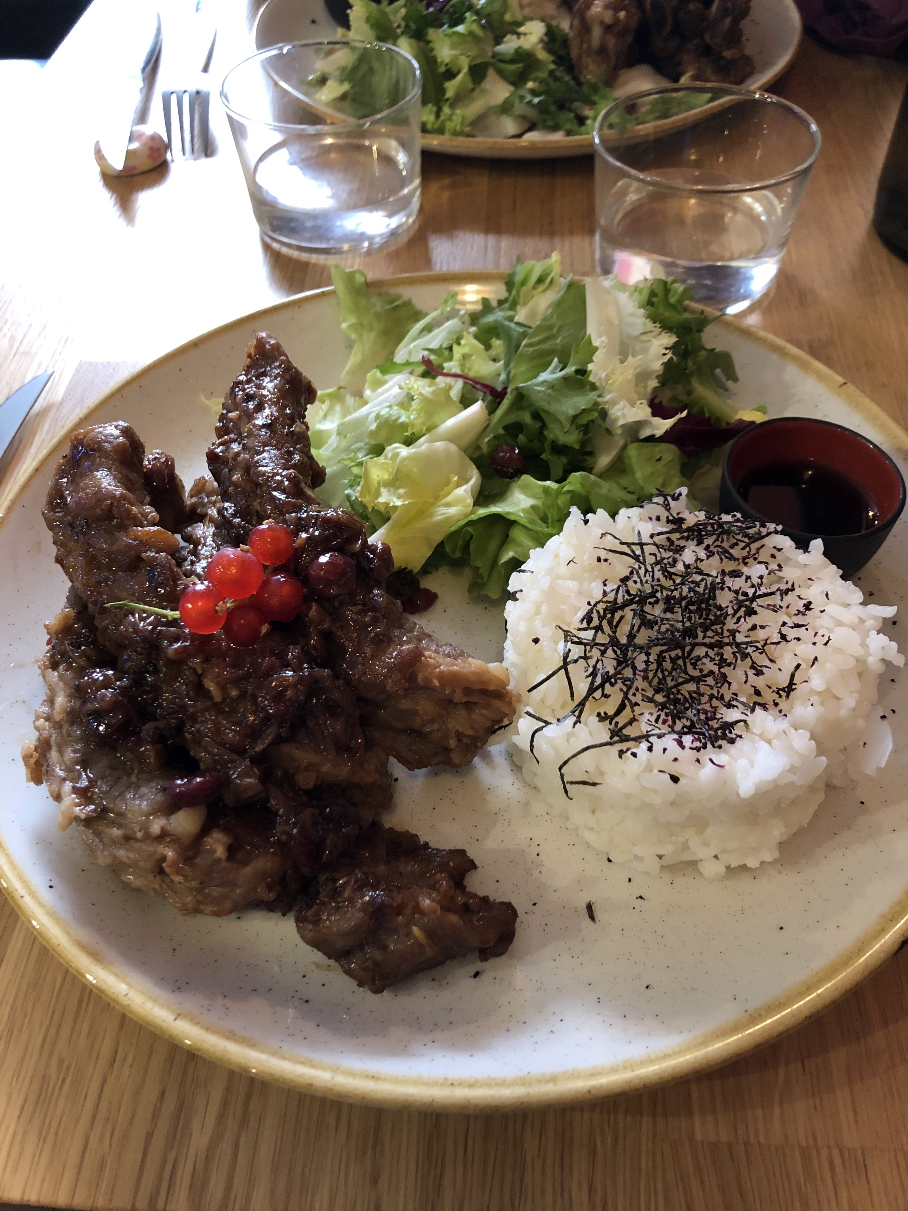 J'ai adoré ce restaurant Le cadre est simple mais joli, le personnel souriant et adorable, le choix est certes limités mais c'est largement suffisant et les prix sont corrects (11€ juste le plat / 15€ entree - plat / plat dessert ou 18€ pour les 3... tous accompagnés de soupe miso) Nous avons pris l'entrée (petite salade variée et rafraîchissante) et avec le plat qui est assez conséquent et délicieux nous n'avons pas eu la place pour les desserts qui avaient l'air vraiment bons en plus d'être originaux Je reviendrai avec grand plaisir !
