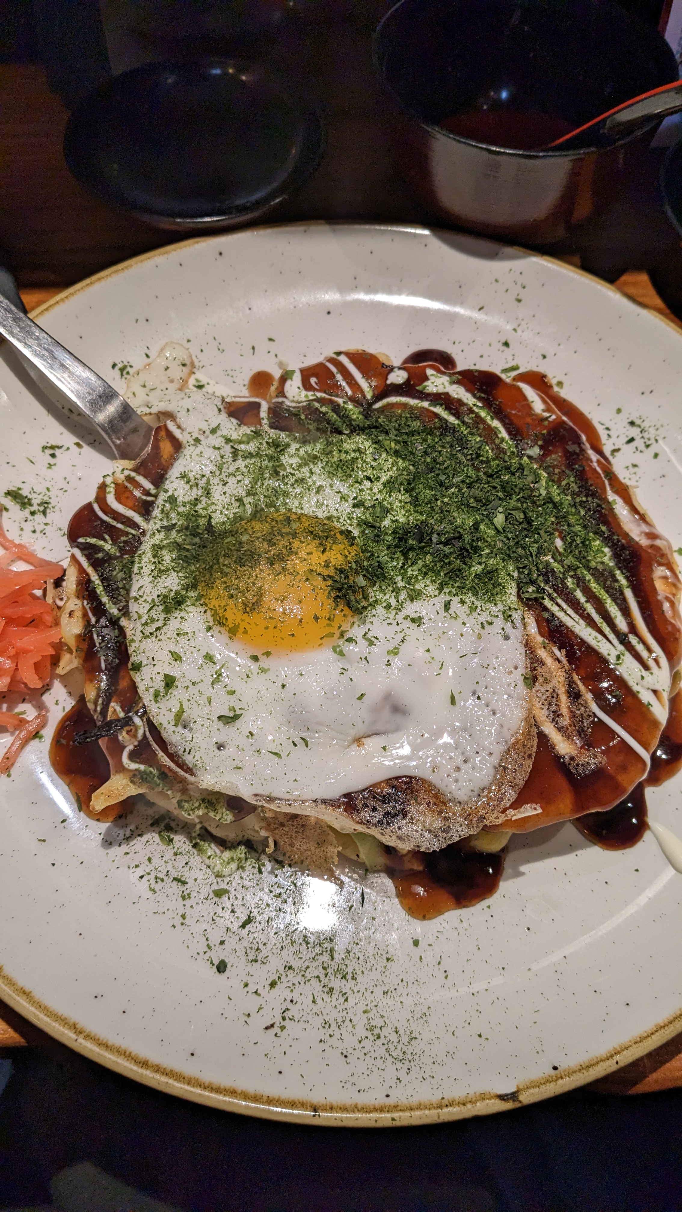 J'étais tellement contente d'y manger !! Je n'avais pas mangé d'okomyiaki depuis des lustres, et celui-ci était délicieux et aussi énorme ! Même la soupe miso est incroyable. J'y retournerai certainement pour goûter tout ce qu'ils préparent.