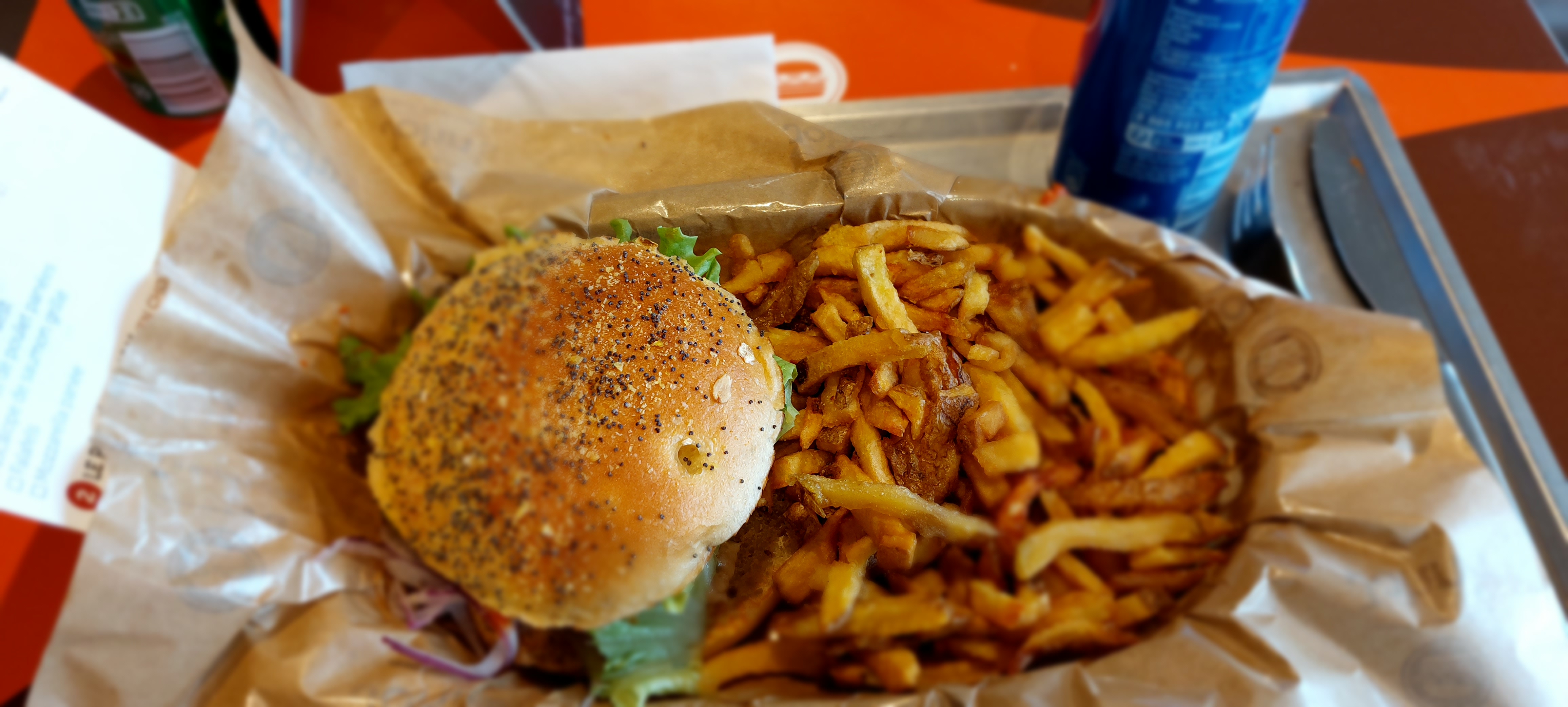 Pas terrible ... Prise de commande à emporter, ils se sont trompé et ont du transvaser le burger et les frittes dans des emballages. Les frittes sont trop fine pour se tenir correctement à la cuisson, elle sortent molle, dommage. Pour le burger, le pain s'imbibe très vite de sauce et devient tout mou et difficilement mangeable, la sauce et le sang du steak dégouline, difficile a tenir en main, car glisse. Très forte odeur de graillou en sortant du magasin où je suis pourtant restée peu de temps puisque j'ai pris à emporter ...