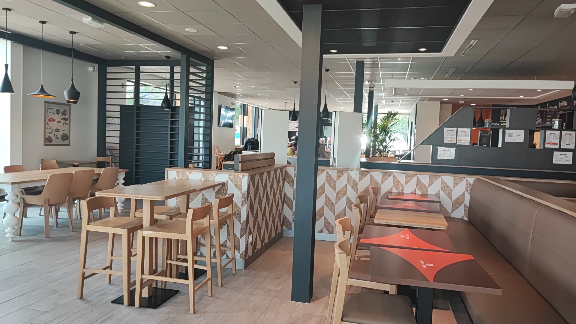 Super déco. J'ai pris un burger vers 15h. Absence totale de personnel. Obligée d'aller en borne et demmerde toi pour comprendre la composition des burgers. Problème de cuisson du steak. Le serveur a oublié ma sauce j'ai dû lui courir après et hurler pour qu'il m'entende depuis sa grotte. Quelques progrès à faire.