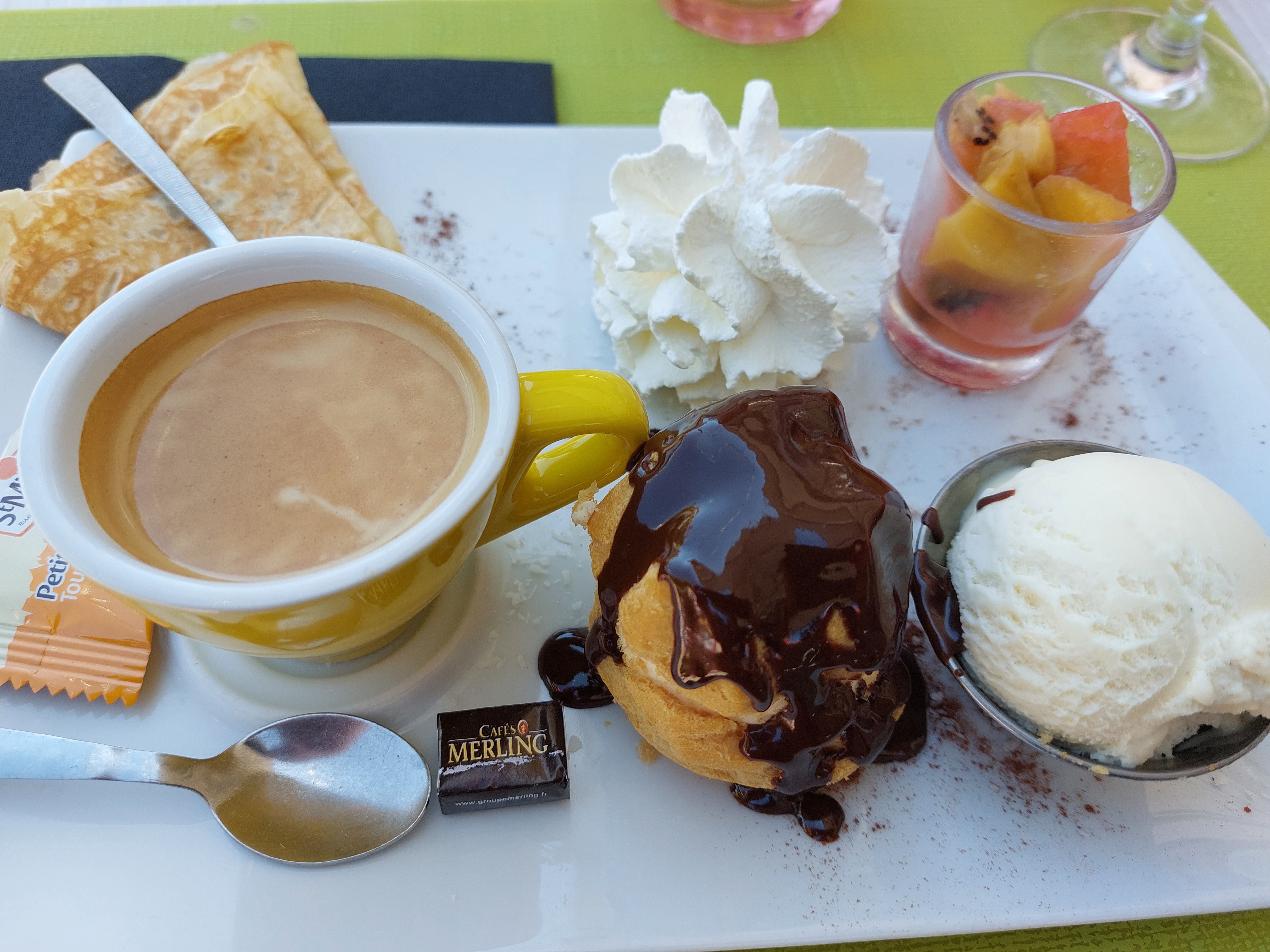 Petite pause pour un café et une crêpe. Tout est délicieux. Chantilly maison. Serveuse très sympathique.