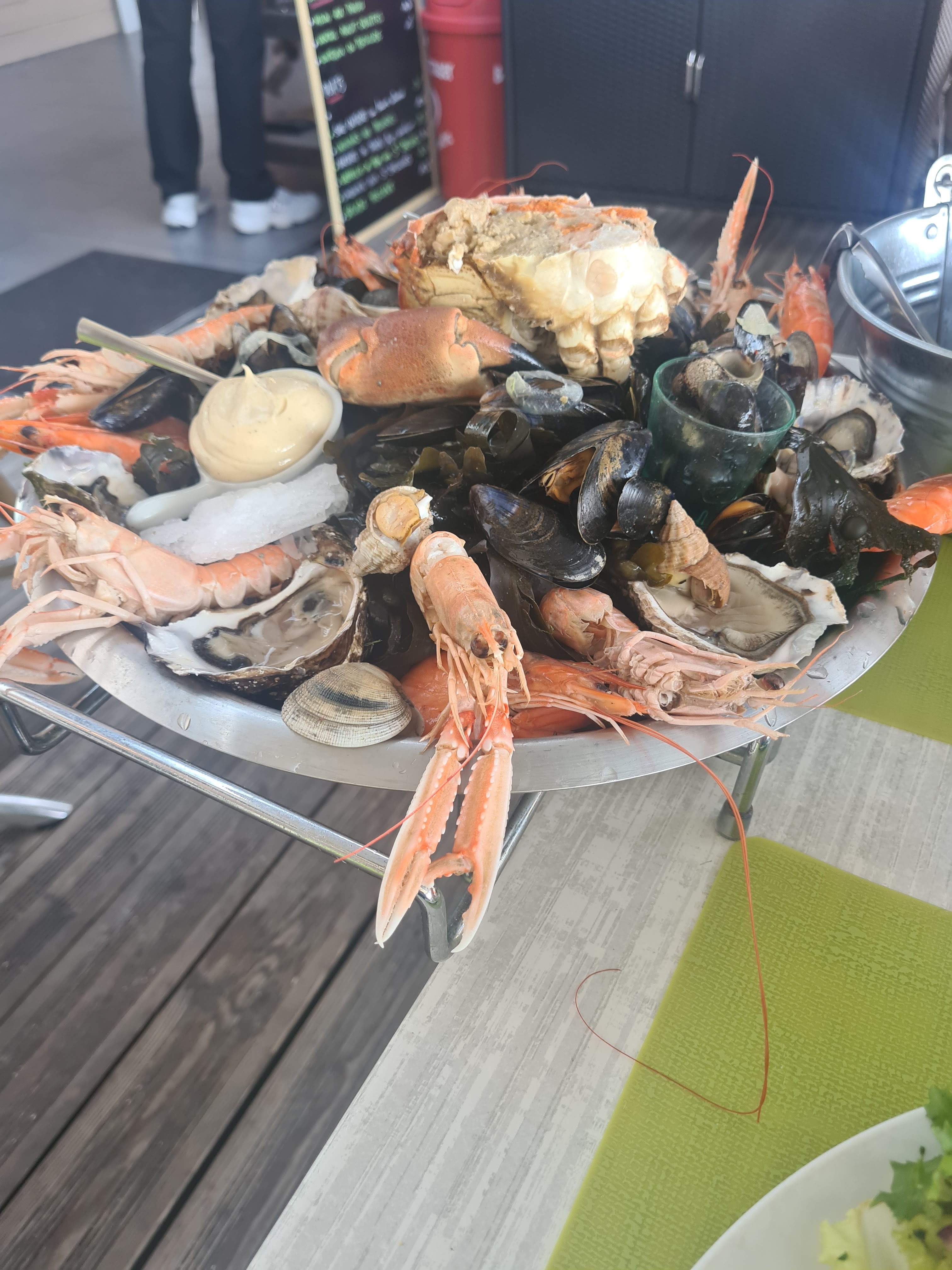 Plutôt déçus vu les commentaires que j'avais lus. Moules réchauffées et écrasées, ... Huîtres moyennes aussi. Bref, un moment à oublier de notre séjour, c'est bien dommage. Comme quoi, tous les commentaires ne sont pas les mêmes. Sûrement la faute à pas de chance...