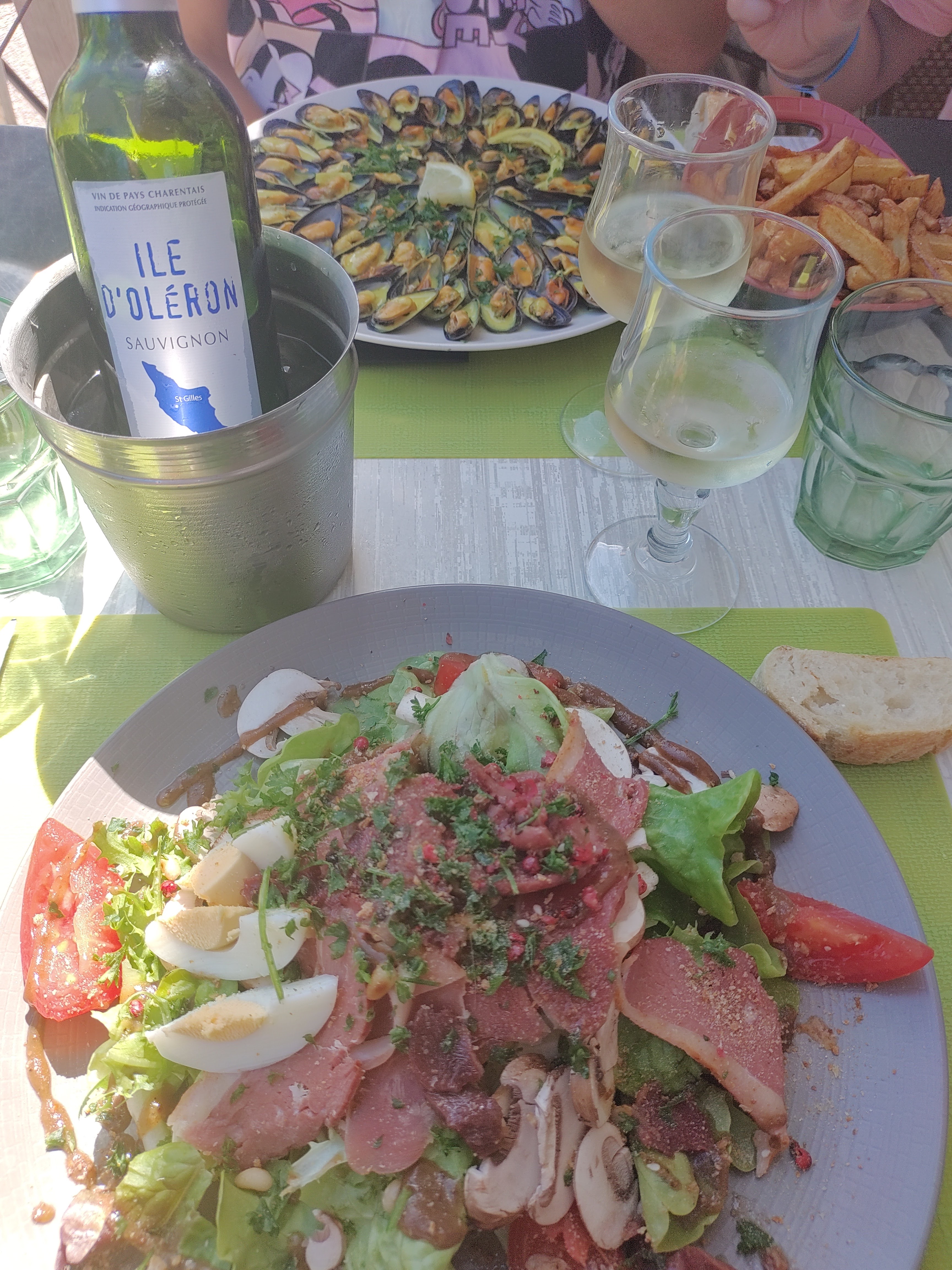 La mouclade Oléronaise est excellente, la crêpe garnie (Québec de mémoire) très bonne, et la bouteille de vin blanc (37.5) servie dans un seau à glace. Le personnel est sympathique. Nous nous sommes régalé.