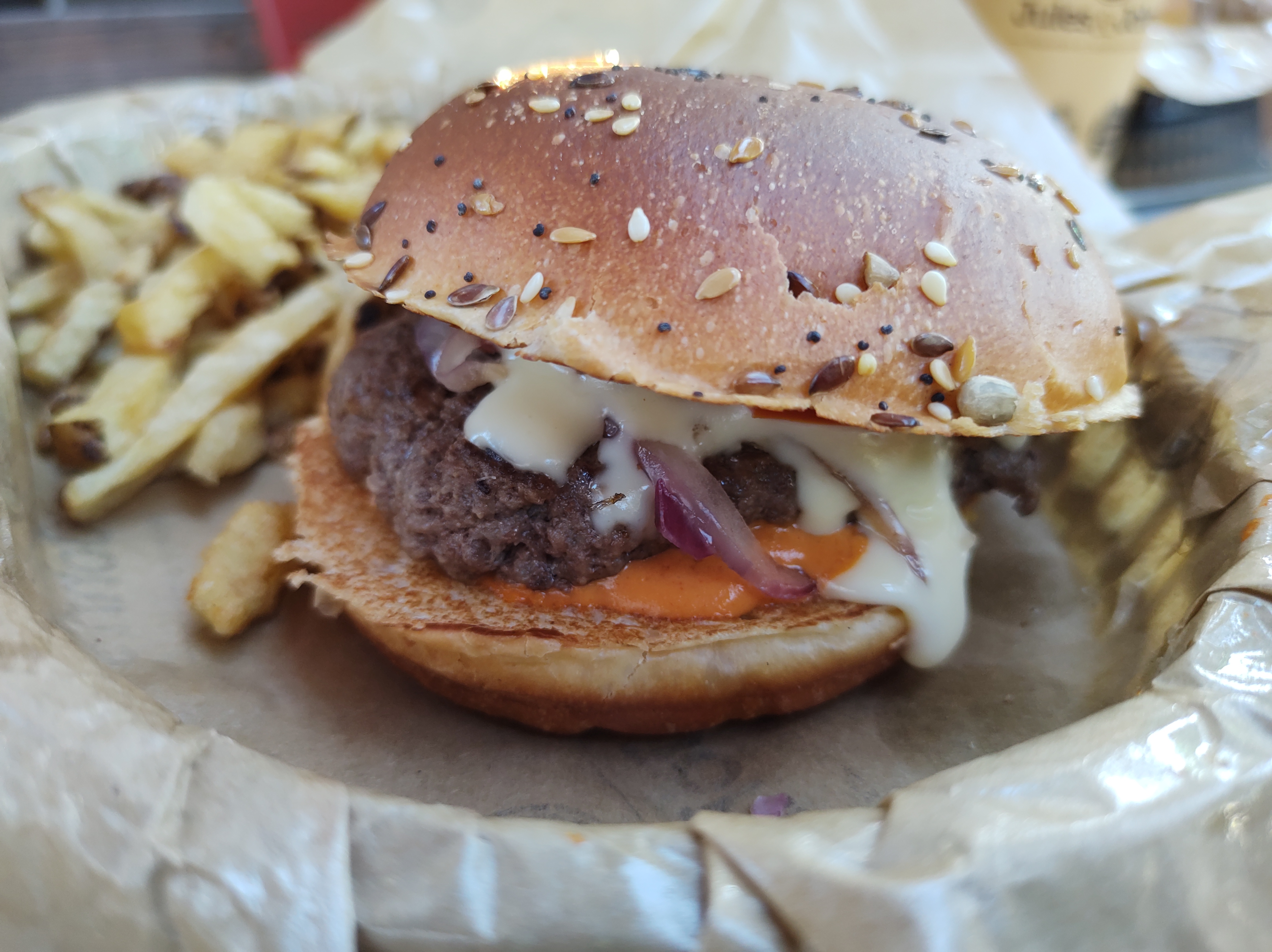 Très décevant. Burger la viande est bonne mais tout est fade. Et les frites.. pour des frites dites maison..plutôt des trognon de frites, trop grillée, sèches et cuites dans une huile ...