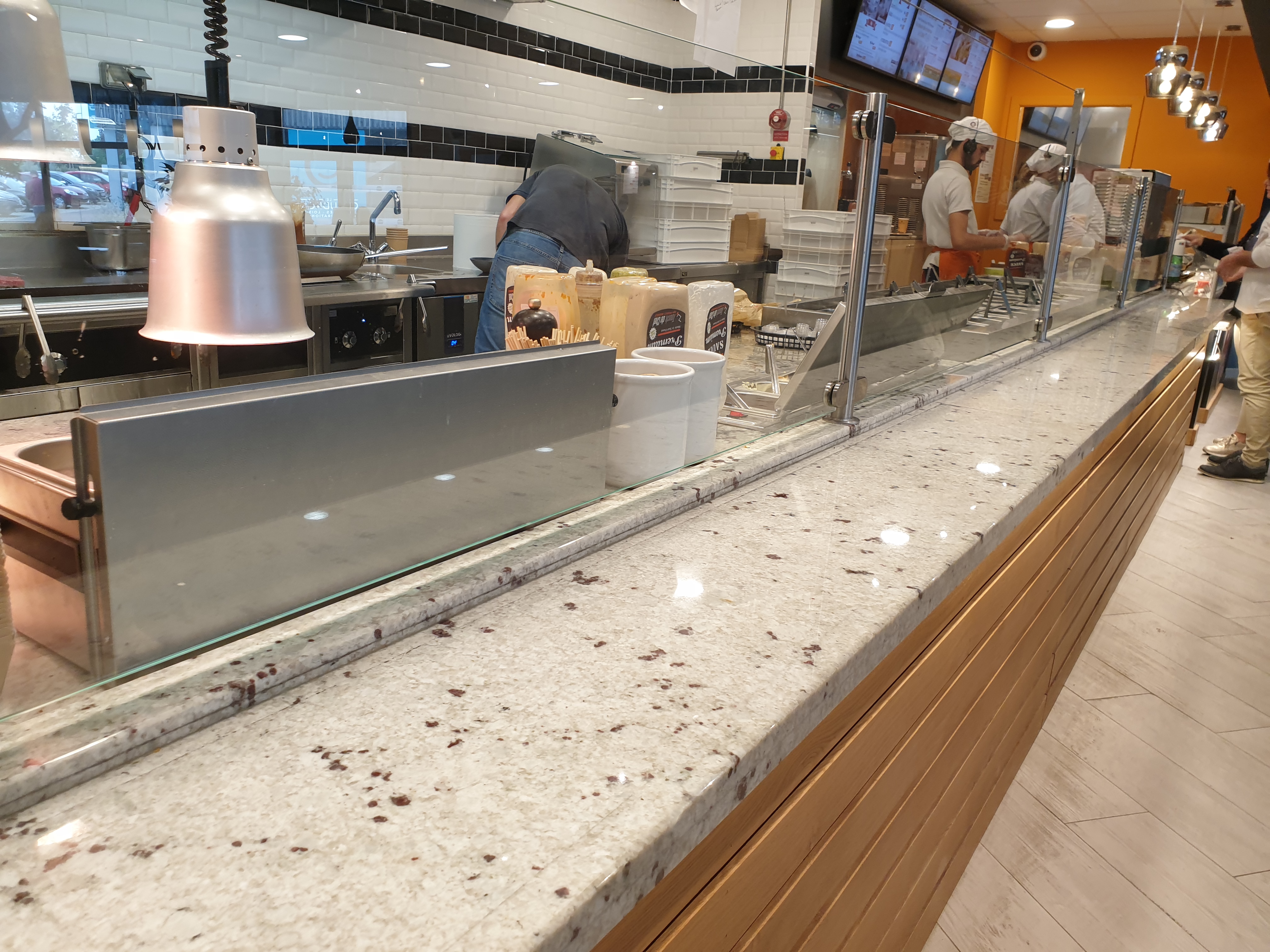 Personnel incompétent ! Ils ne connaissaient absolument pas leur burgers. Pas de saumon, pas de maigret de canard pas de poivrons, en faite tous ce qui peux changer d’un fast food traditionnelle ils en ont plus. L’impression de déranger. On ne reviendra pas.