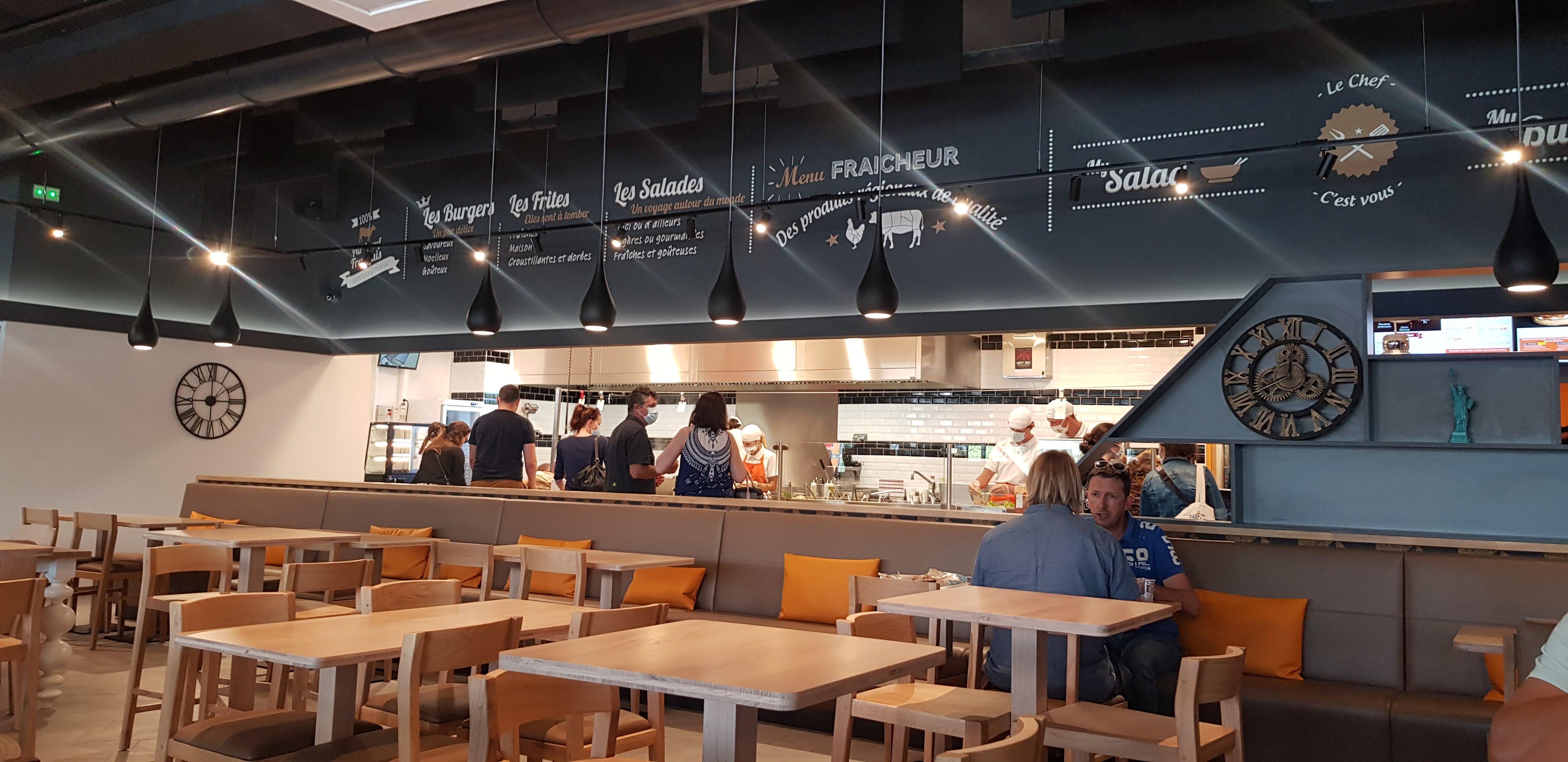 Restaurant très spacieux et très propre. Personnel aimable et souriant. L'hygiène en cuisine est impeccable, charlotte, gants et masques sont portés par tout le personnel chargé de préparer les plats(cela change des fast-food traditionnels) . Service plutôt rapide. Les frites sont vraiment bonnes, et les burger humm, ils savent cuire un steak comme on leur demande ! Je recommande