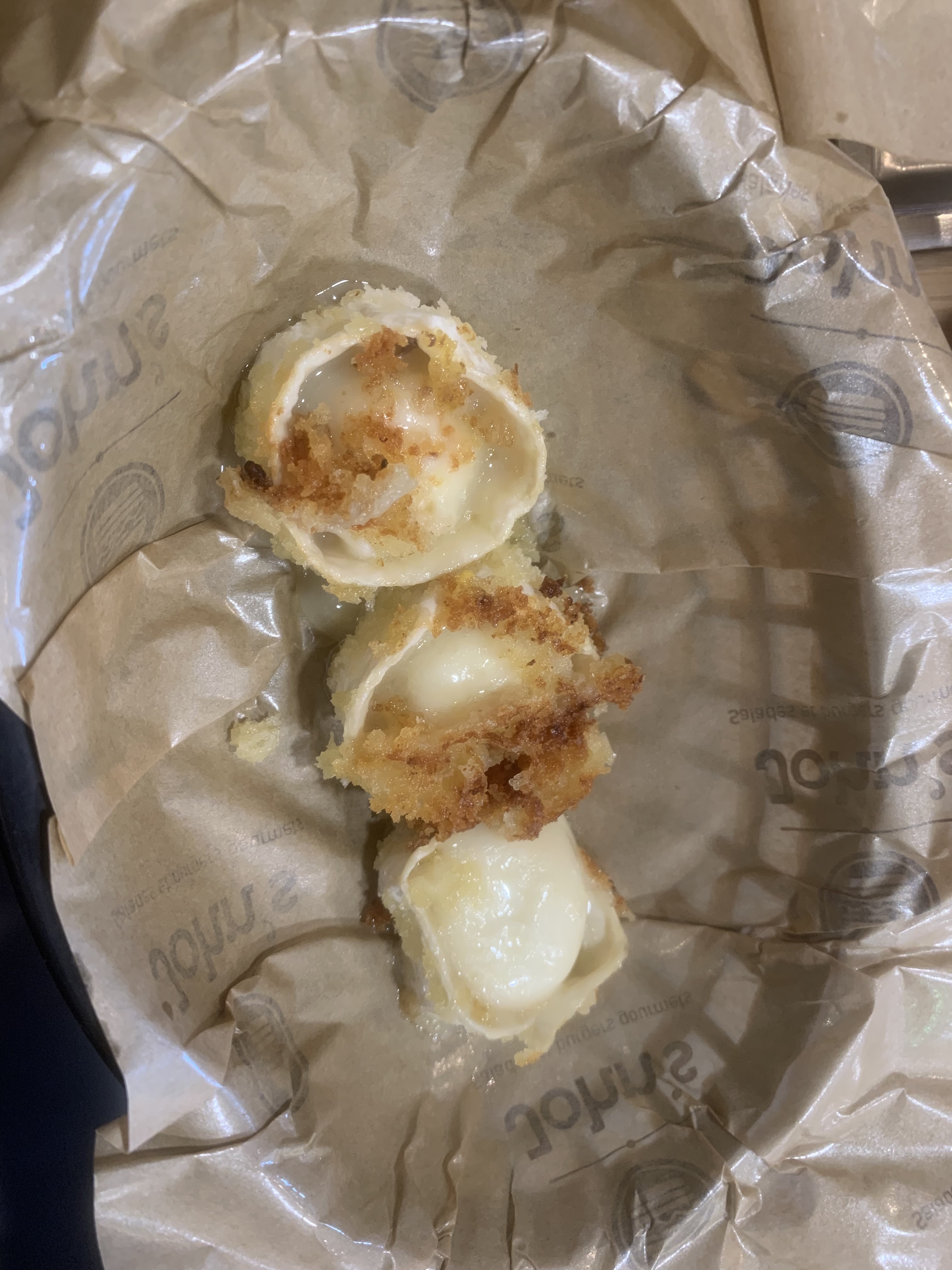 Nous avons mangé ce midi. quelle déception quand on nous apporté les bouchées de chèvres panés. Je l’ai signalé en cuisine et on apporté la réponse suivante ; ils ne sont pas frits dans une friteuse c’est pour ça … Mais là il ne sont même pas panés en faite. Bref. Déçue