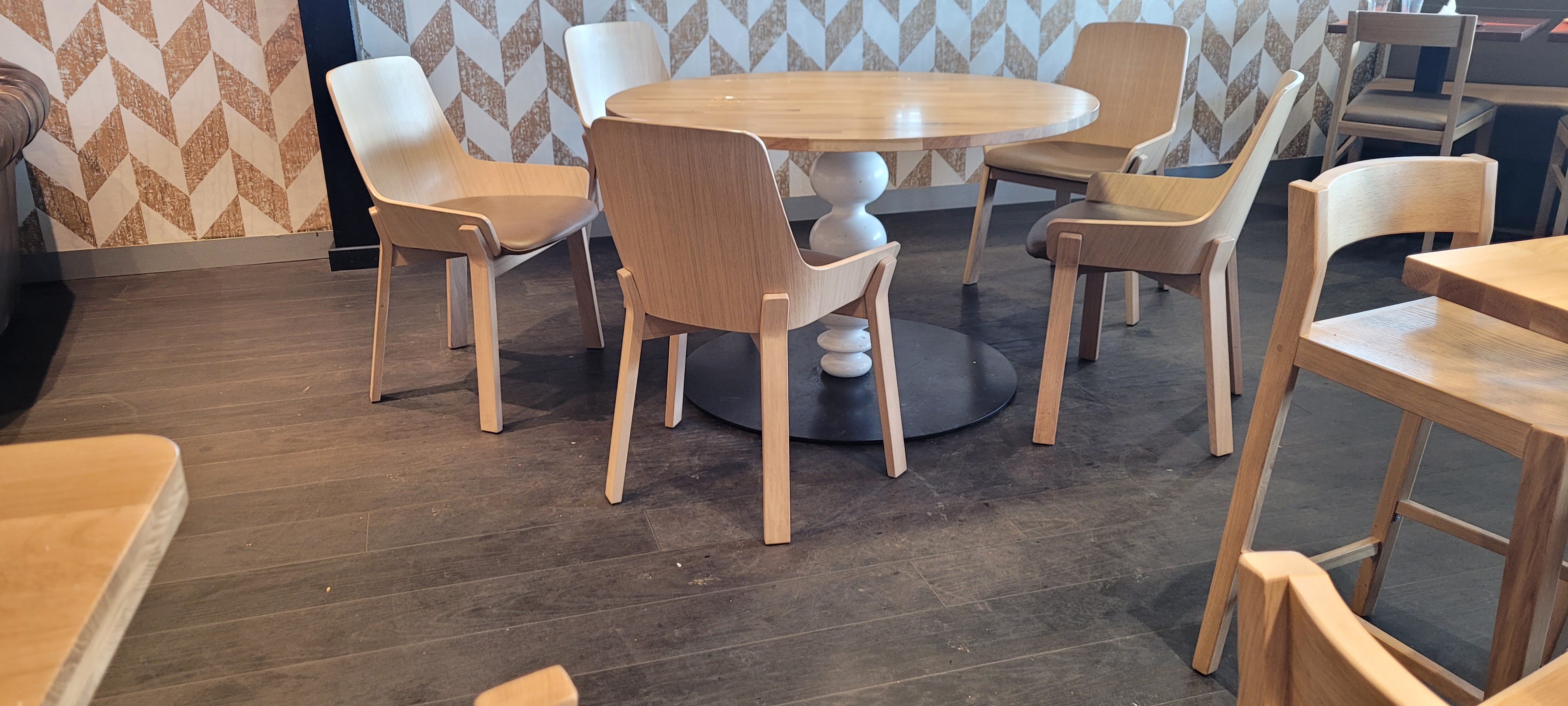 De passage pour un sple café. Service fais par beaucoup de jeune non professionnel mais ce qui m' a choqué c'est le manque de propriété, les miettes entre le canapé sur les tables la poussière sur les étagères toile d'araignée et la saletés des soles. Tellement dommage car le lieu et beau les mets ont l'aire bon mais cela donne pas envie quand ont voie le manque de soins des lieux.