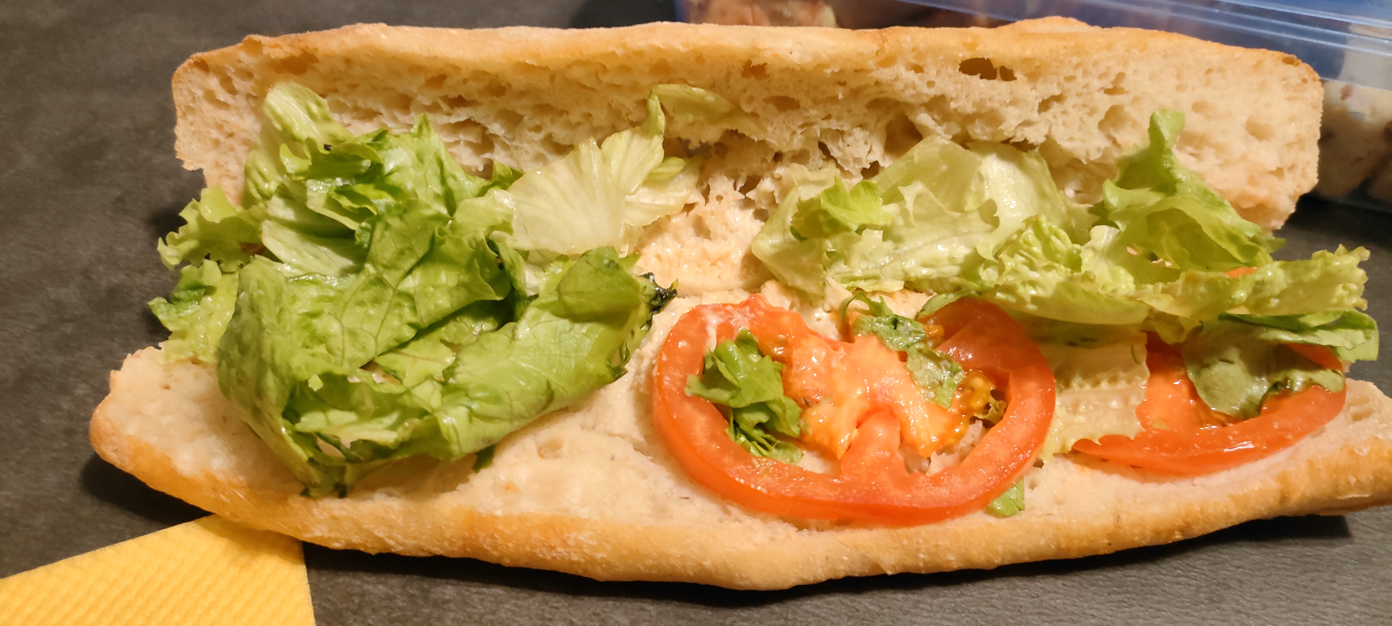 Sandwich acheté au match du besac, je ne vois pas de morceaux de poulet... On en a déjà échangé un qui n'avait qu'un seul bout de poulet, mais là 👏👏👏 rien du tout