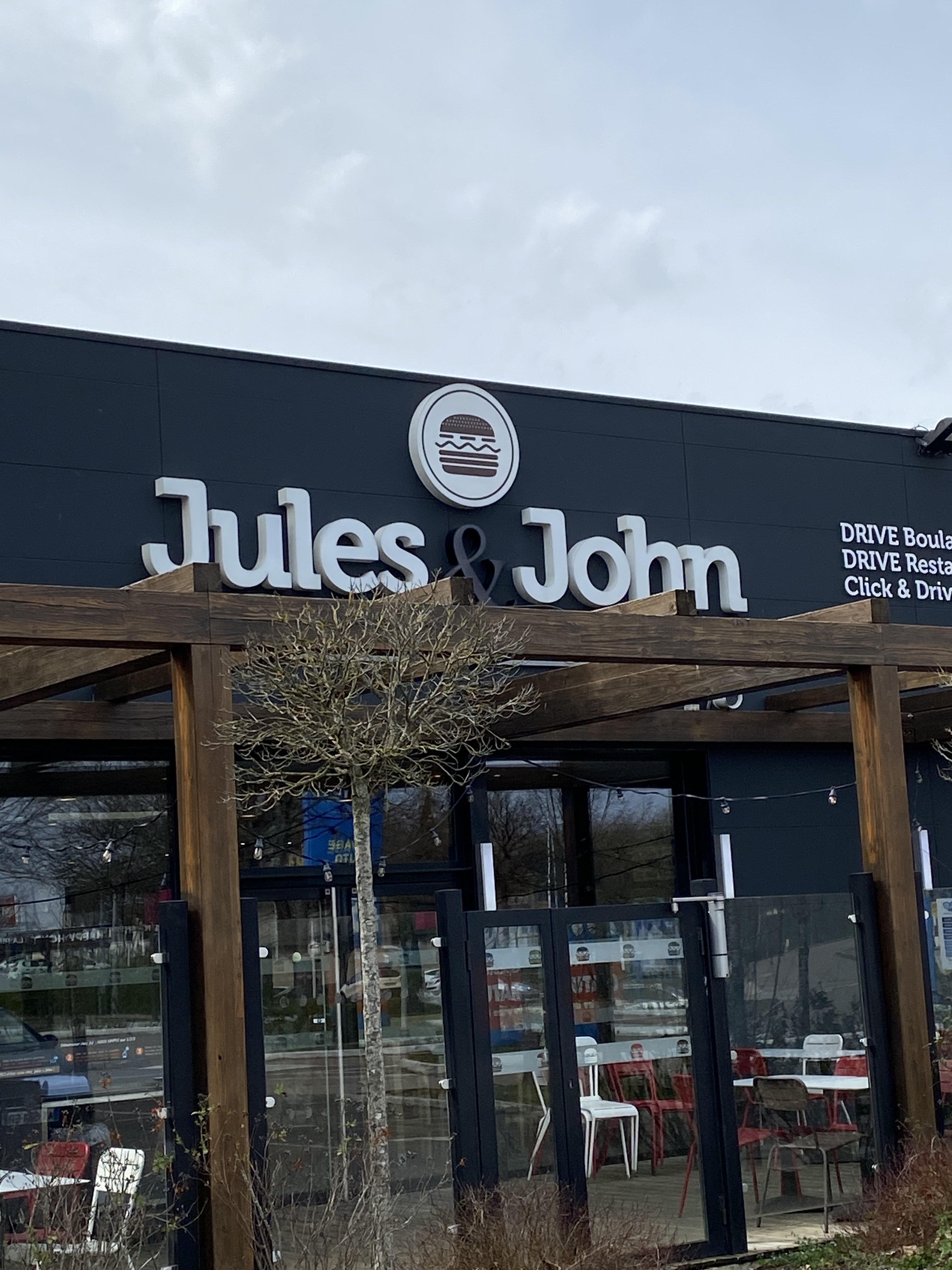 Après deux passages chez Jules & John. Les serveurs sont agréables et souriants. Propreté à revoir !! Pour ce est des sandwichs il faut faire des efforts, club sandwich au poulet juste hyper sec et sans goût, manque quelque peu de la sauce ou d'asaisonnement ! La décoration est toutefois jolie et le restaurant/boulangerie spacieux et agréable.