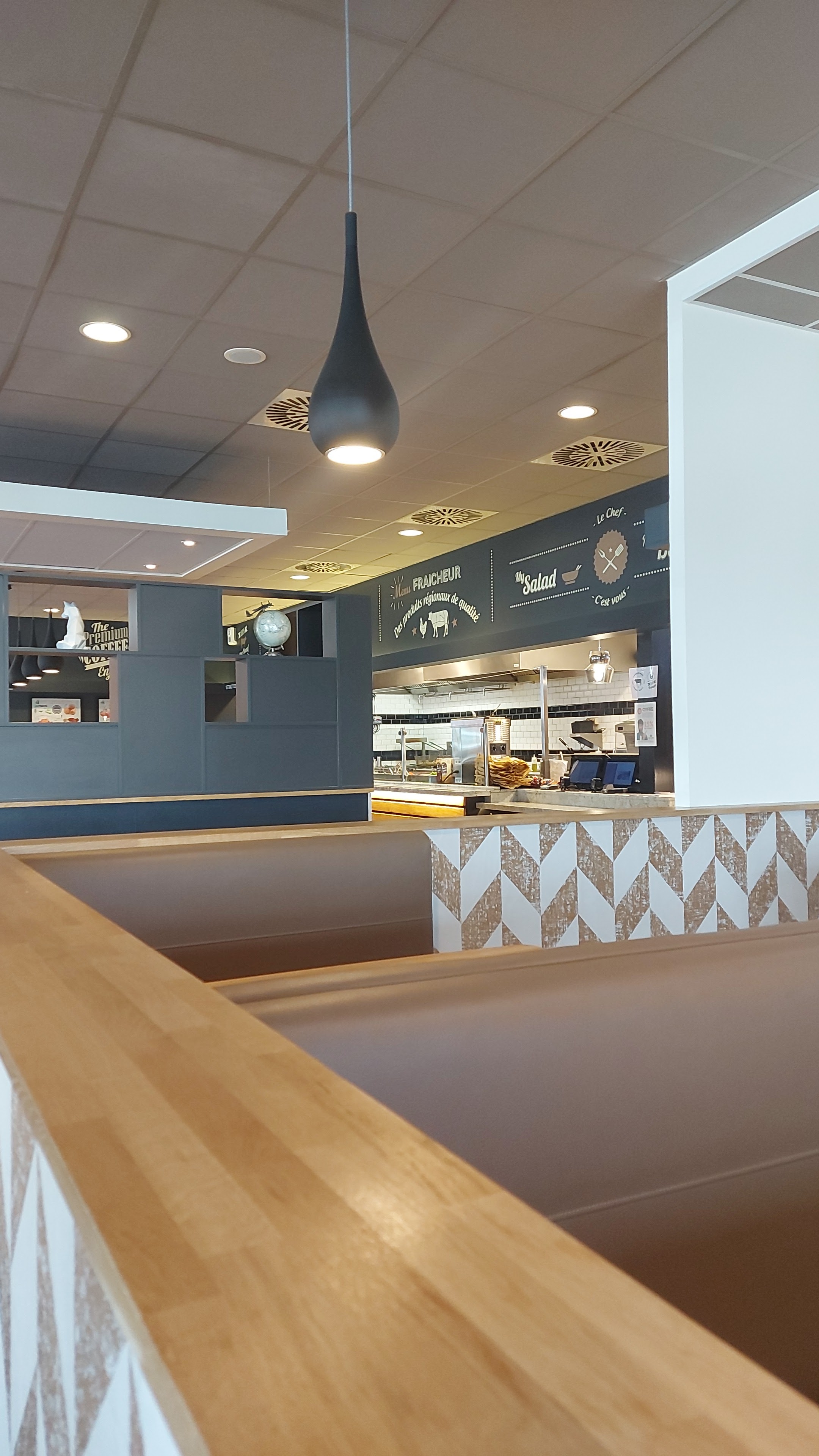Bel endroit, bien accueillant, avec des assises moelleuses (canapé), prise de commande rapide grâce à l'écran tactile. Un vaste choix de recettes, les aliments sont bons et bien cuisinés (le pavé de saumon dans ma salade sur mesure était cuit a la perfection).Le choix pour les enfants est également disponible (de vrai proposition de plat comme le croque monsieur, le hot dog, ou le burger (de taille normale). Un vaste choix également en matière de dessert pour les adultes (pâtisseries, panna cotta , tiramisu et même fromage blanc ou salade de fruit (pour ceux qui surveille leur ligne ). On ne sort pas du restaurant avec la faim aux ventre ou trop mal genre j'ai trop mangé) comme pour le Quick et burger king. Je recommande vivement