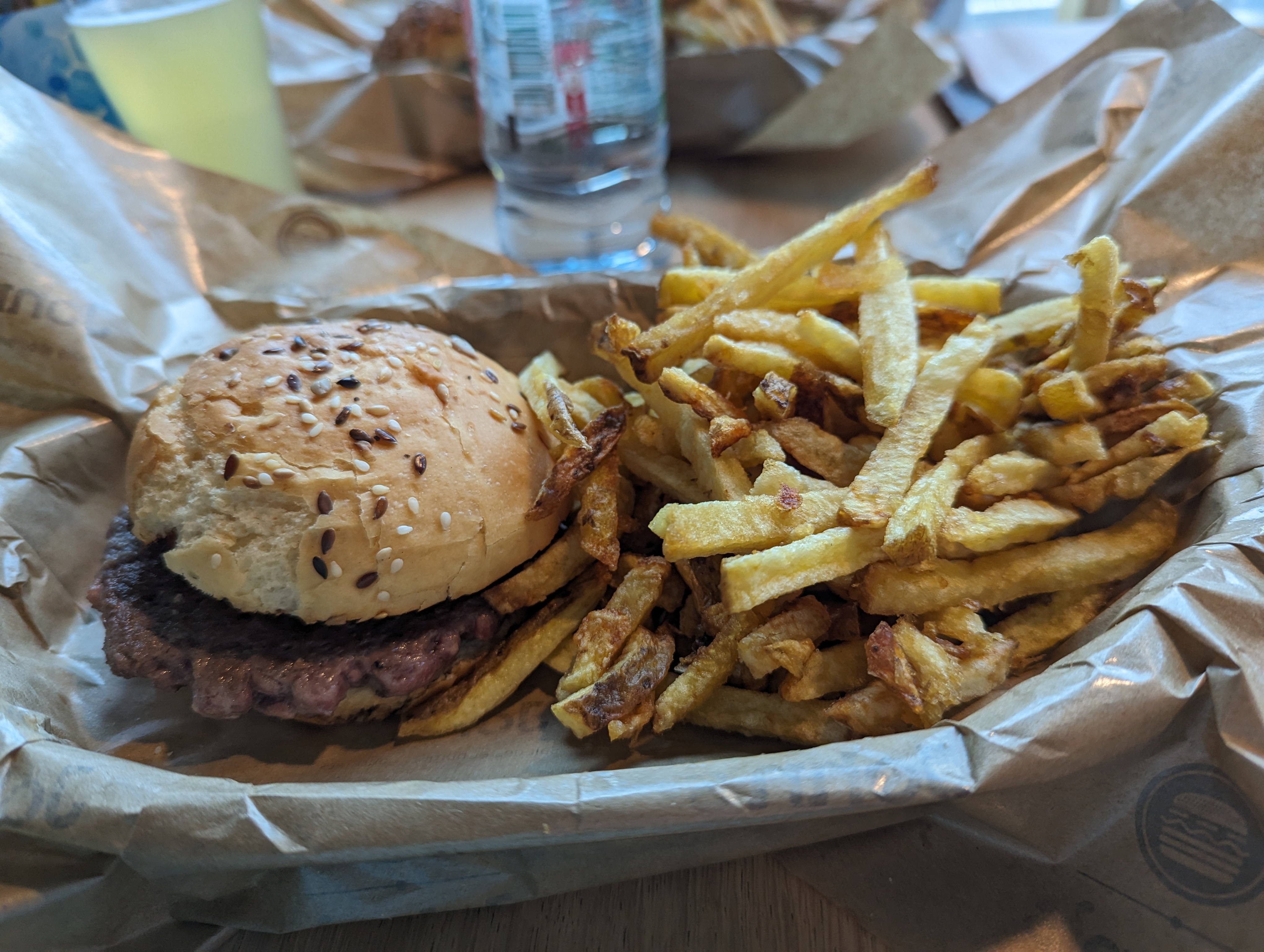 Le burger aux falafels était excellent ! Les frites aussi 😍 Hâte d y retourner ! Service rapide. Citronnade rafraîchissante. Rien à dire.