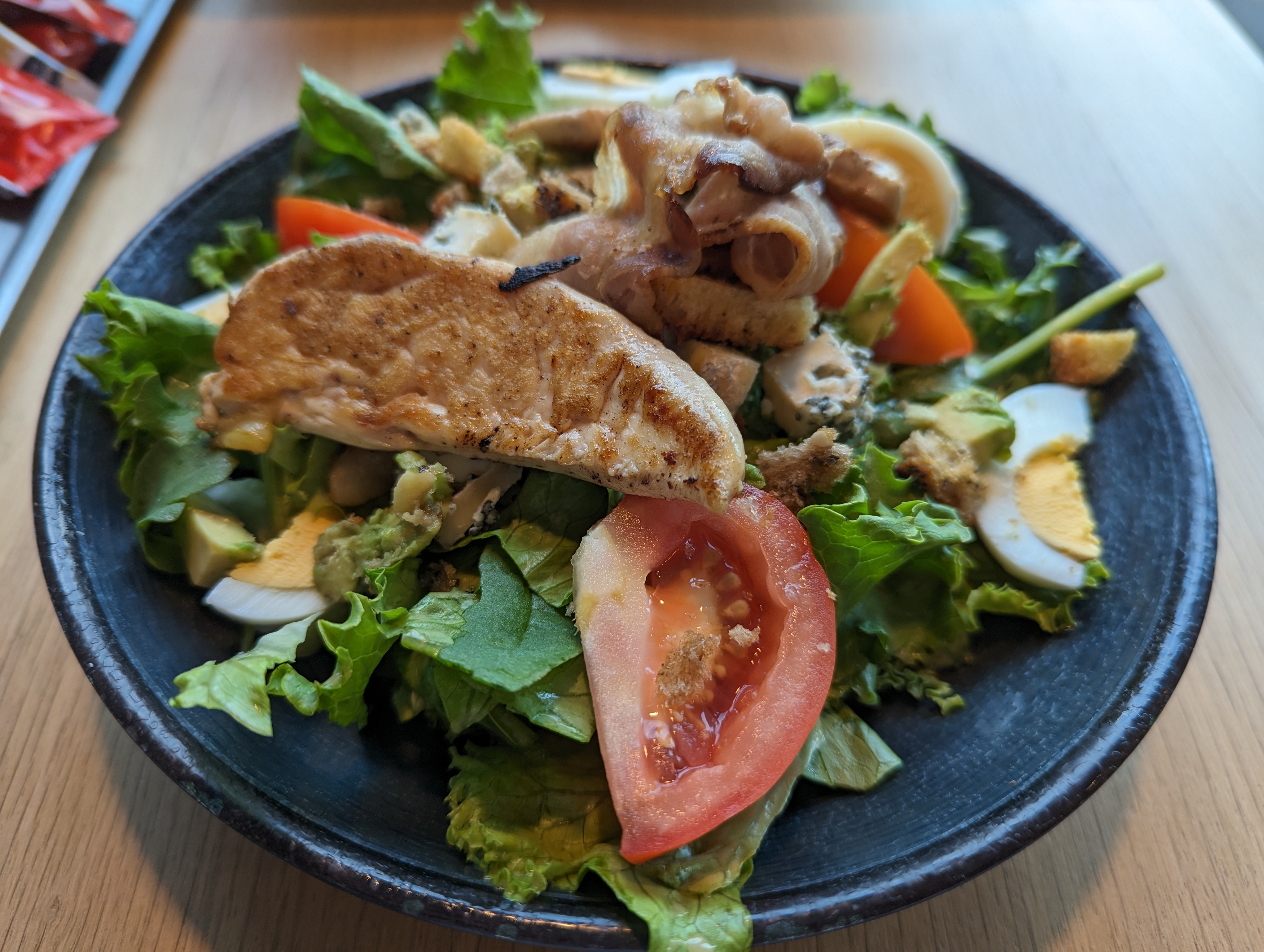De passage sur Clermont-Ferrand, j’étais déjà connaisseuse de l’enseigne que je fréquente et apprécie sur Pau. Cette visite fut vraiment décevante… bornes pour commander en panne ( les 4 bornes sinon c’est pas drôle). Nous nous sommes rabattues sur l’espace boulangerie pour ne pas trop attendre… salade César : fade, pas généreuse, poulet sec… Couverts pour manger sales… Bornes pour payer par carte en panne… bref rien qui donne envie de revenir ou de mettre une meilleure notation. Cookies en dessert : j’ai connu mieux…