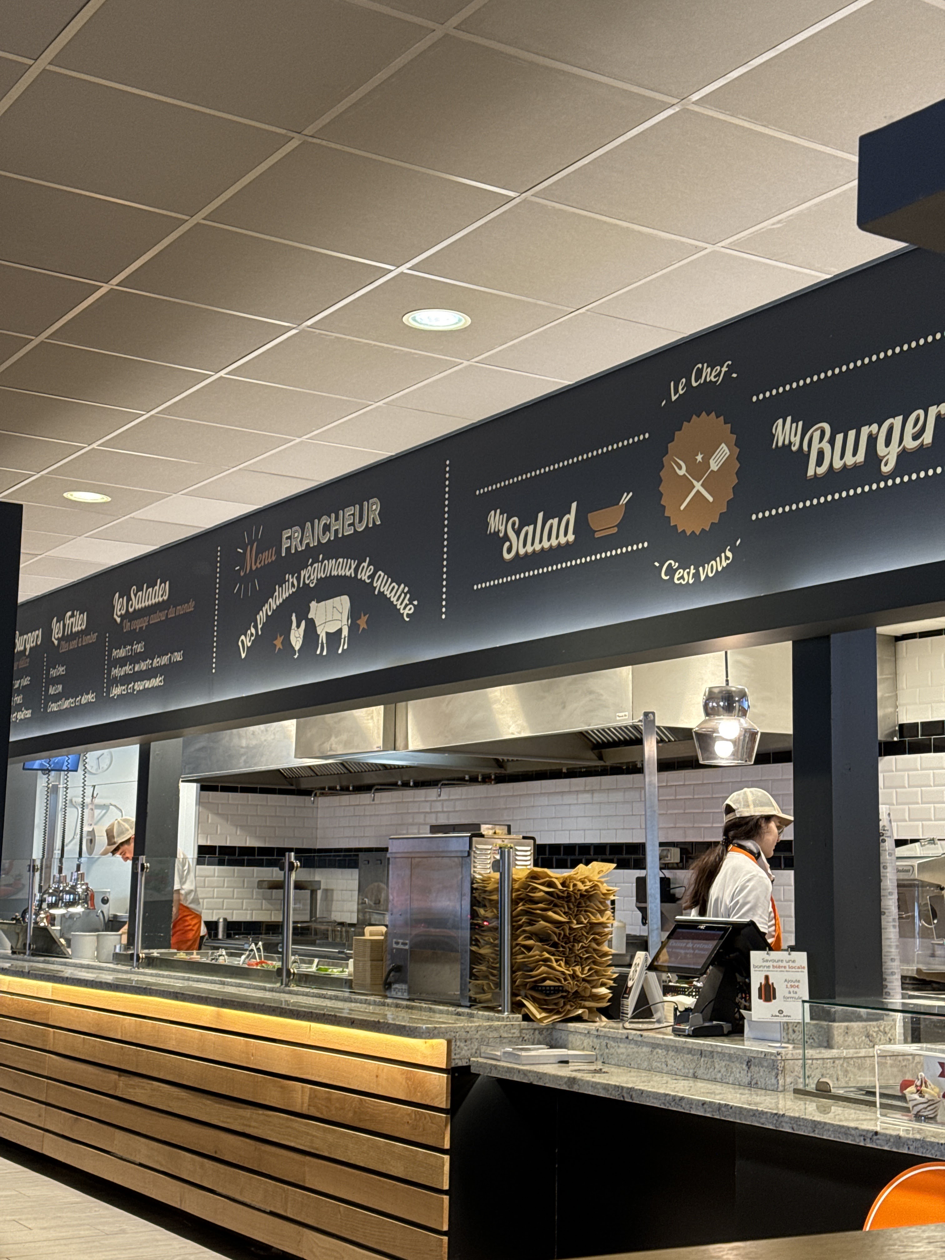 Ce resto Burgers/salades... a remplacé A la bonne heure. On n'est plus du tout dans le même concept... Les produits sont de bonne qualité et on mange avec de vrais couverts. Très bien pour un repas rapide. Un petit problème avec les bornes de commande mais on peut commander directement en caisse et c'est finalement plus agréable...