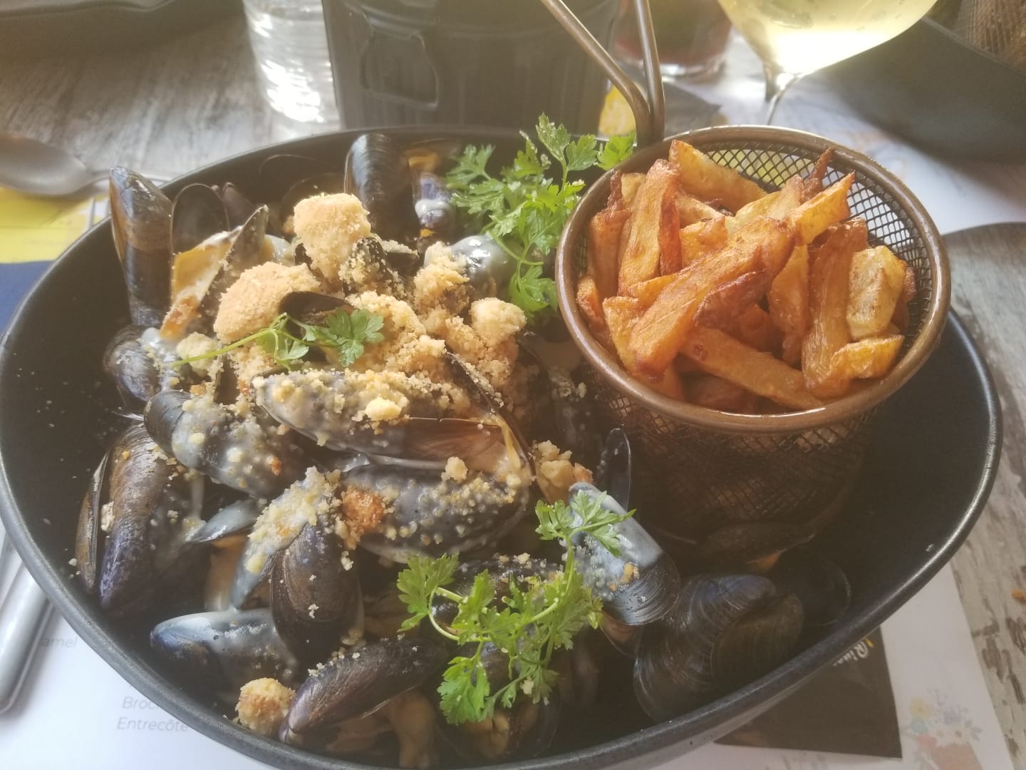 Cuisine correcte mais en dessous de mes attentes au vue du nombre d avis positifs Moules froides , que nous avons dues renvoyer, et le Steak du burger brûlé sur certaines parties, frites trop molles. Un peu moins de 100€ pour trois plats de moule , une daurade et un burger .