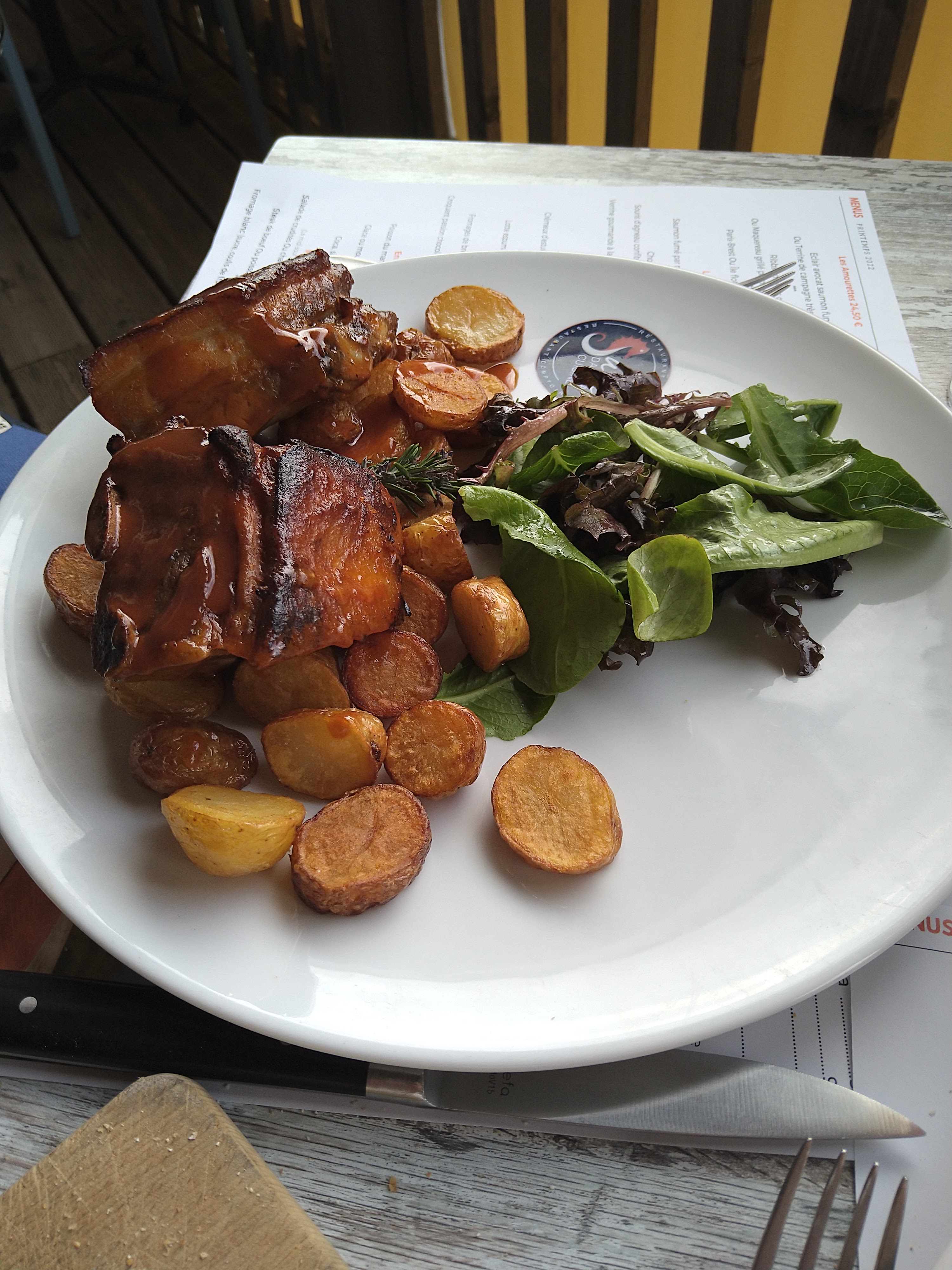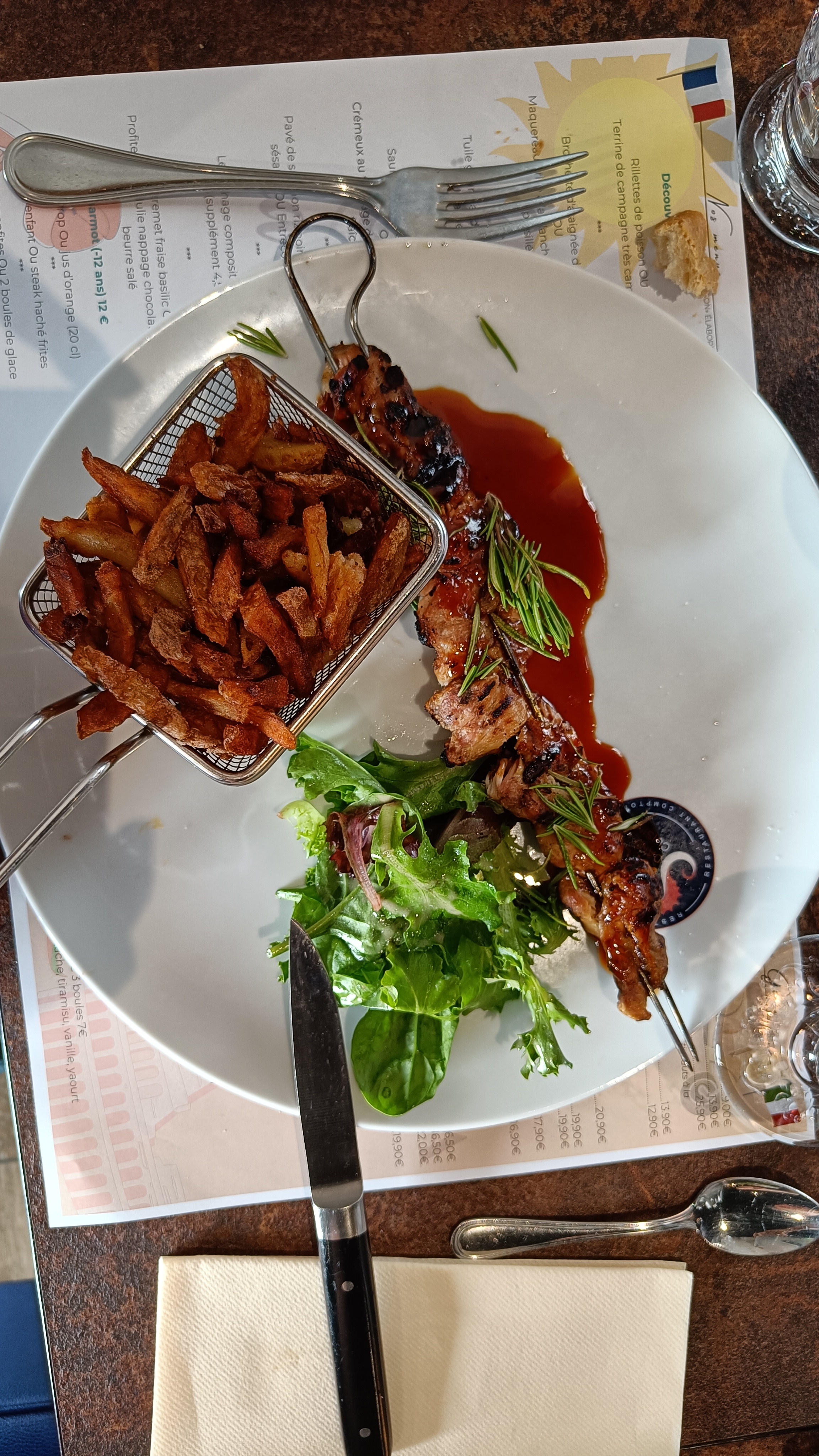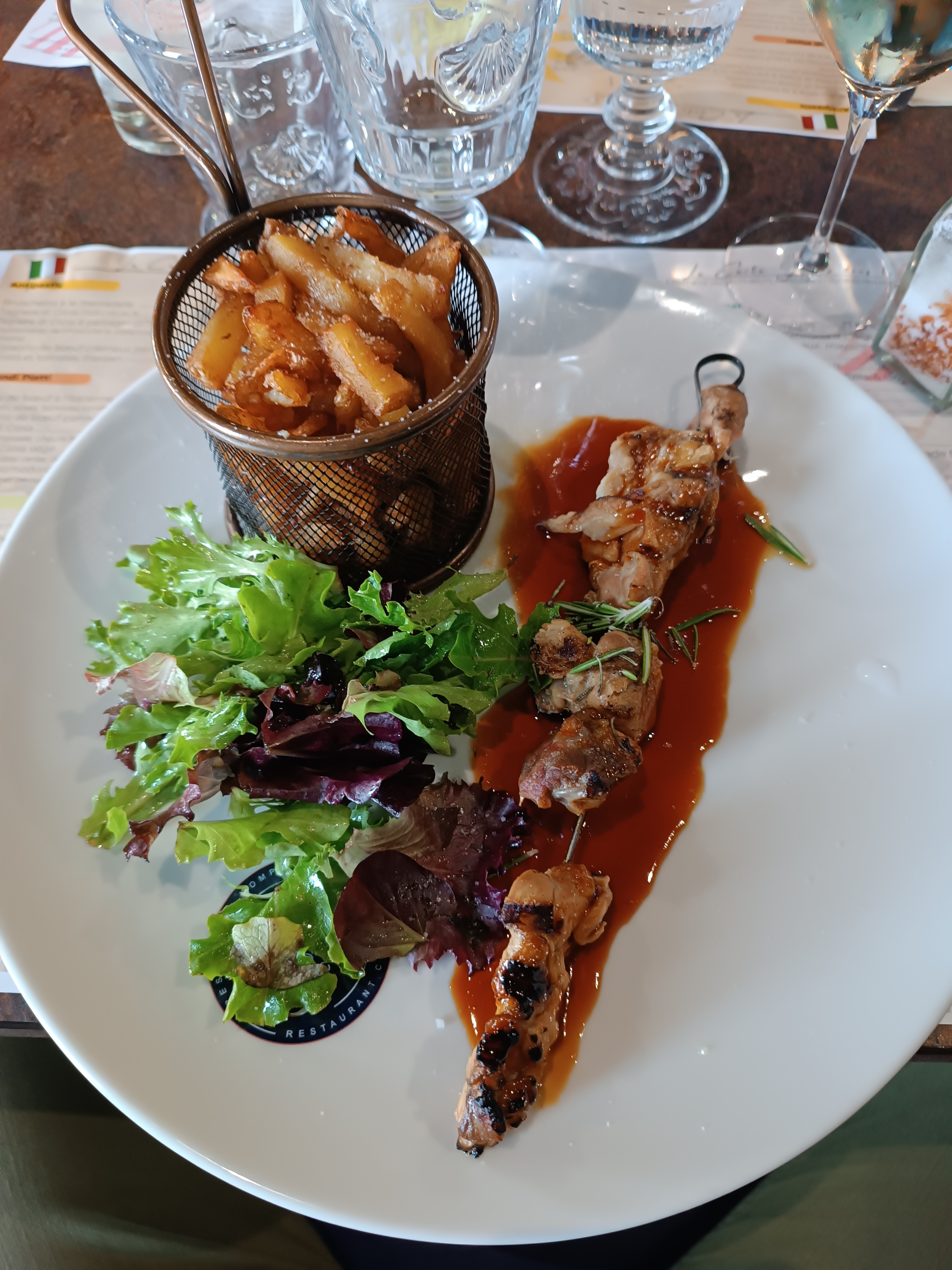 Excellent repas, presque trop copieux ! Serveurs très rapides, efficaces et sympathiques ! Grand parking stationnement (pour notre camping car)!