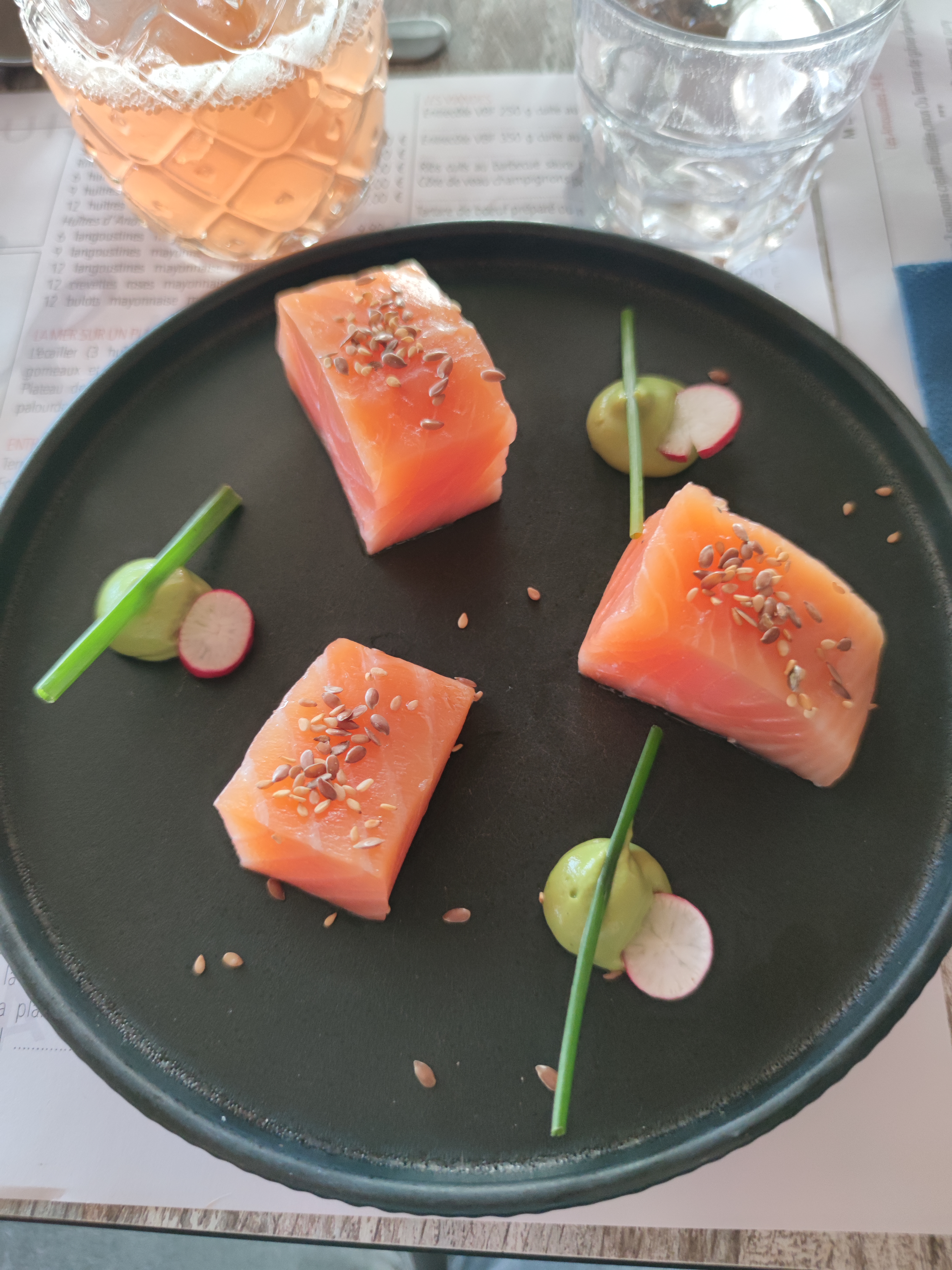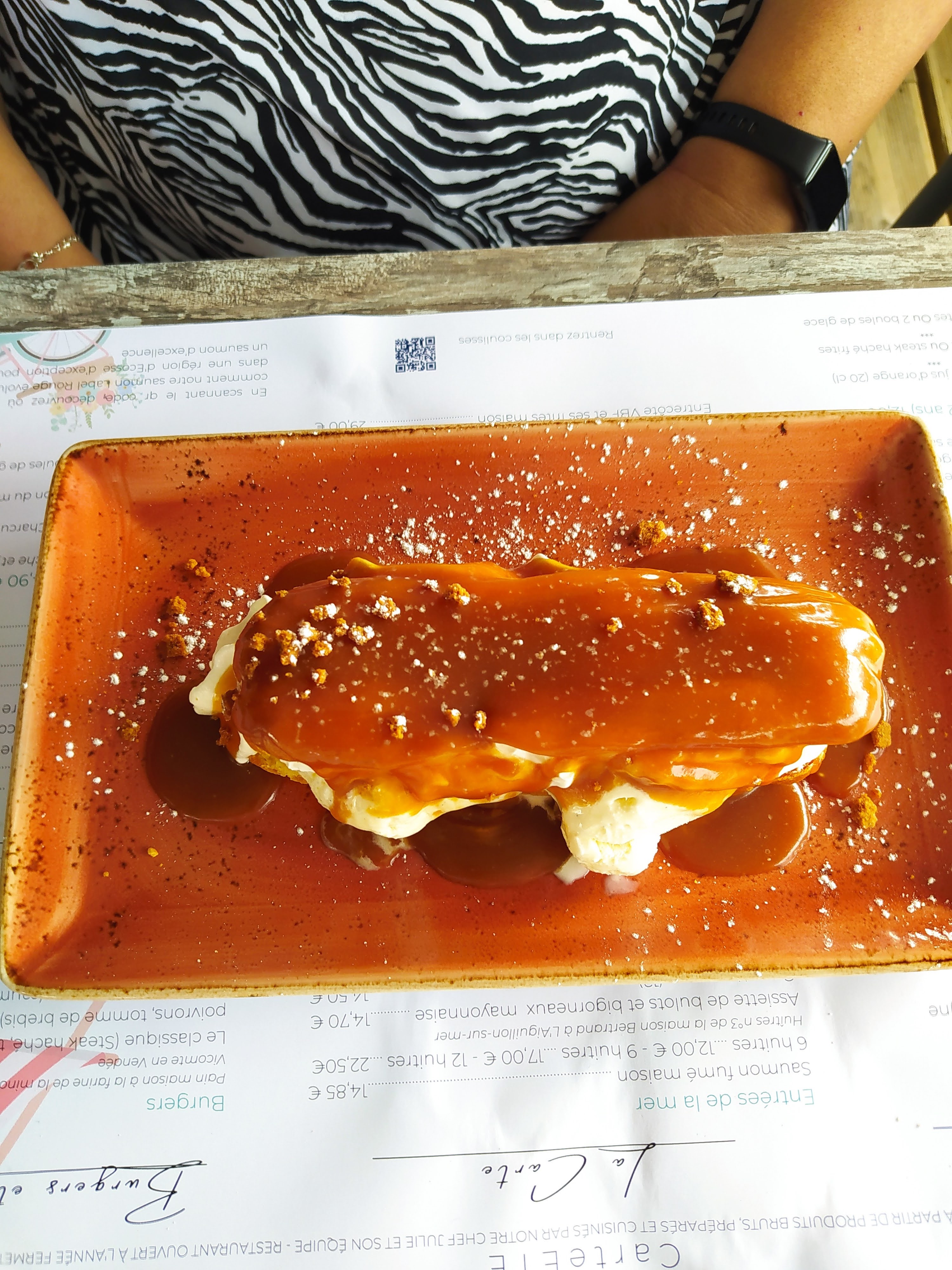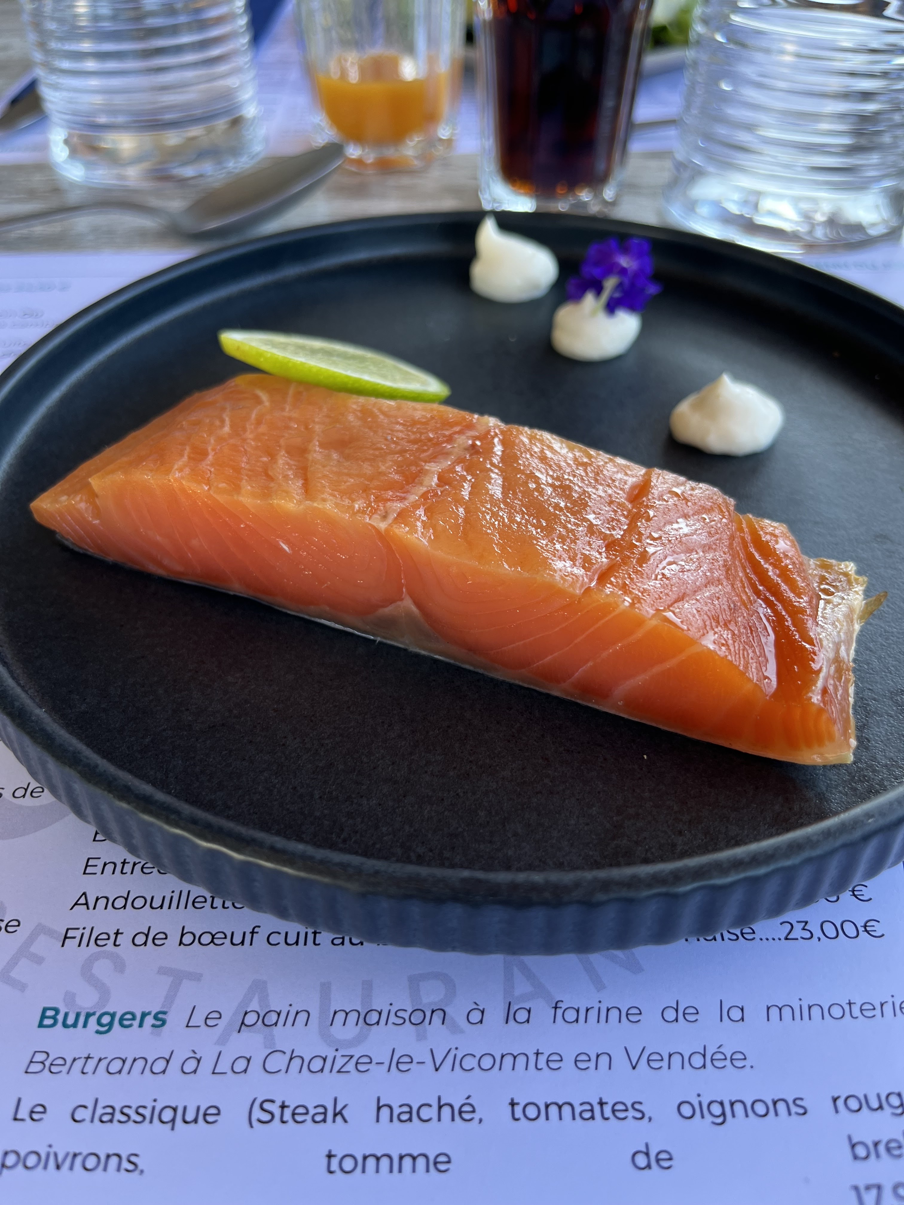 Fin de séjour en Vendée. Jean louis propriétaire sympathique de rbnb nous conseille cette adresse en nous affirmant que la carte est excellente. Donc mon neveux mon fils et moi même arrivons sur place . L'accueil est plus qu'agreable et le cadre est superbe et apaisant . La commande étant passée on peu admirer la plage . A l'arrivée de notre entrée je suis mis en appétit . La présentation simple et efficace de mon saumon à la marinade me mets en appétit. Le plat est tout aussi appétissant, frite cuite à la graisse de bœuf et entrecôte de bœuf. Le tout fût un régal. Les profiteroles furent excellent . Je recommande cette table très chaudement