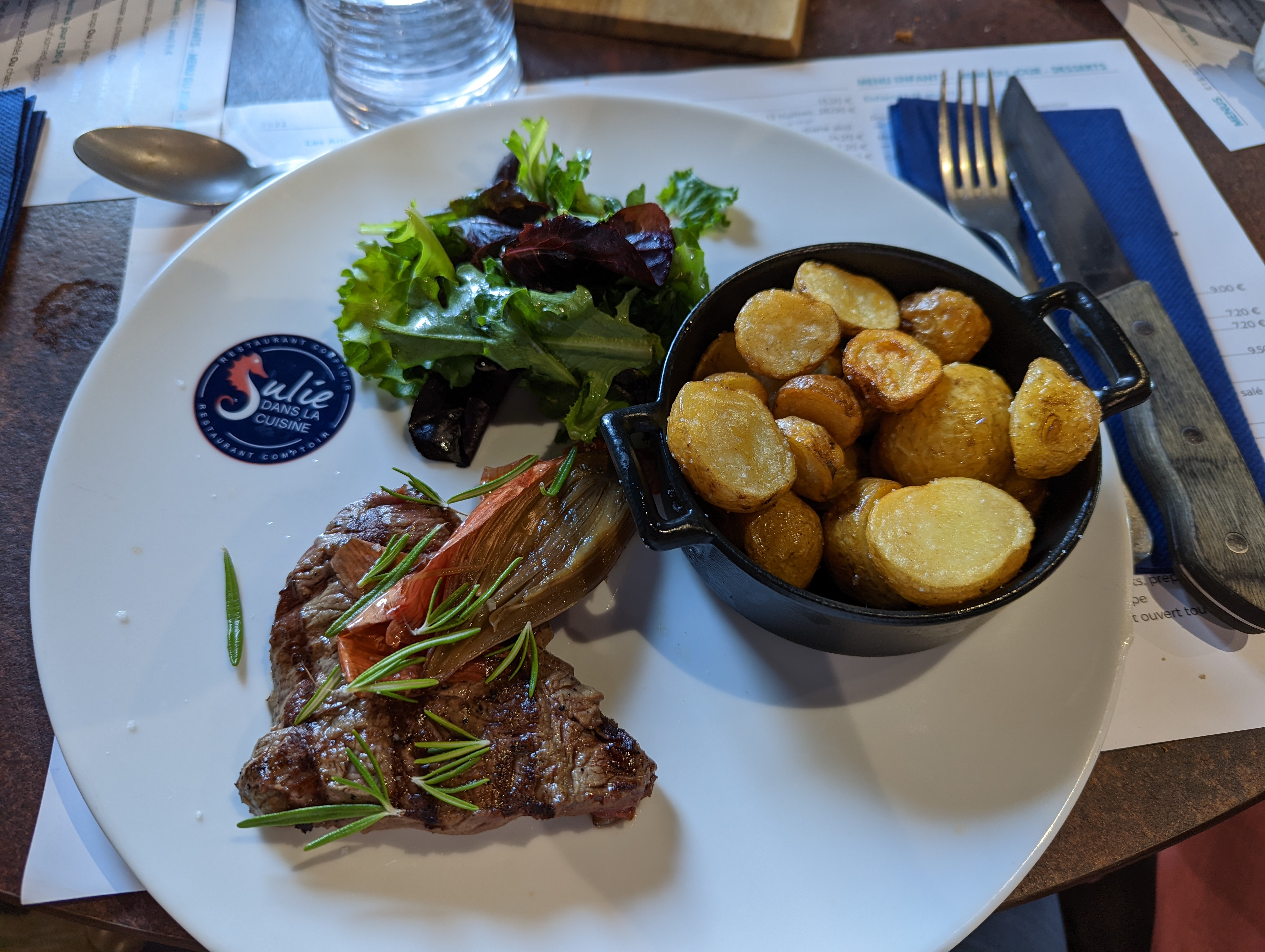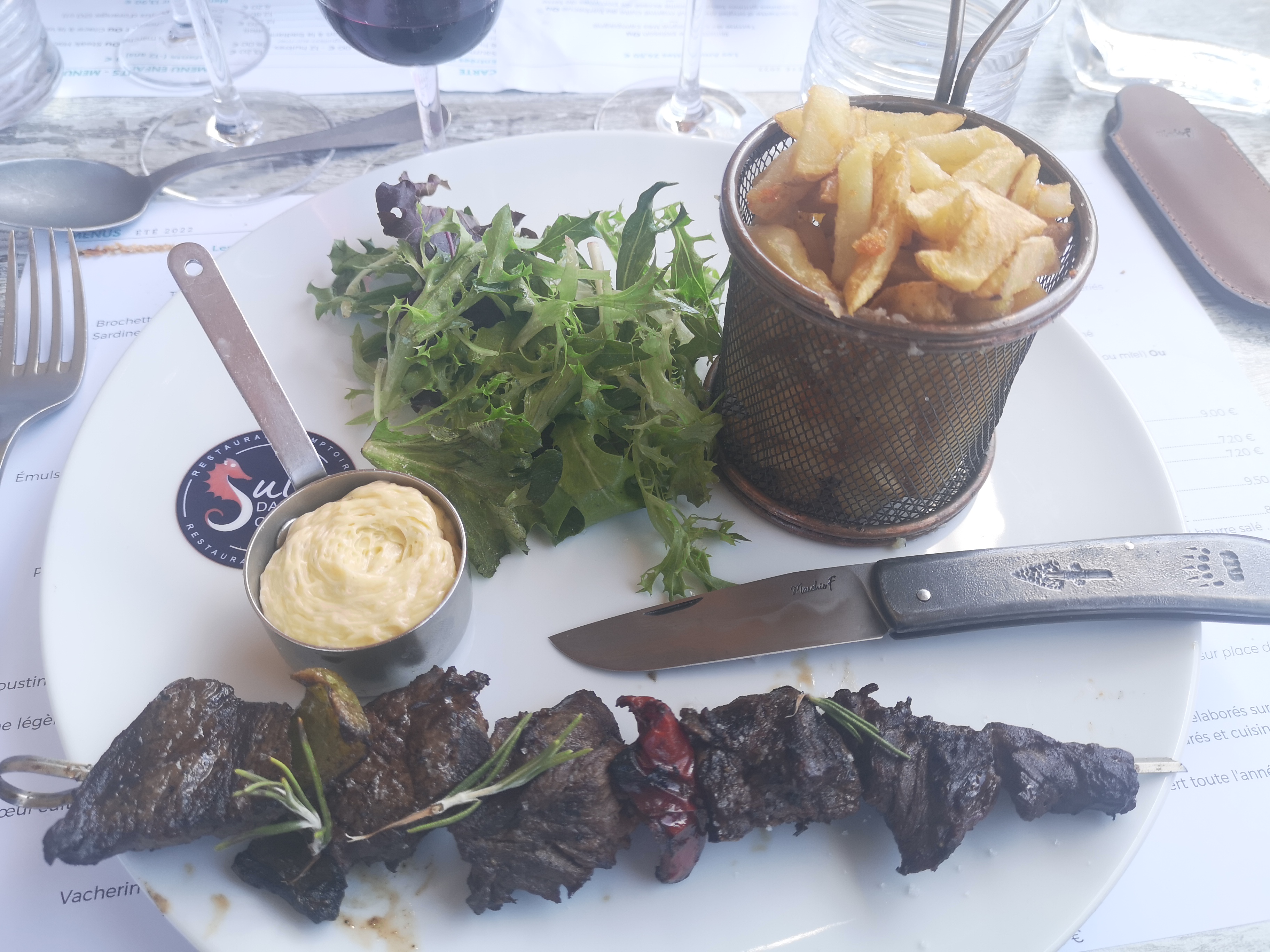 Viande rouge un peu trop nerveuse ... Autrement comme toujours un vrai régal et un rapport qualité prix correct ! Une vue toujours aussi magnifique en mangeant sur la terrasse. Je recommande ! Sans oublié un serveur pleins d'humour, au top !