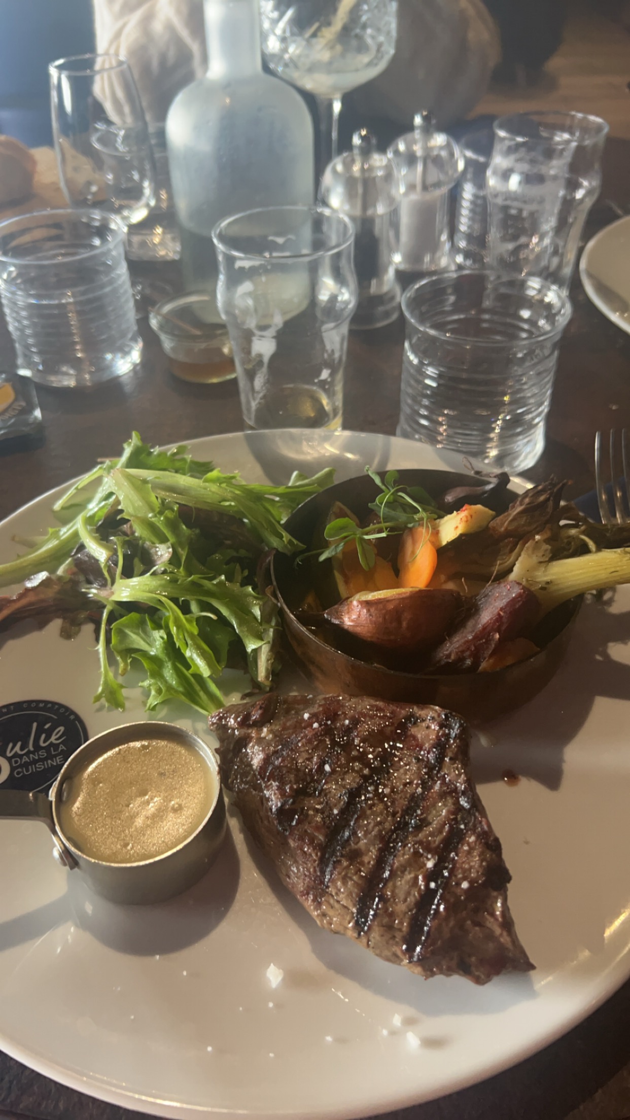 Expérience incroyable. S’agissant d’une première visite, j’ai été extrêmement séduit à la fois par l’assiette, en l’occurrence une entrecôte totalement maîtrisée (j’y reviens plus tard), et par le cadre à la fois simple et agréable. J’ai opté pour un menu entrée / plat / dessert à un prix tout à fait raisonnable compte tenu de la prestation proposée. L’ensemble des étapes du menu étaient maîtrisées, la terrine de gibier fût mon coup de cœur de la journée ! Les quelques oublis et approximations au moment de la commande sont des détails qui ne gâchent absolument pas la vue l’ensemble. A refaire !