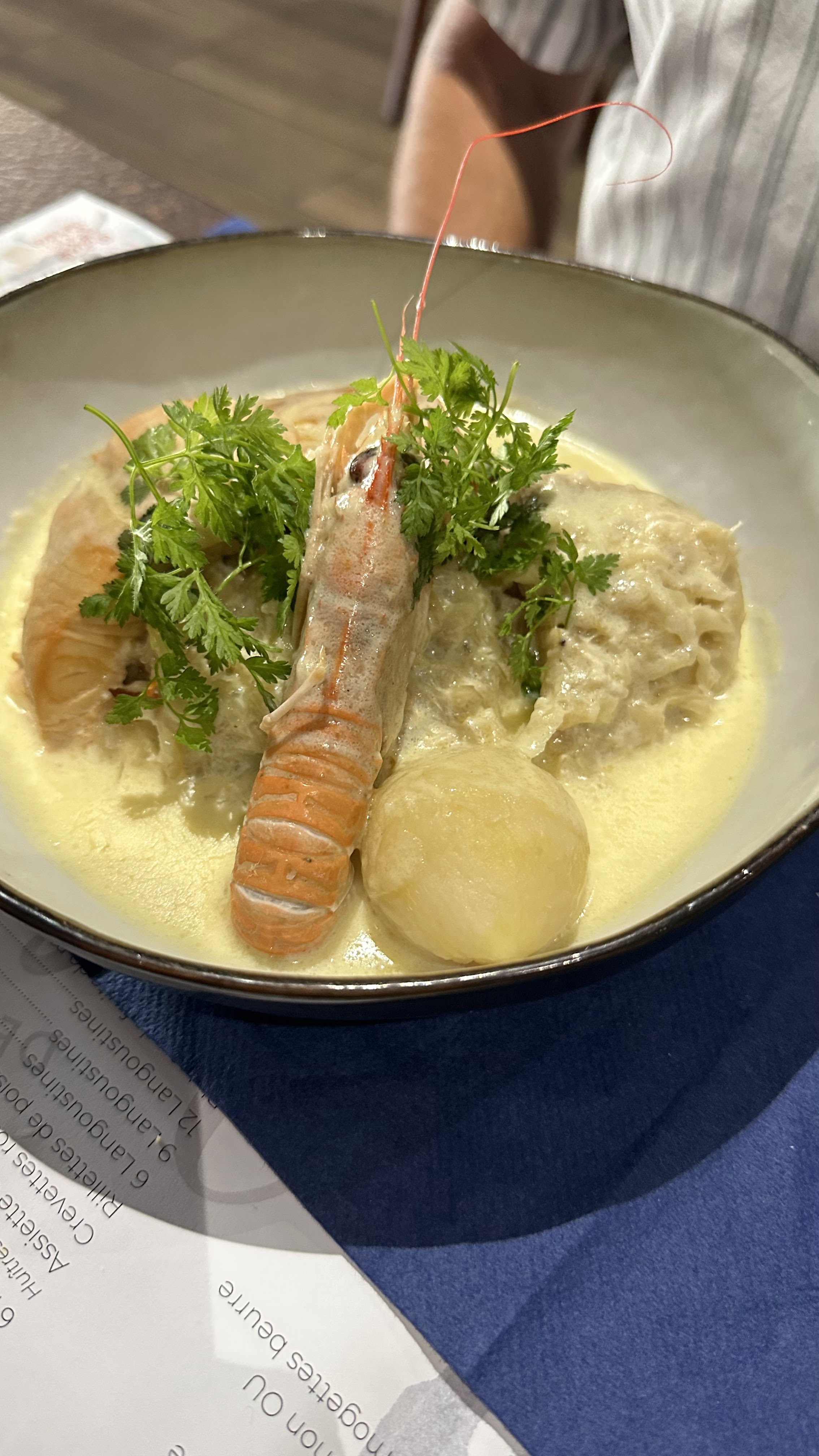 Nous avons passé un très bon moment durant le repas. Le restaurant est très grand mais les serveurs sont bien organisé. Le saumon fumé était divin, la dorade bien fraîche mais c'est à nous d'enlever les arrêtés ce qui m'a gâcher le plaisir par peur d'en avaler. Les profiteroles étaient bonnes sans être exceptionnel En conclusion, nous avons tout de même passé un agréable repas, nous y avons très bien mangé