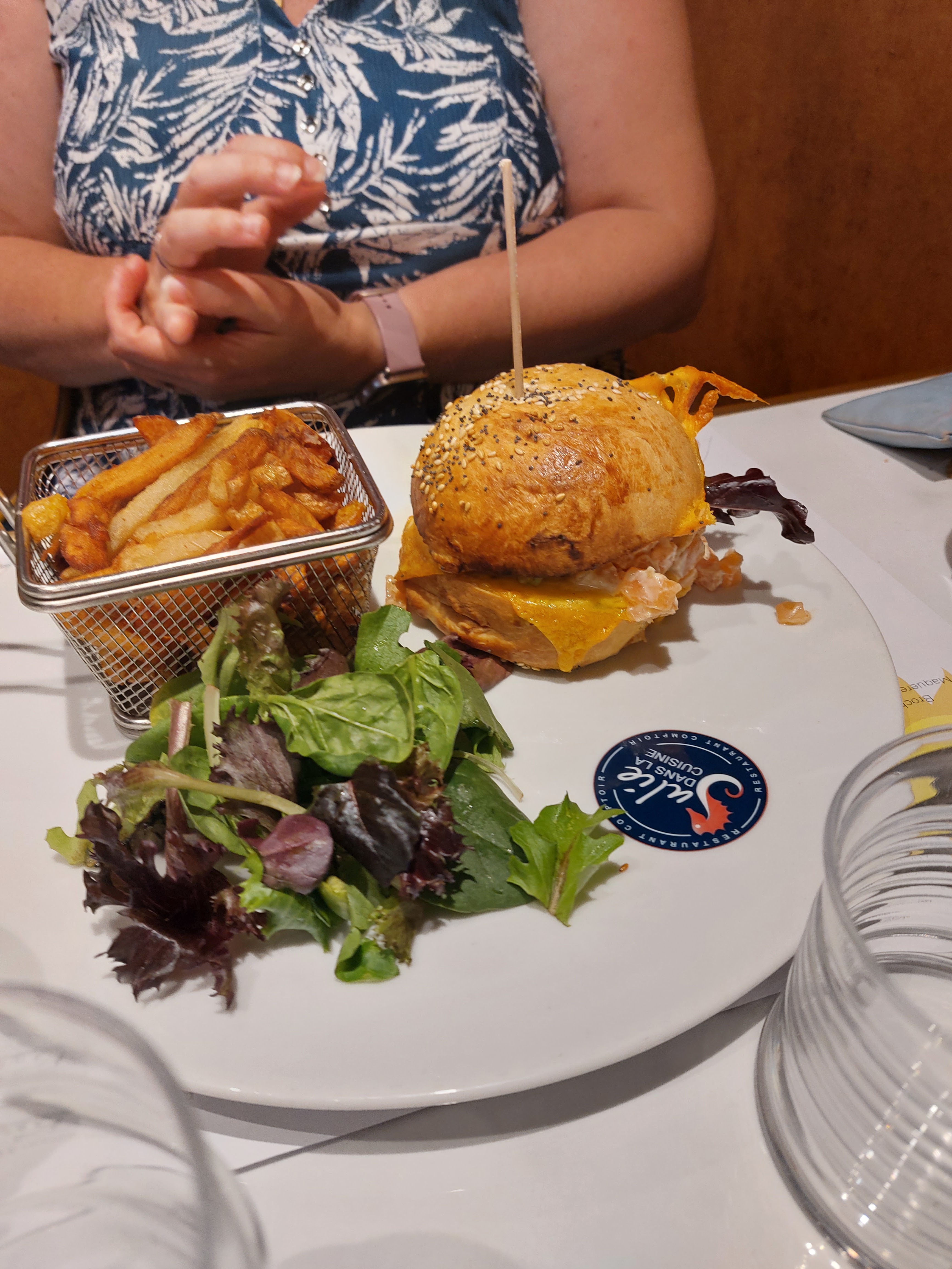 Repas à la carte plats agréables dans leur ensemble. Peut-être un manque de saveurs pour le saumon et le hamburger. Profiteroles goûteuses. La version light du Forêt Noire surprend un peu au moment de le découvrir. Il est bon tout de même.