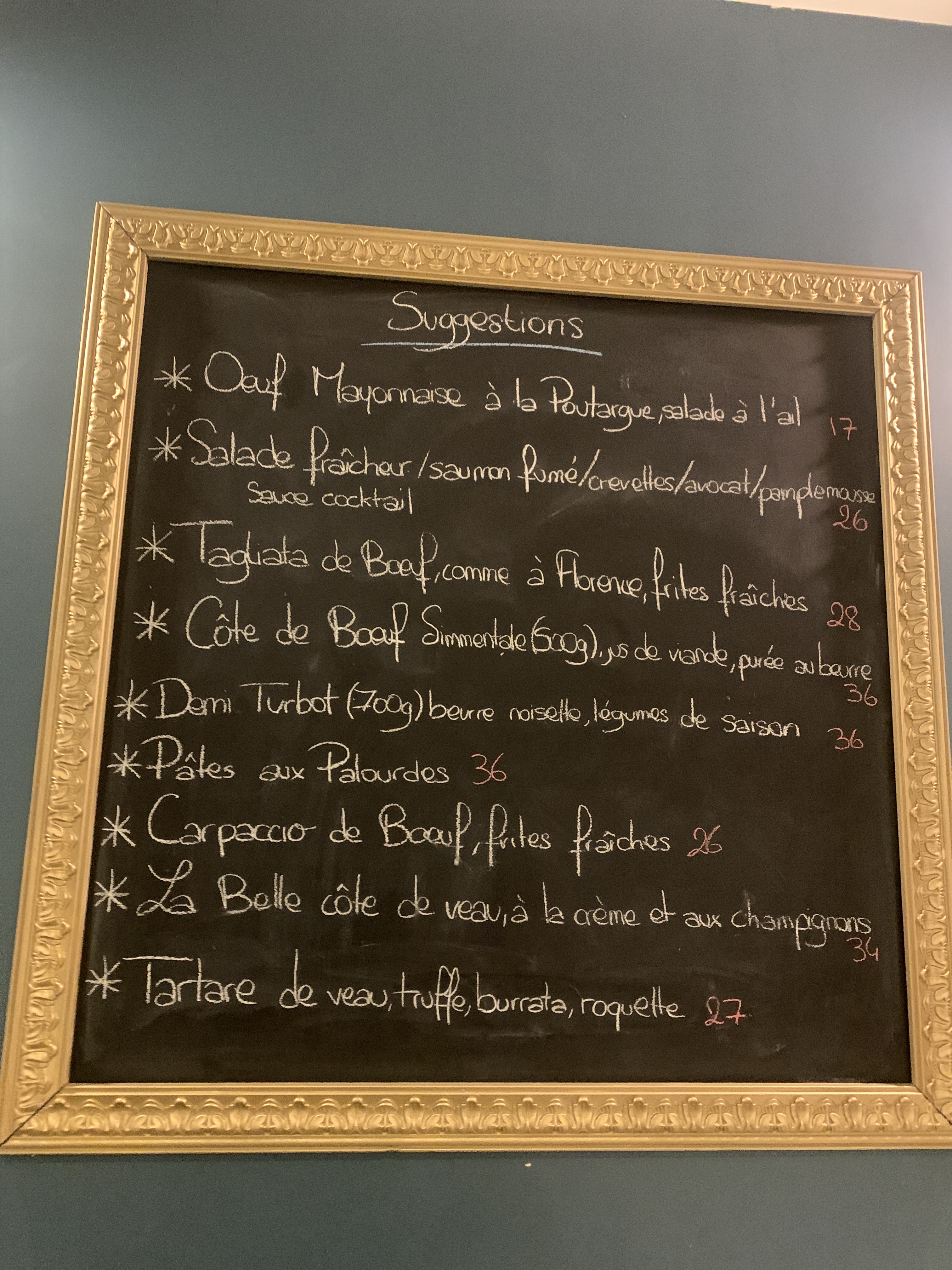 Petit resto sympa bon accueil J'ai vu des commentaires sur les tarifs des bouteilles de vins oui les prix piquent un peu toute la carte pique un peu . Après sans doute une sélection de bons vins..l' entrecôte excellente plus pour les gourmets que les gourmands. les soupions très bon .Un point noire les frites . Mériterait un petit stage chez nos amis du Nord de la France dommage . Addition pour 4 entre 200 et 250€