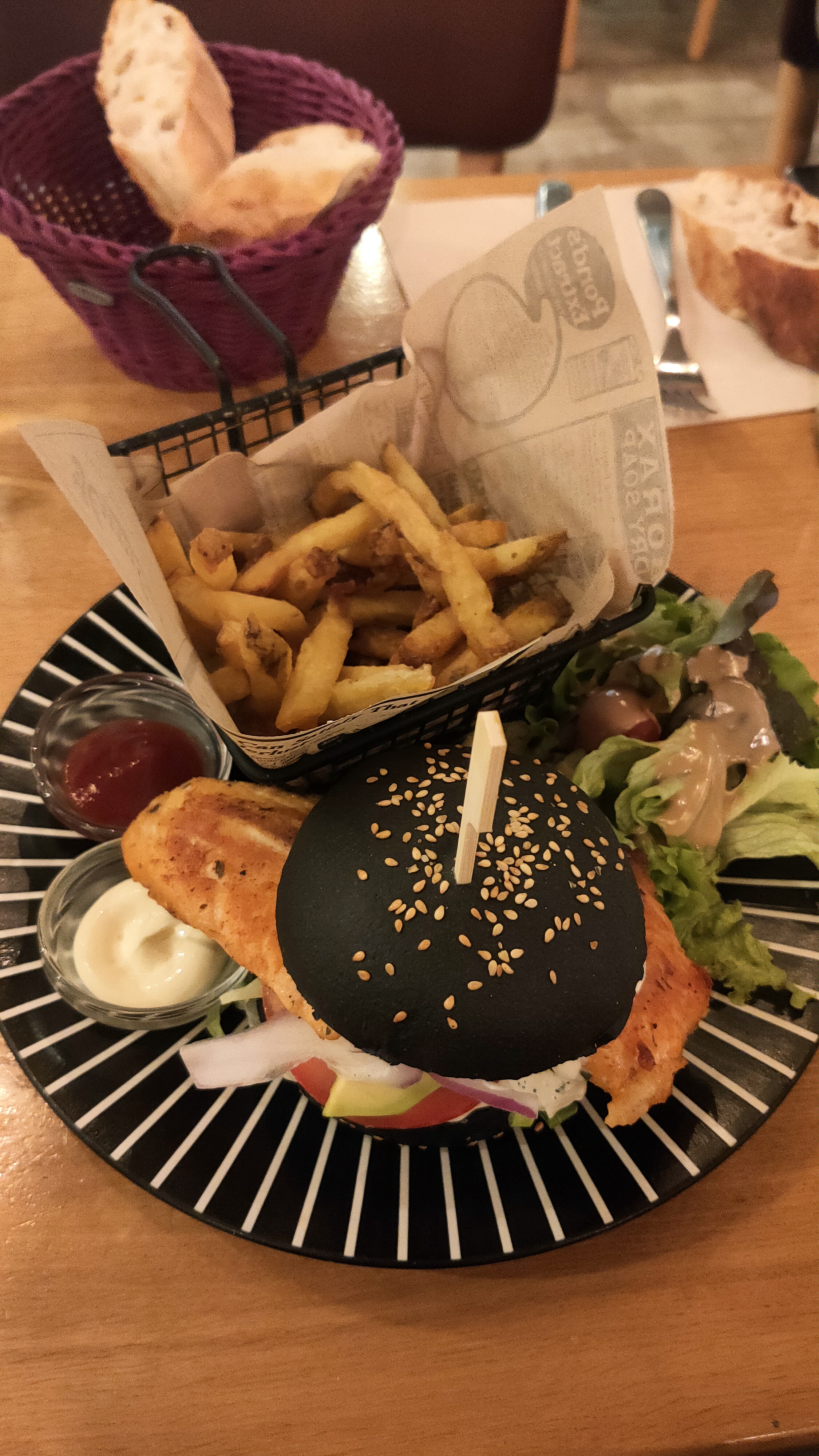 Ambiance super sympa et le burger au saumon était bon 😋