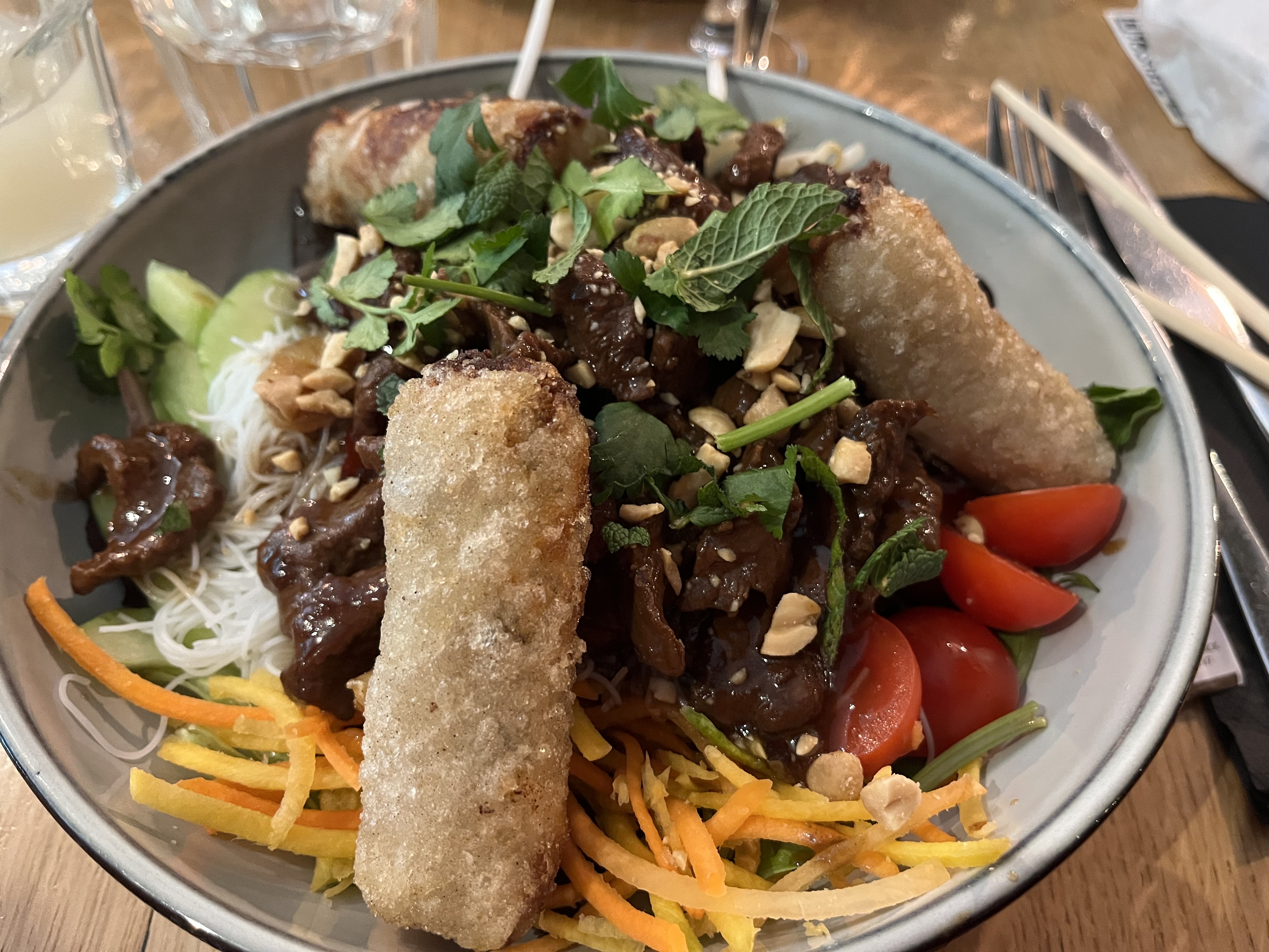 Plus d'une heure avant d'être servis ! Plat incomplet viande dur, nems froids... très décevant. J'ai mis une étoile de plus pour remercier le serveur qui nous a offert les cafés pour essayer de rattraper un peu.