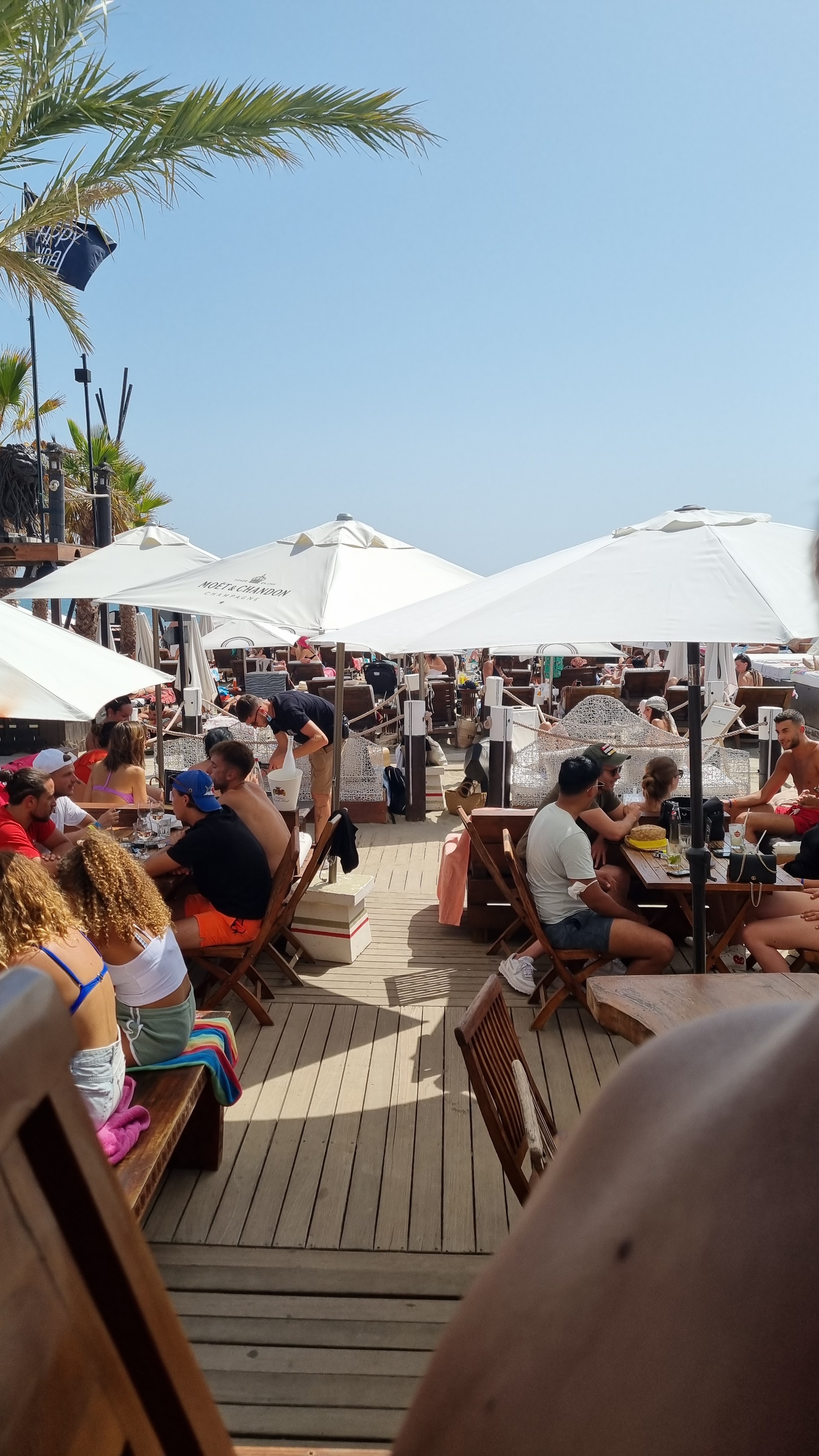 Si vous voulez etre pris pr un pigeon… ils decrètent plus de bieres a partir de 15h ( forcement ce n’est pas assez cher) car selon eux « le verre sur la plage c’est dangereux » … mais le verre des magnums a 200€ non!! Idem pour les bouteilles de blanc a 35€ , soit disant c’est la derniere a 14h un jour de happy sunday…faites du stock les gars et arretez de nous prendre pour des idiots. L’ambiance et la musique a changé au fur et a mesure des années et ca se ressend c’est +vide d’années en années … dommage pour les agathois fideles; il ne vous restera que les bourges touriste du Nord.