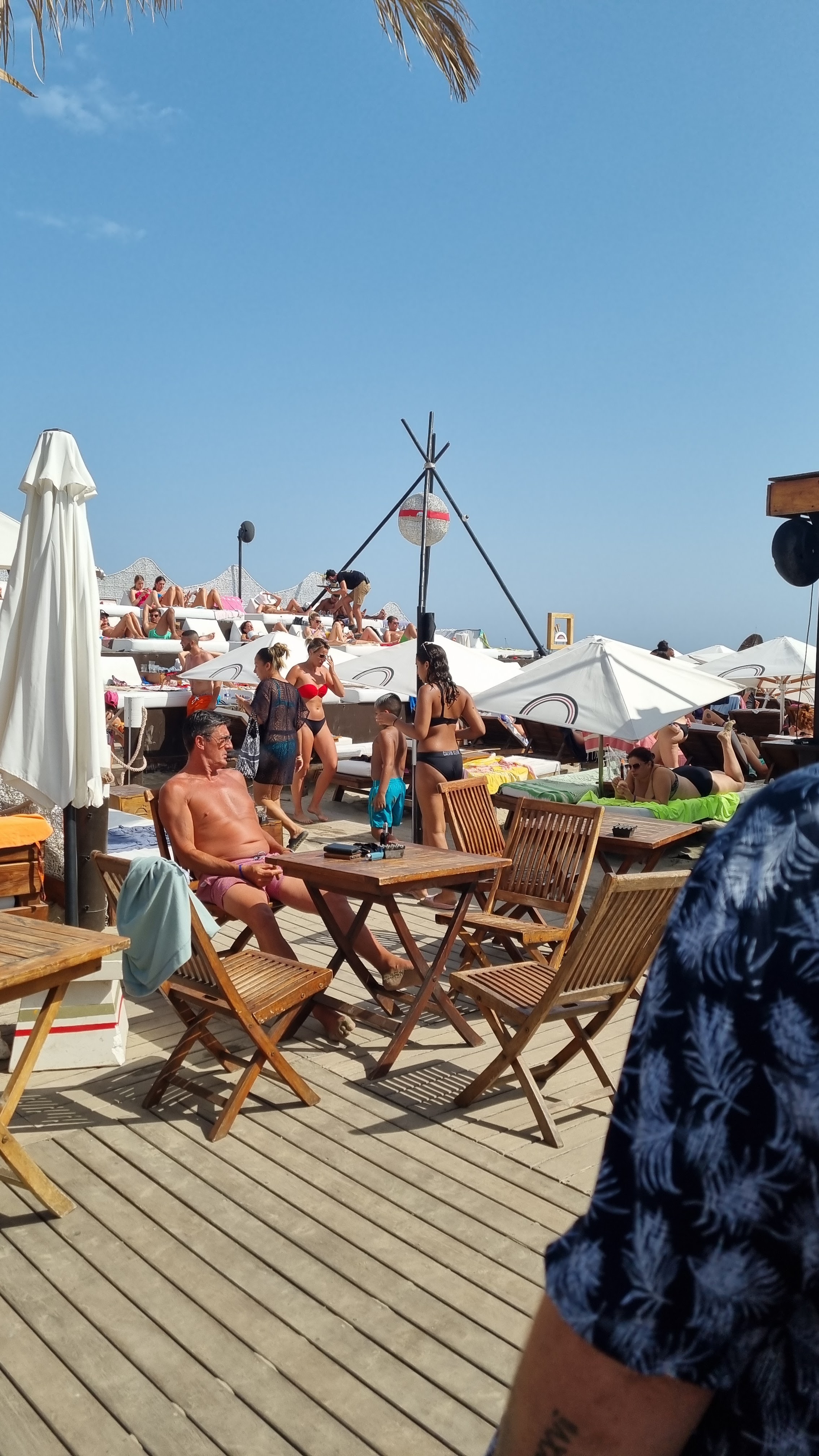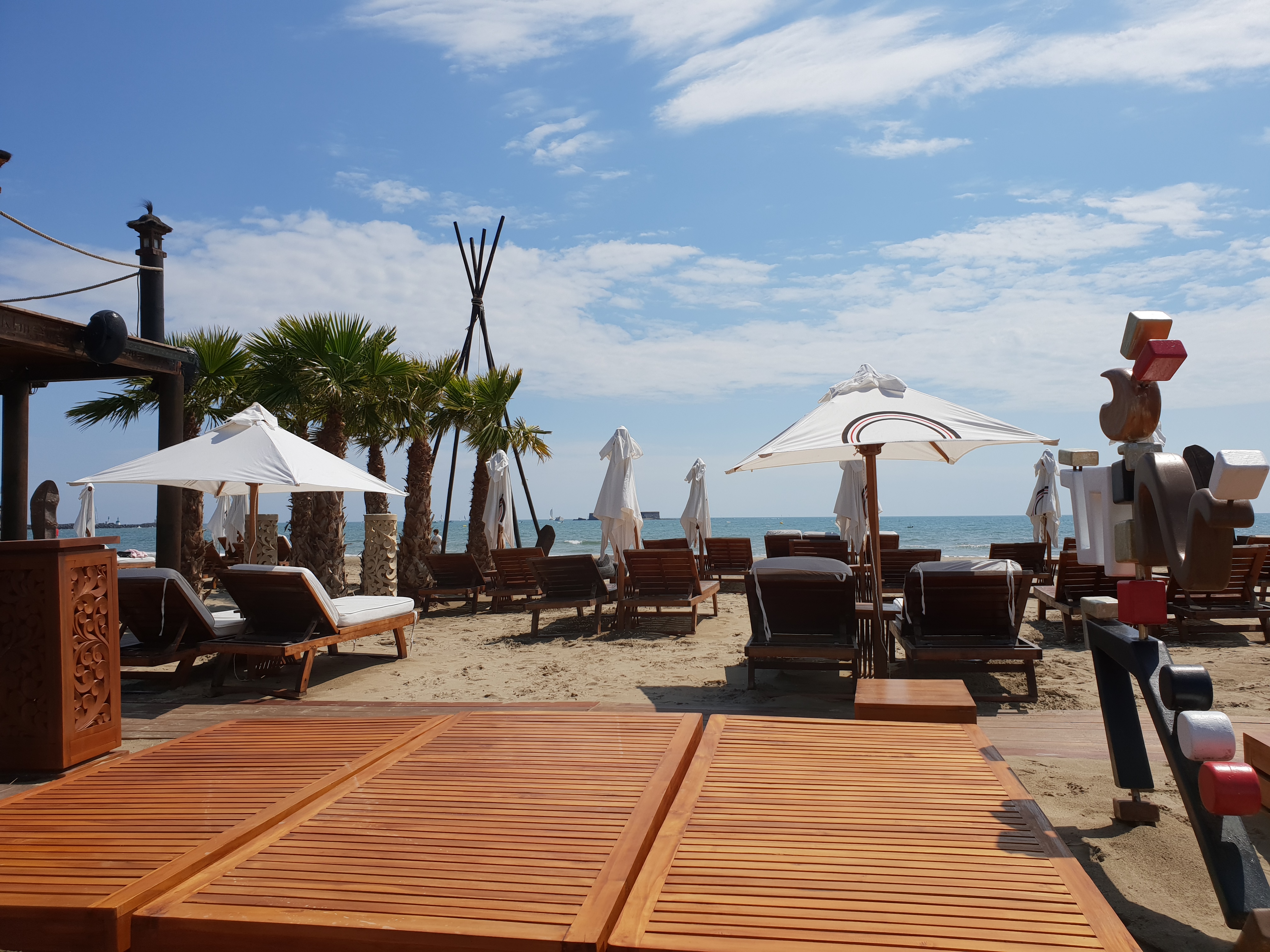 Il y a tellement d autres plages privées, n hésitez pas à passer votre chemin pour celle-ci Garçons de plage sympathiques, restaurant de qualité et après cela ça se gâte ! Personnel au restaurant qui se moque des clients quand ils retournent en cuisine, prix salés mais surtout pickpocket qui fréquentent la plage sous les yeux de tout ce petit monde en toute simplicité Dépouillés de nos liquidités avec un autre groupe, le directeur n a pas eu la délicatesse de venir vers nous, bien au contraire un personnage bien hautain Nous n y retournerons plus