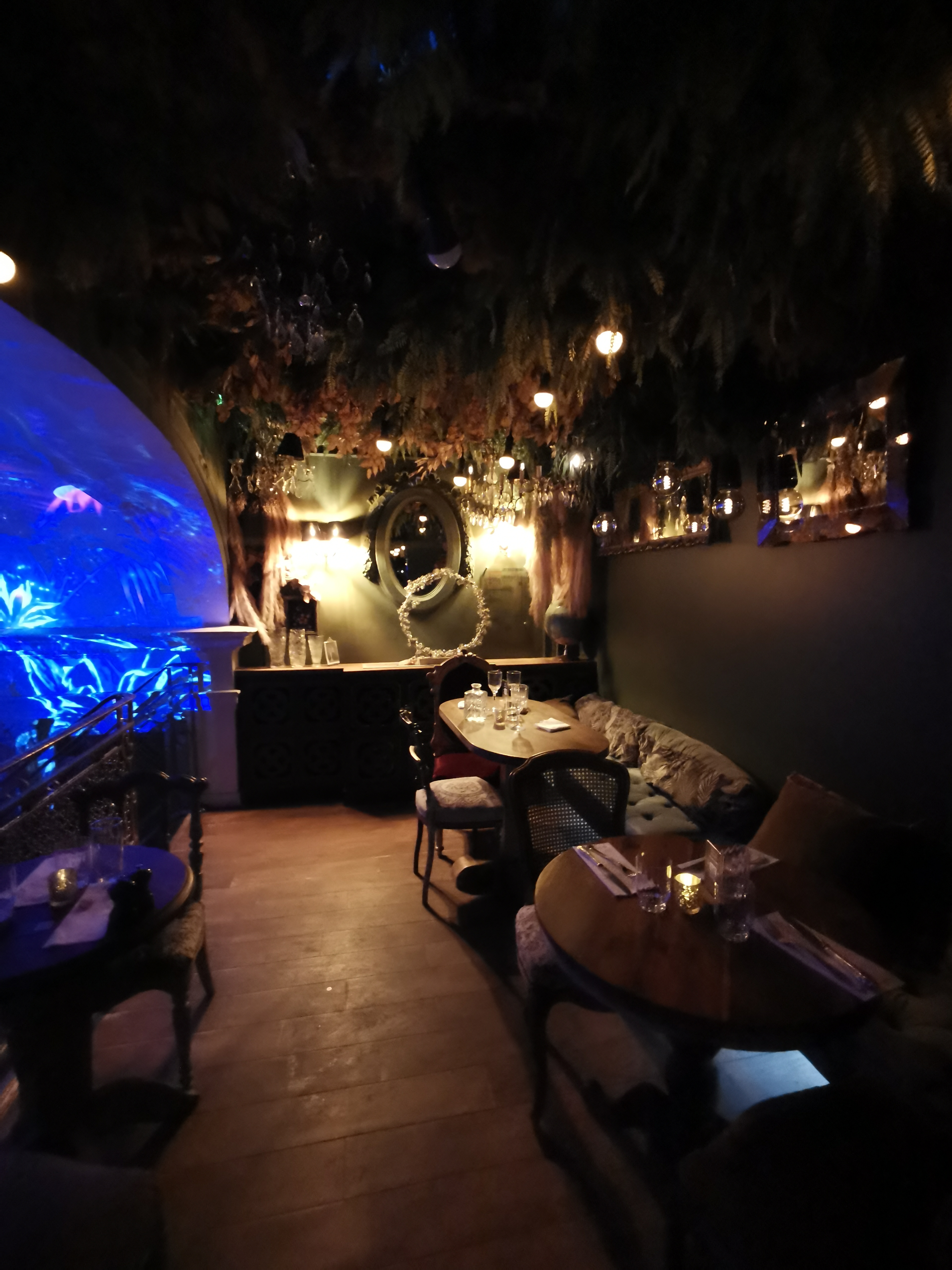 Tout dans cet endroit est parfait ! Le concept est intelligent et l'immersion fonctionne si bien ! La scénographie change souvent au cours de l'heure, et les transitions sont bien faites ! Mais en plus la cuisine est excellente (carpaccio de poisson, viande, saumon...). Vous devriez absolument essayer les cocktails, ils sont délicieux C'était un très bon moment !