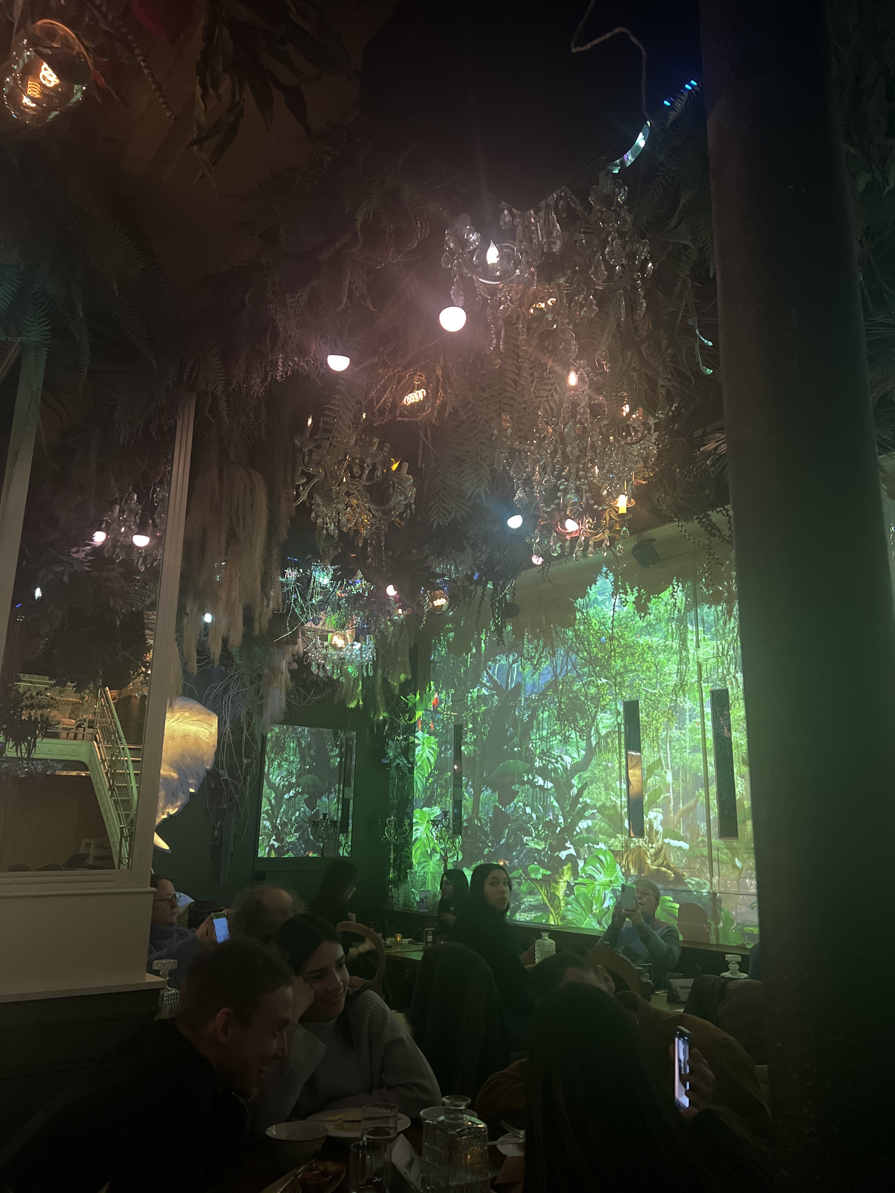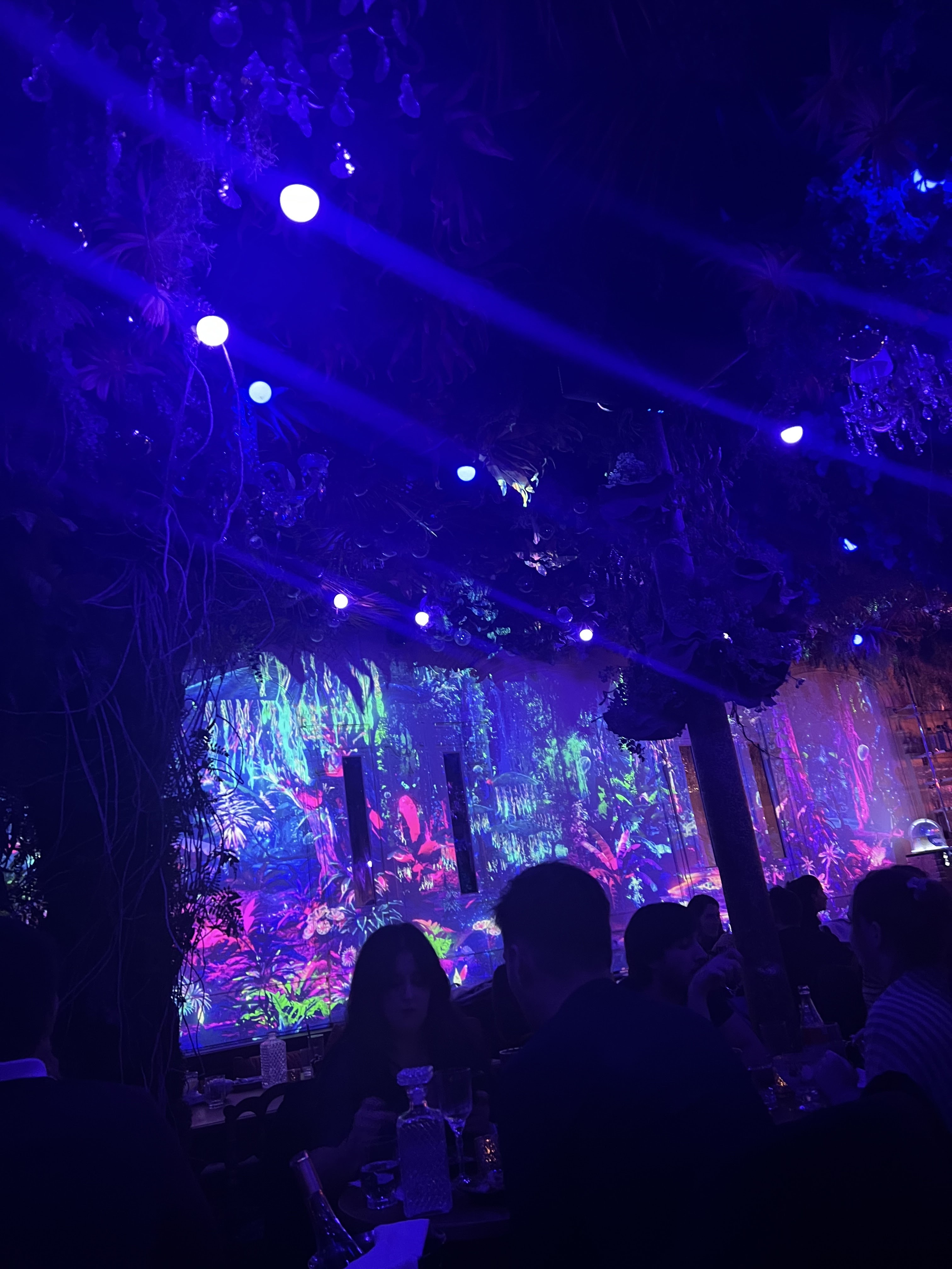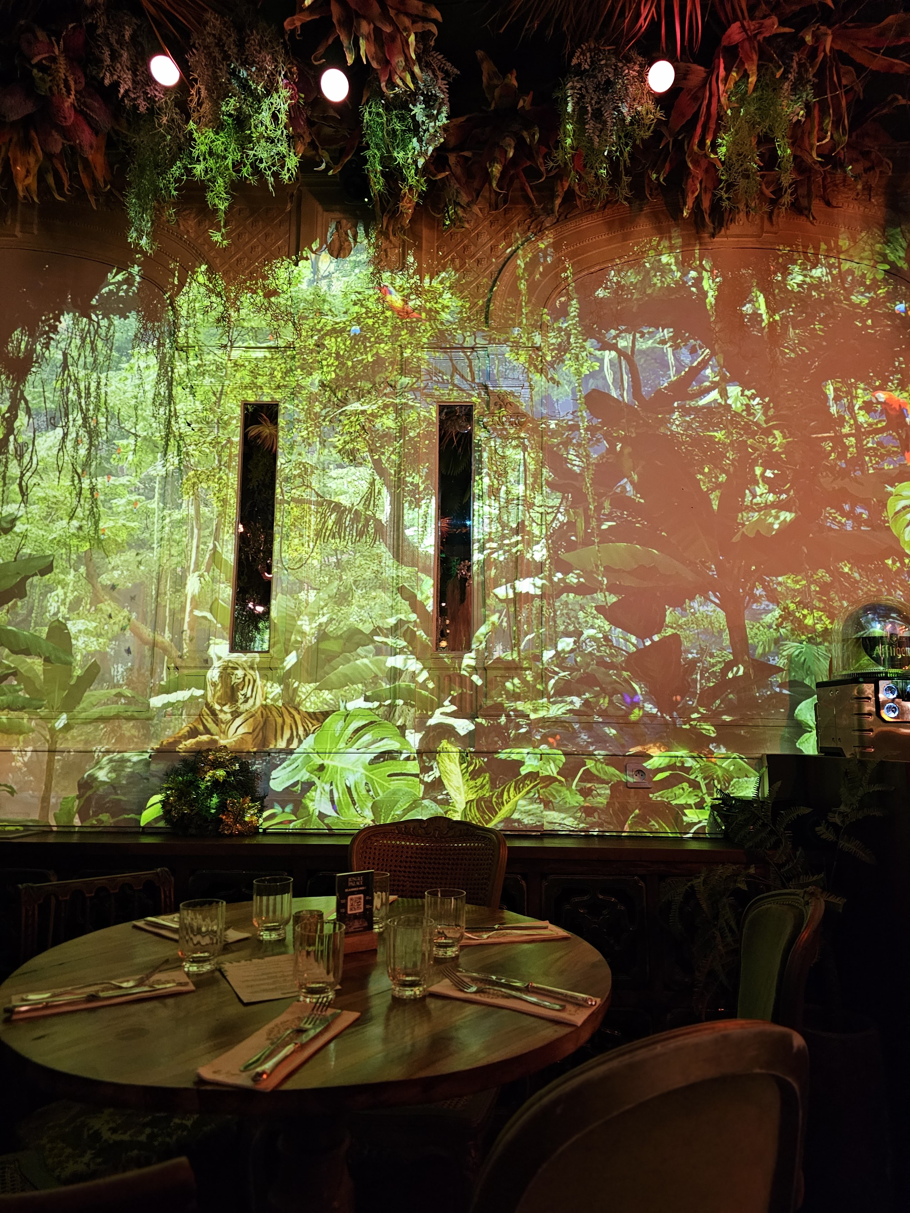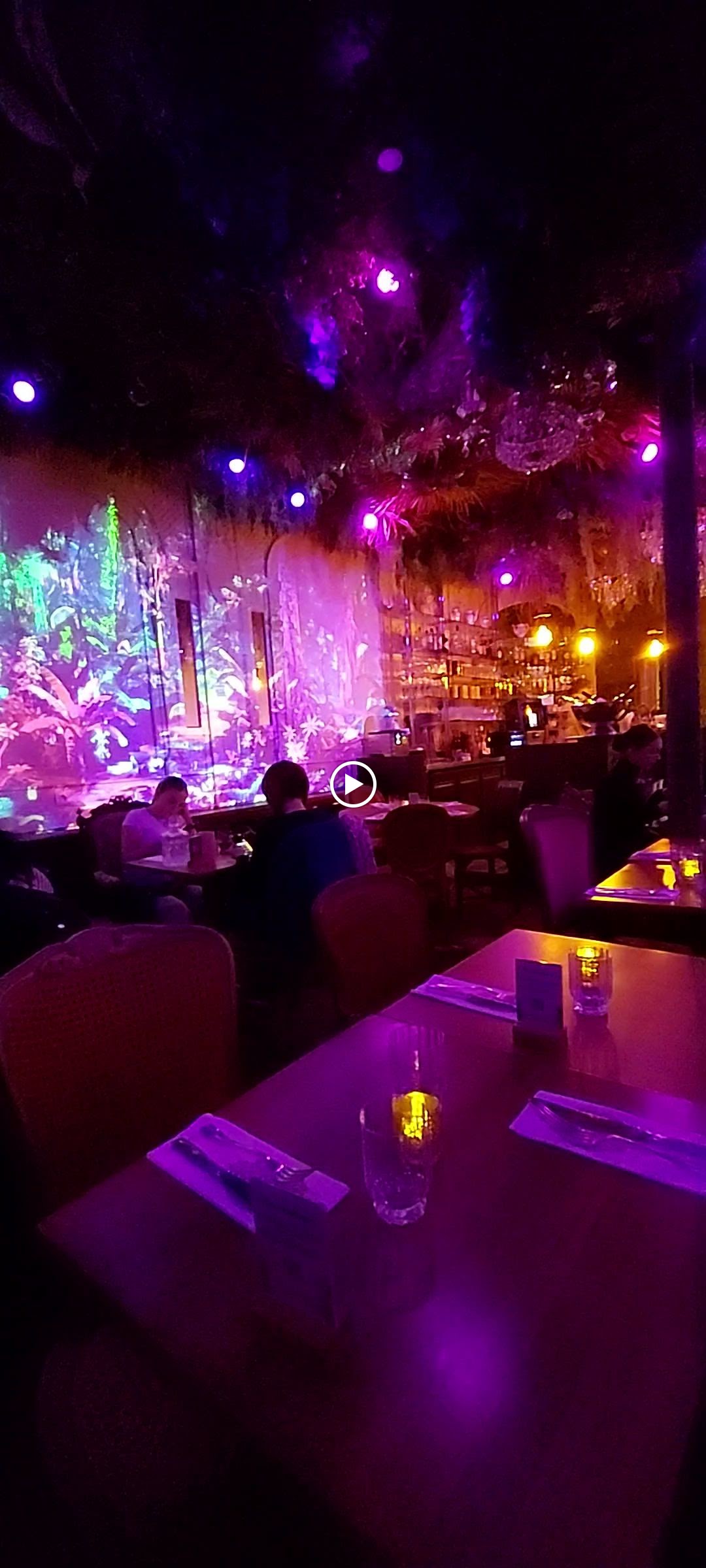 Très beau lieu et nourriture très bonne (même si les portions des entrées étaient un peu petites pour le prix). Cependant on était placées à l'étage qui n'était pas en total immersion jungle, on pouvait uniquement voir les illuminations de la salle principale (voir les photos); ce qui est un peu dommage car on n'a pas vécu le côté immersif. On nous a également servi les plats alors qu'on avait pas fini les entrées; ce qui est également dommage.