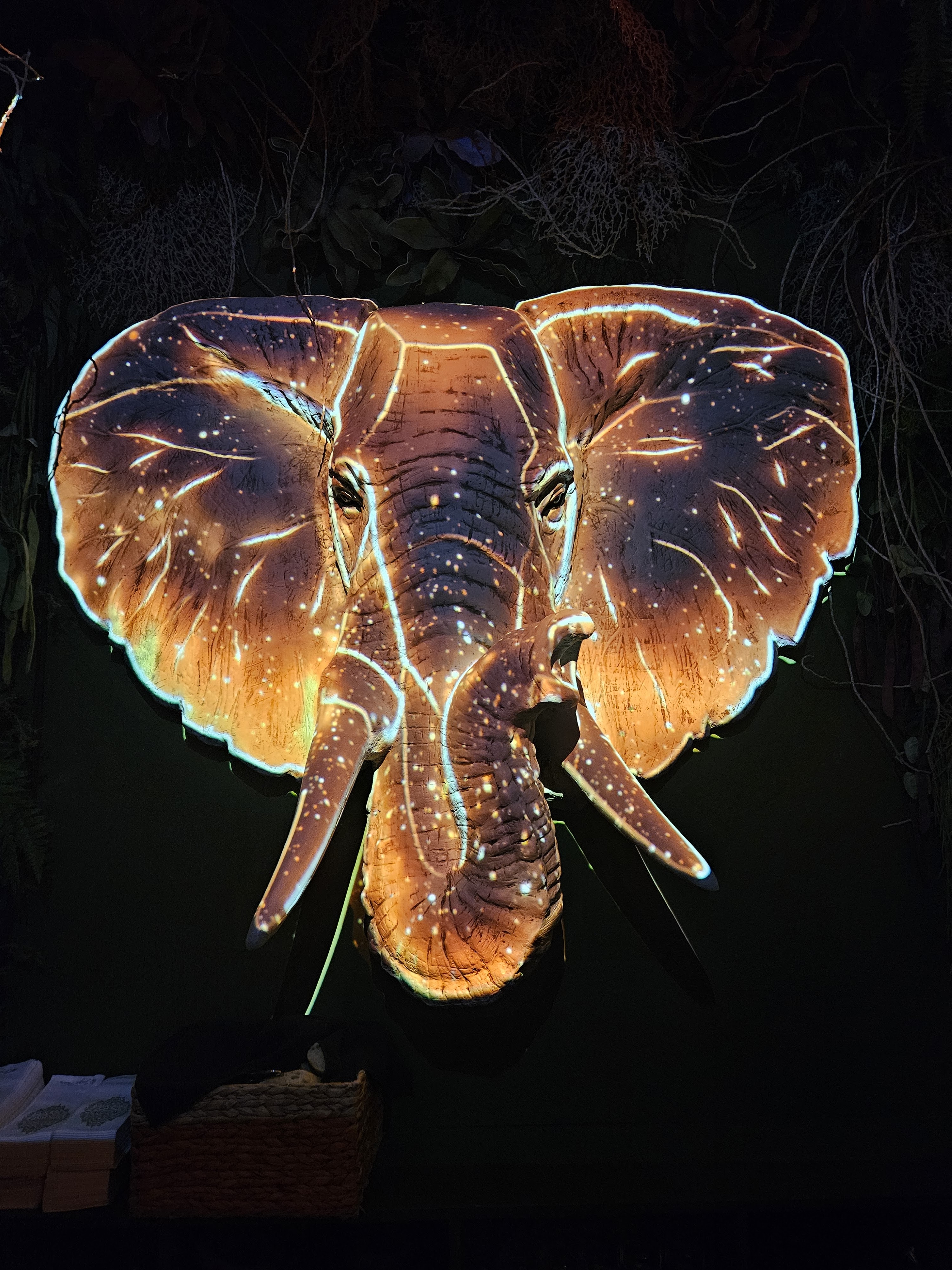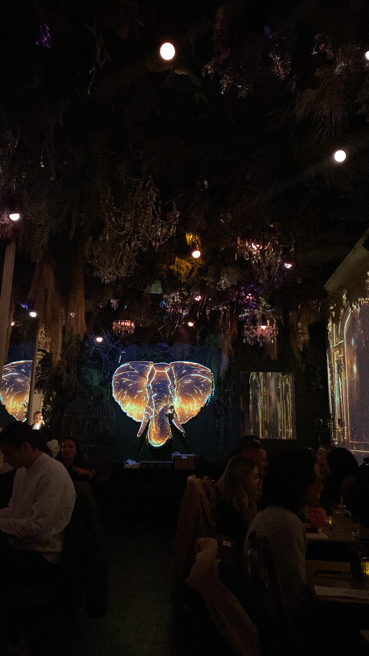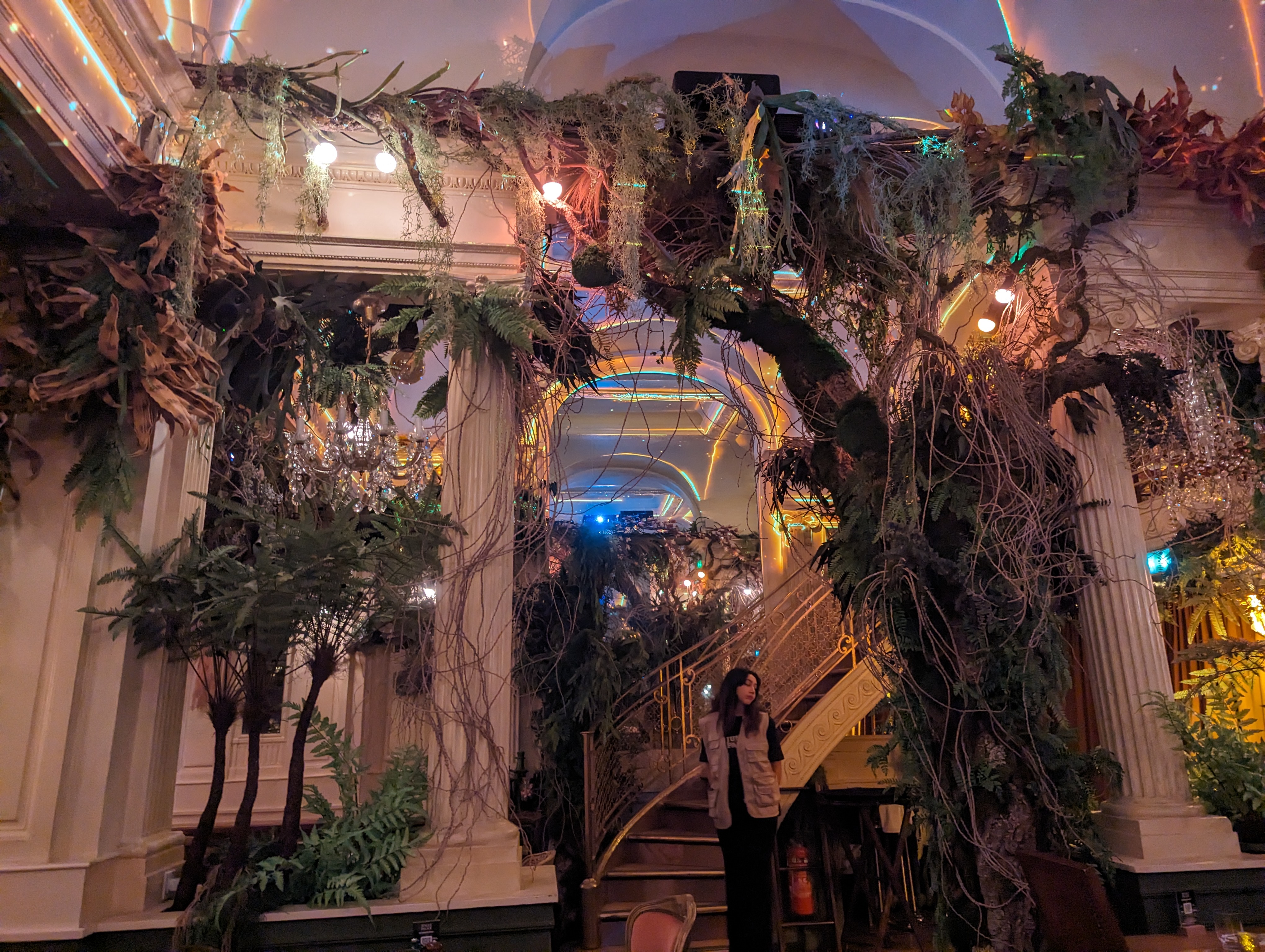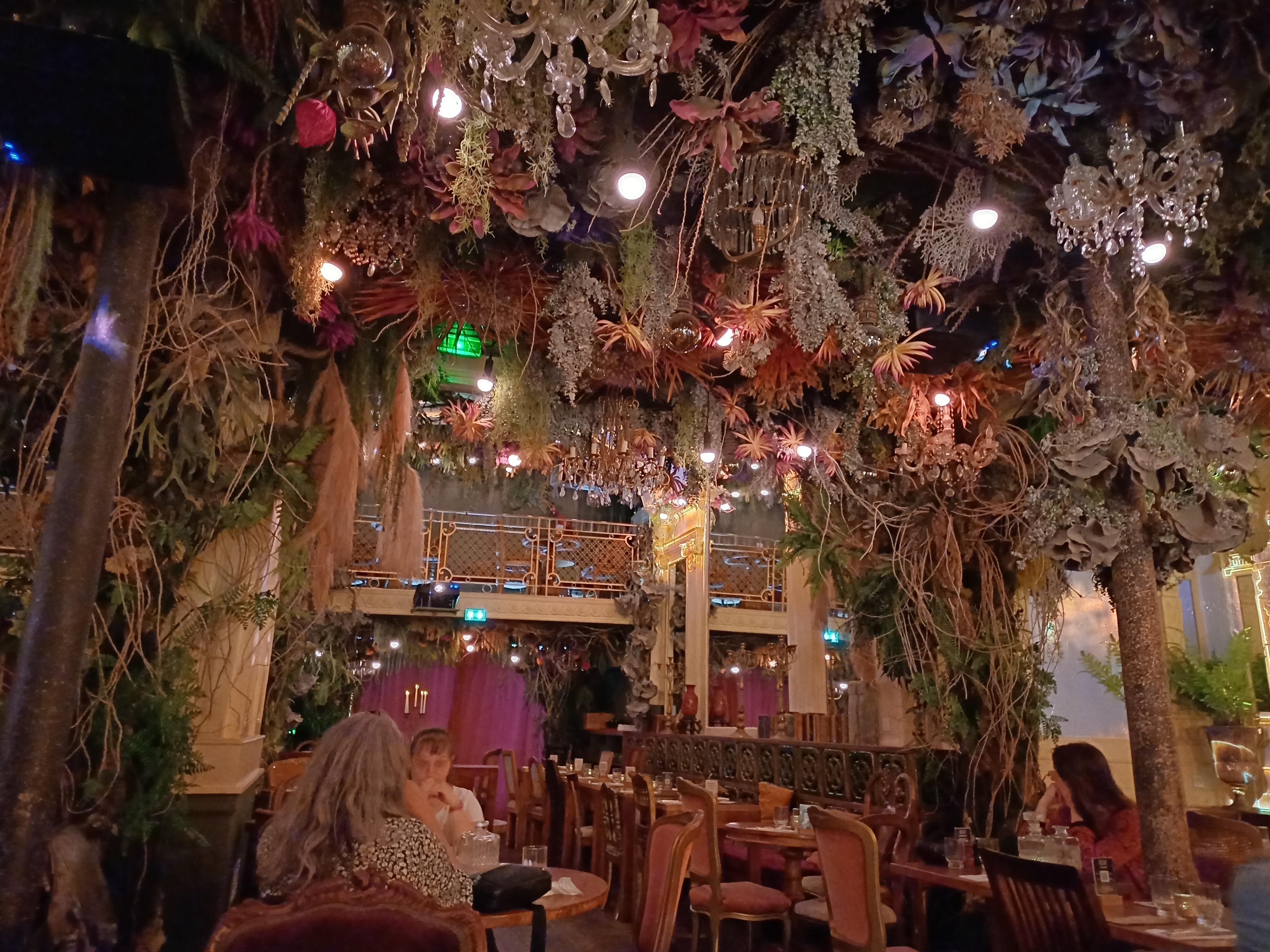 Très beau lieu et nourriture très bonne (même si les portions des entrées étaient un peu petites pour le prix). Cependant on était placées à l'étage qui n'était pas en total immersion jungle, on pouvait uniquement voir les illuminations de la salle principale (voir les photos); ce qui est un peu dommage car on n'a pas vécu le côté immersif. On nous a également servi les plats alors qu'on avait pas fini les entrées; ce qui est également dommage.