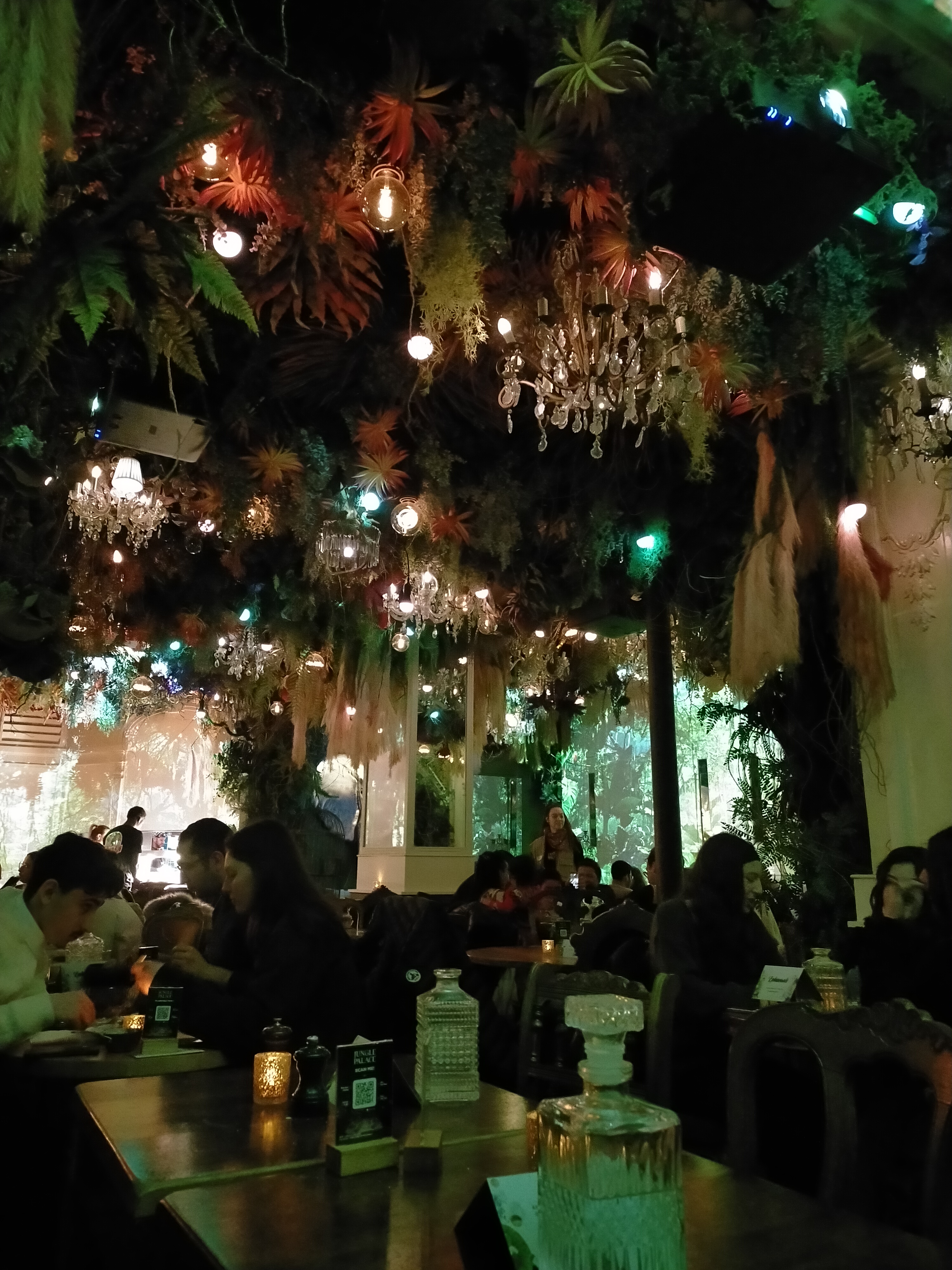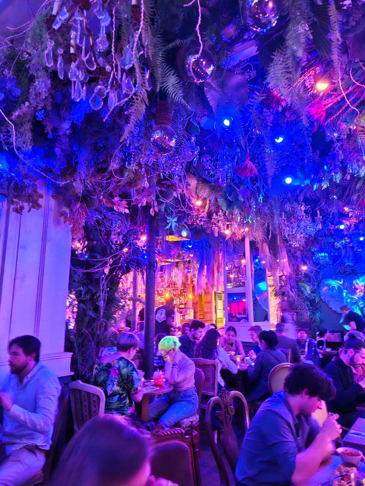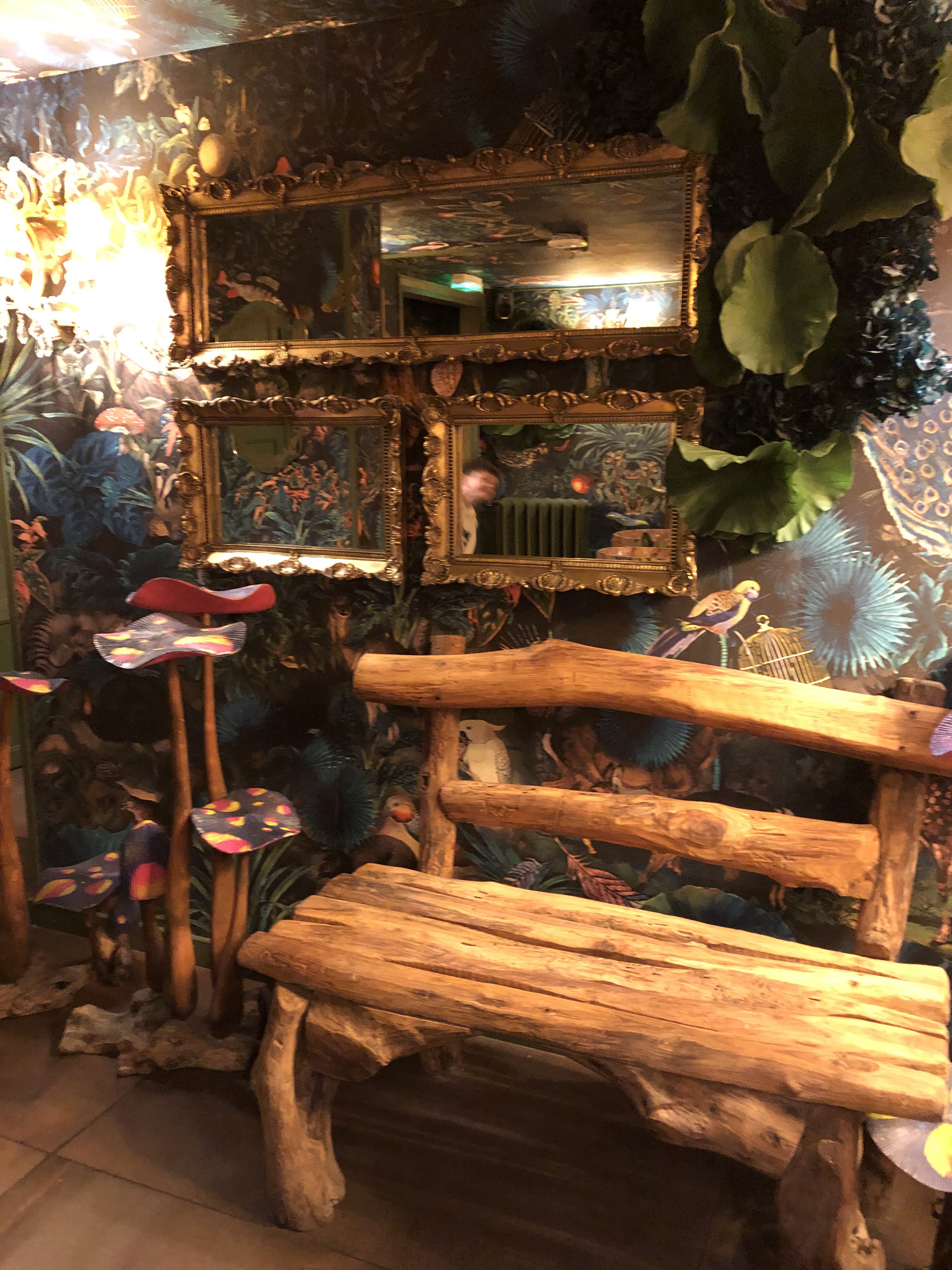 Un lieu magique, une jungle fantaisy, on oublie Paris. Les toilettes valent aussi le détours. Merci à Mathis pour sa gentillesse, son humour, et son service. On y mange plutôt bien, mais les portions sont un peu chiches. Et les chaises, pas toutes à la hauteur....