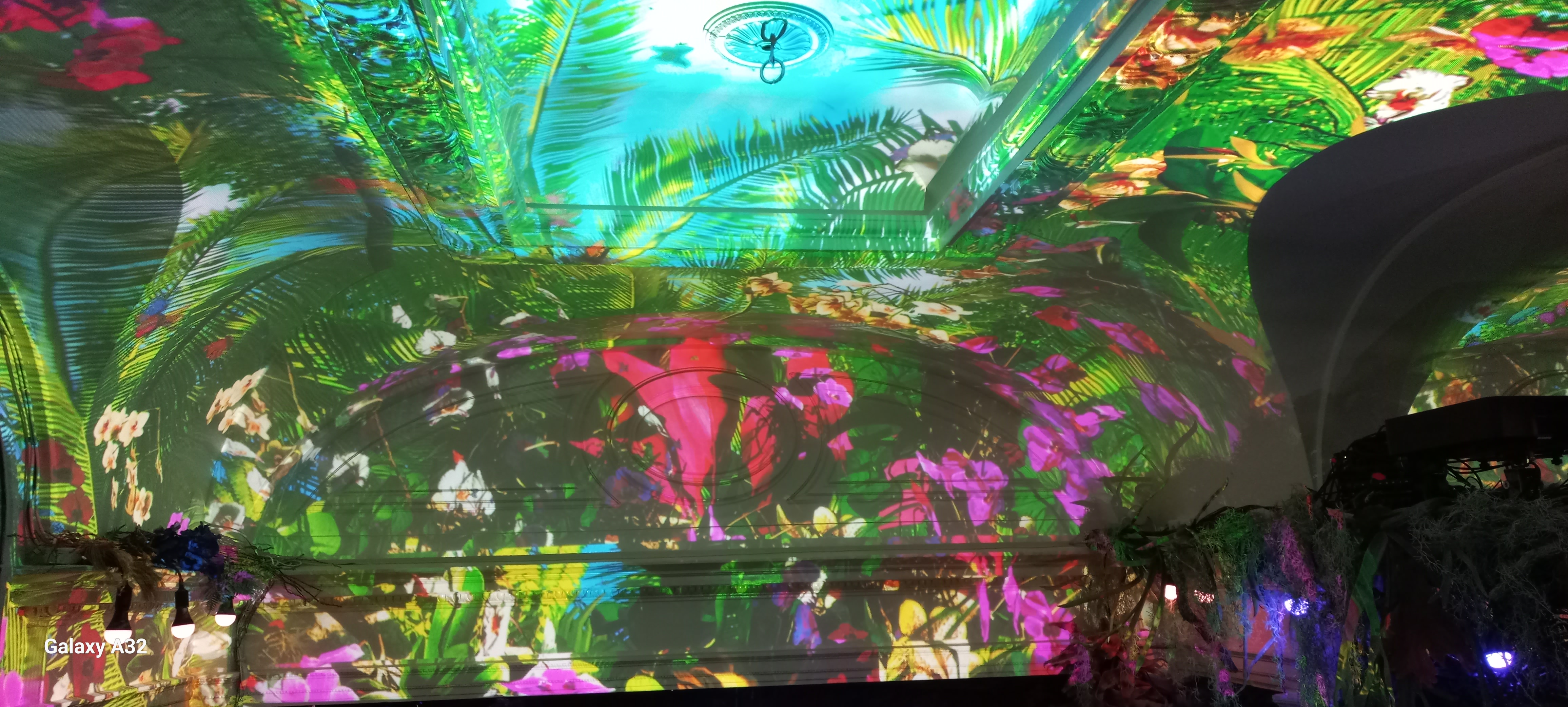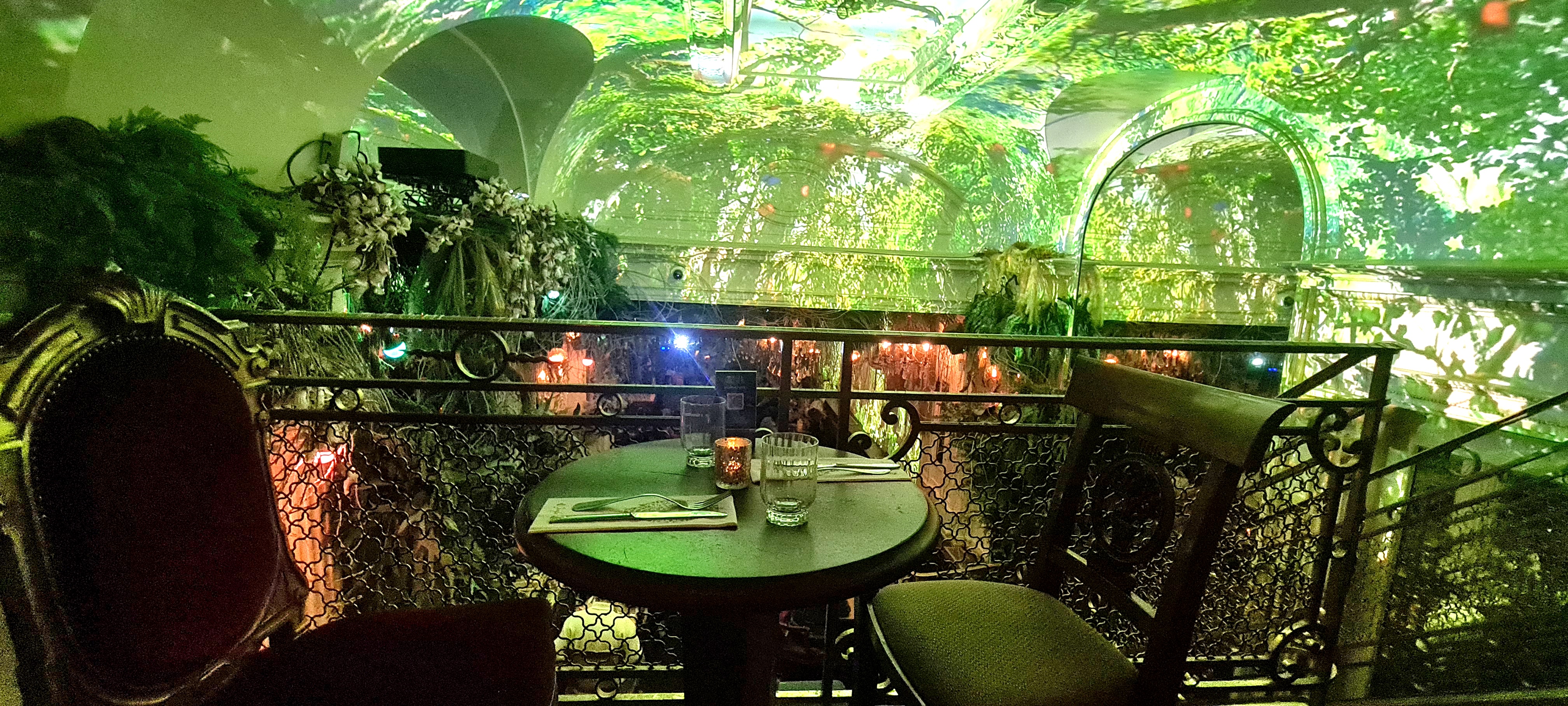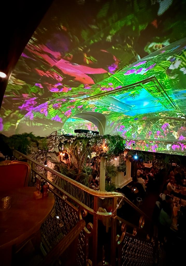 l’ambiance n’est pas assez Immersive à mon goût.. Des plantes qui pendent du plafond, rien de nouveau. C’est vrai que les jeux de lumière et la projection au mur sont sympas. Mais je n’ai pas eu d’effet Waouh en rentrant dans le restaurant. mais La cuisine était délicieuse, le personnel au top Agatha super sympa.