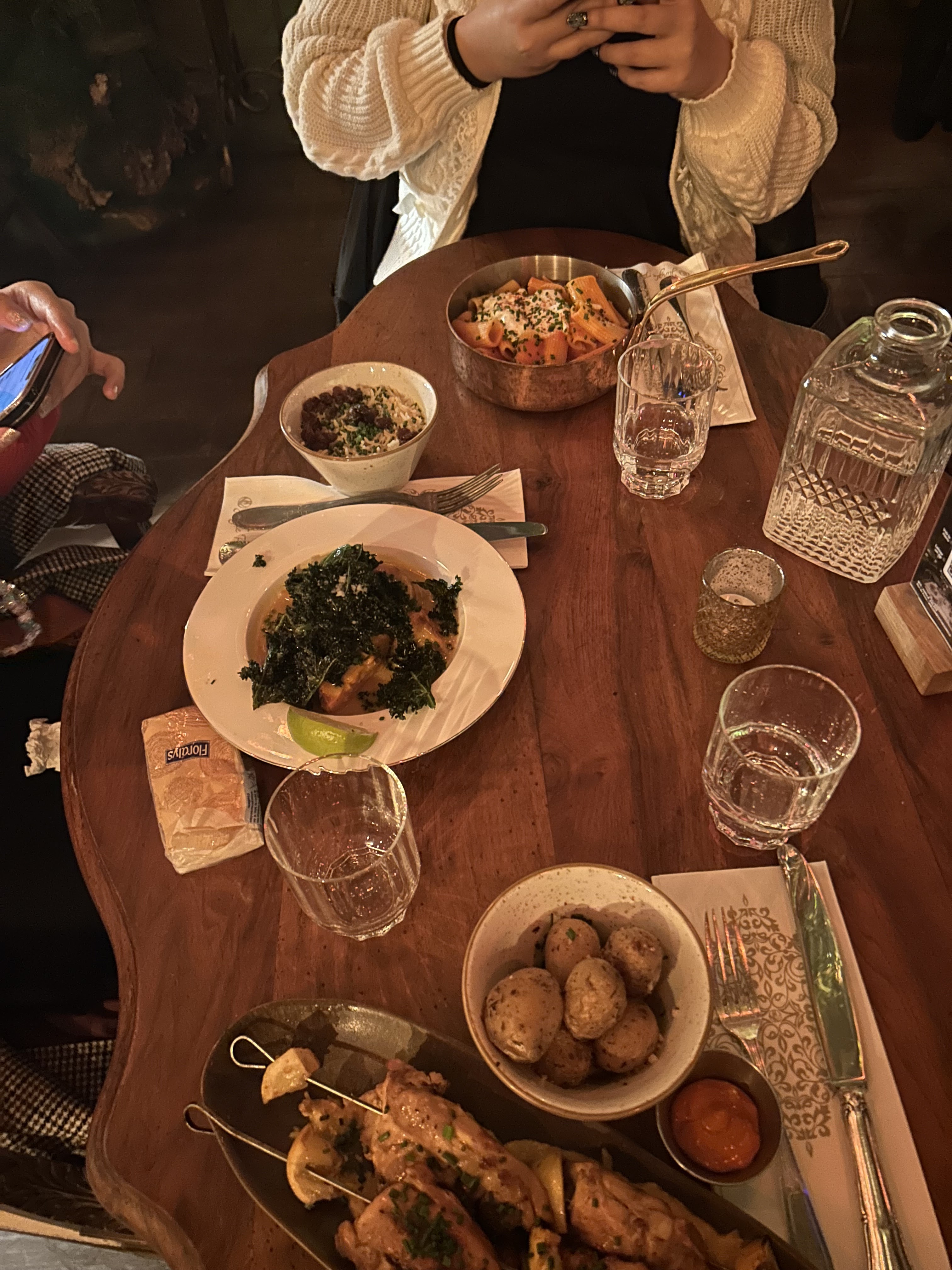 L’ambiance est magique, les couleurs, décors et musique nous plongent dans un autre univers. La nourriture est bonne, les cocktails aussi. J’ai particulièrement aimé les entrées que nous avons commandé. Un peu déçue par le dessert au chocolat dont la mousse était amer. Super pour un moment en famille.