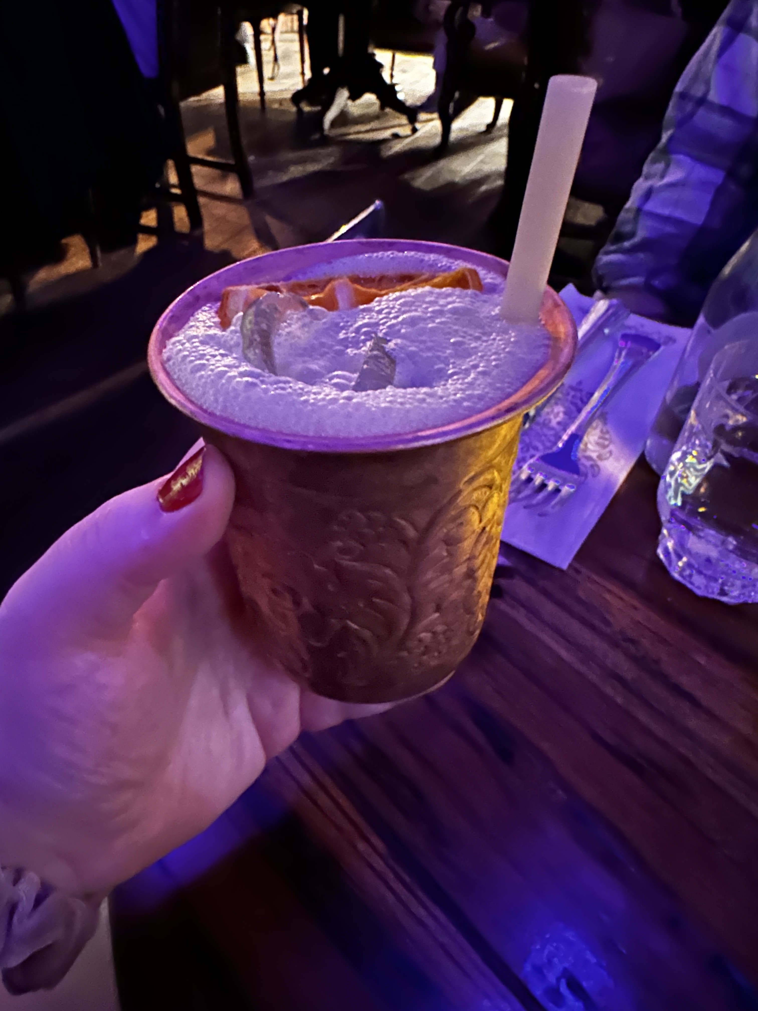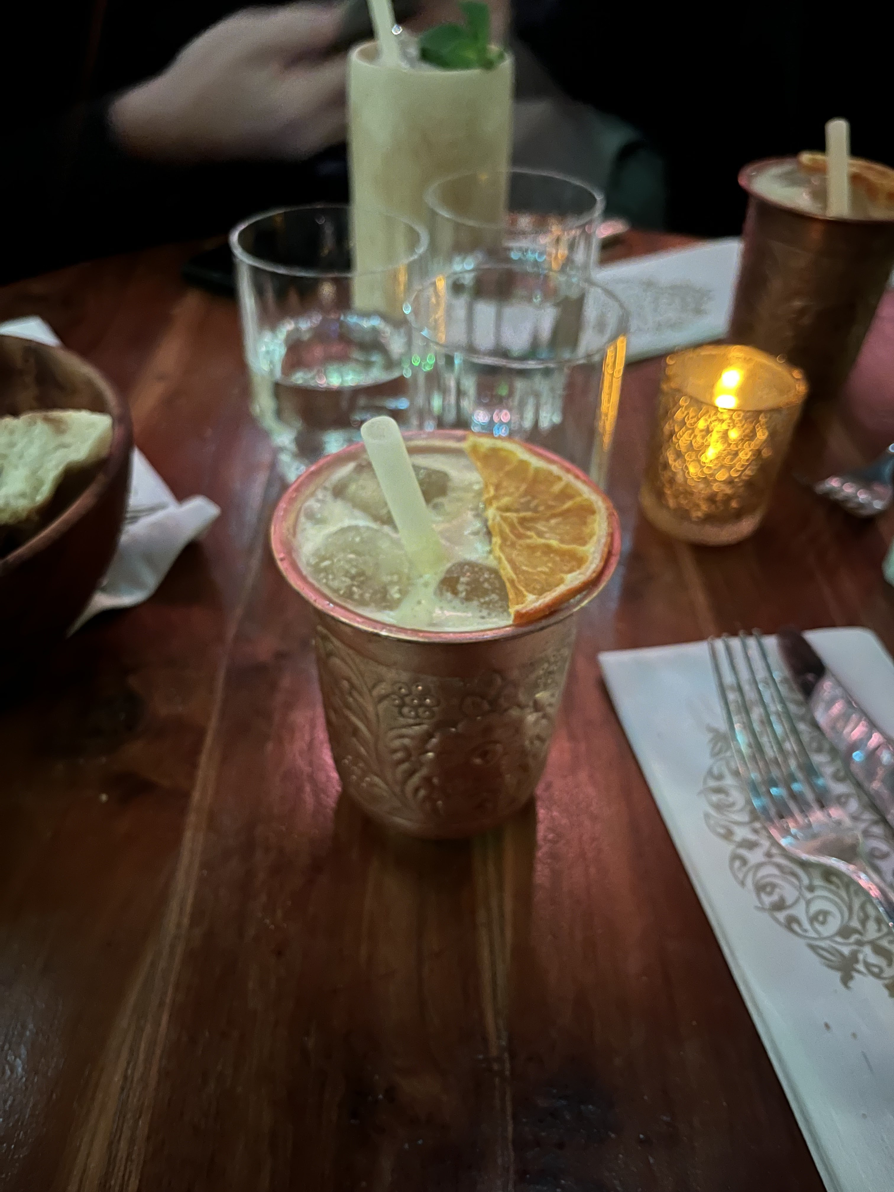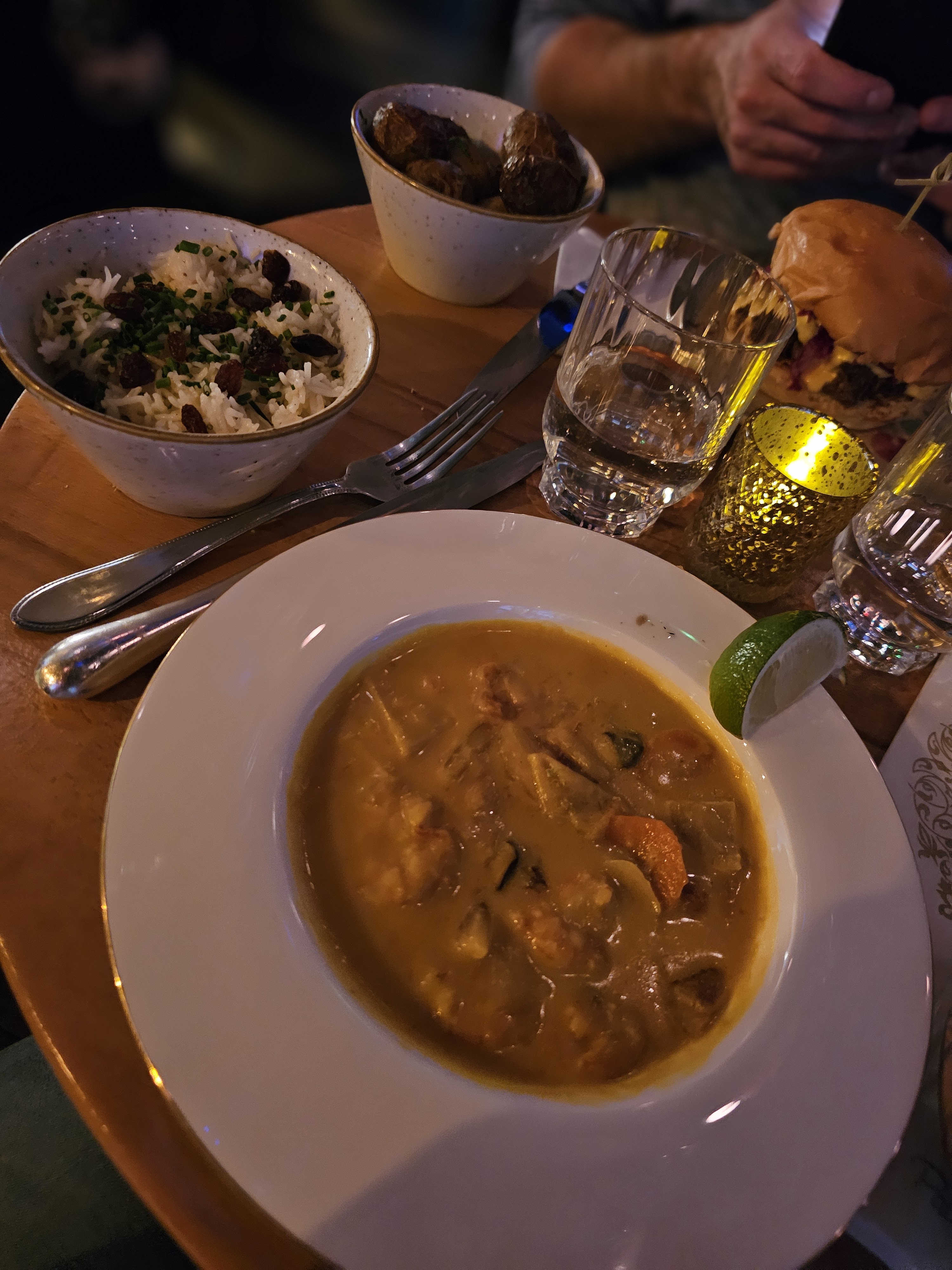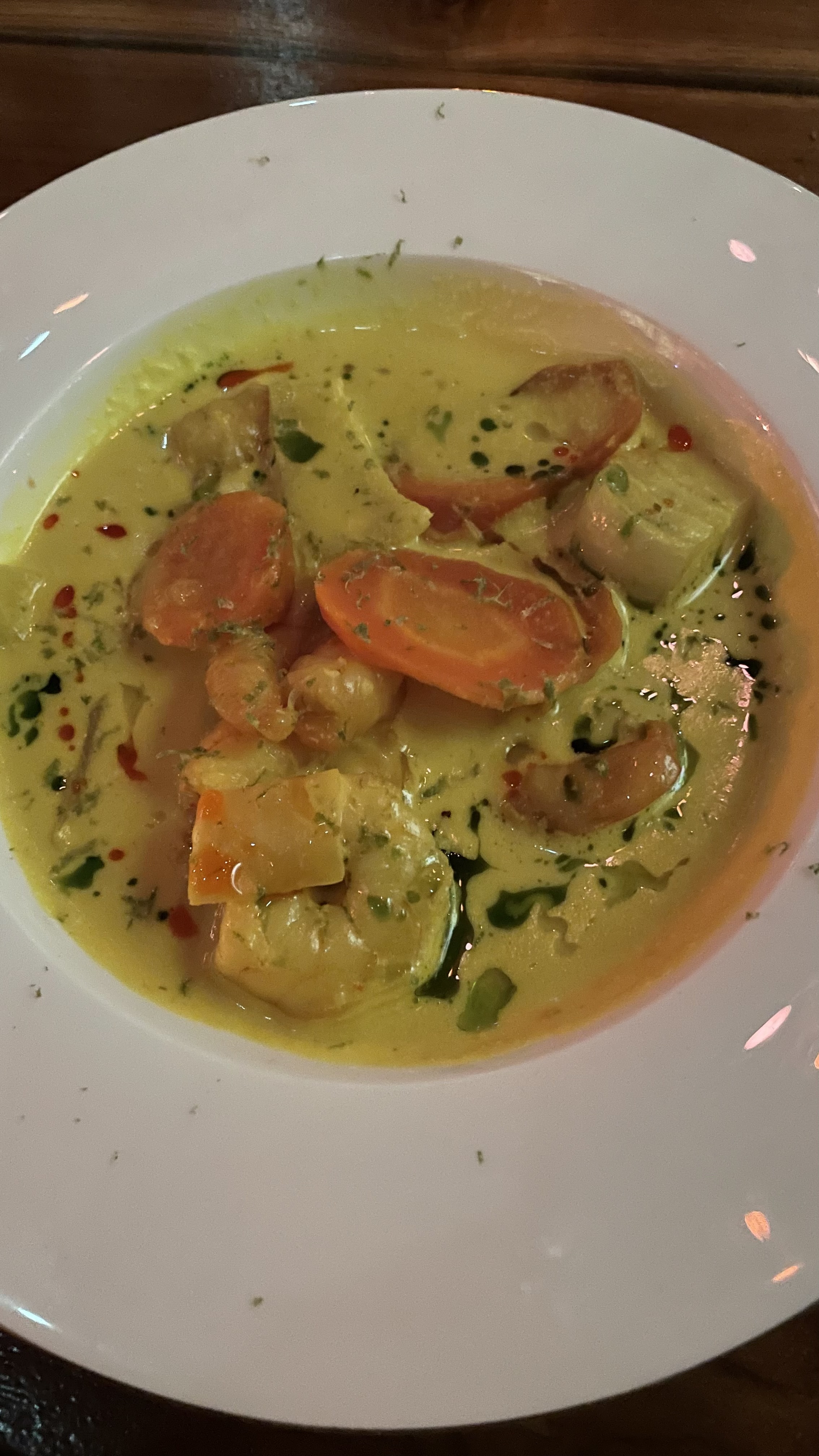 Wow, juste wow ! L'ambiance, la nourriture, les boissons, le dessert, le service, la propreté et l'expérience étaient phénoménaux. Recommande fortement!!! Le Gorilla Mule était ma boisson préférée mais ils étaient tous bons. Les brochettes de poulet et le curry de crevettes étaient délicieux ! Nous avons également eu le dessert au chocolat et à la banane et c'était tellement bon. Notre serveur était très gentil et très attentionné aussi.