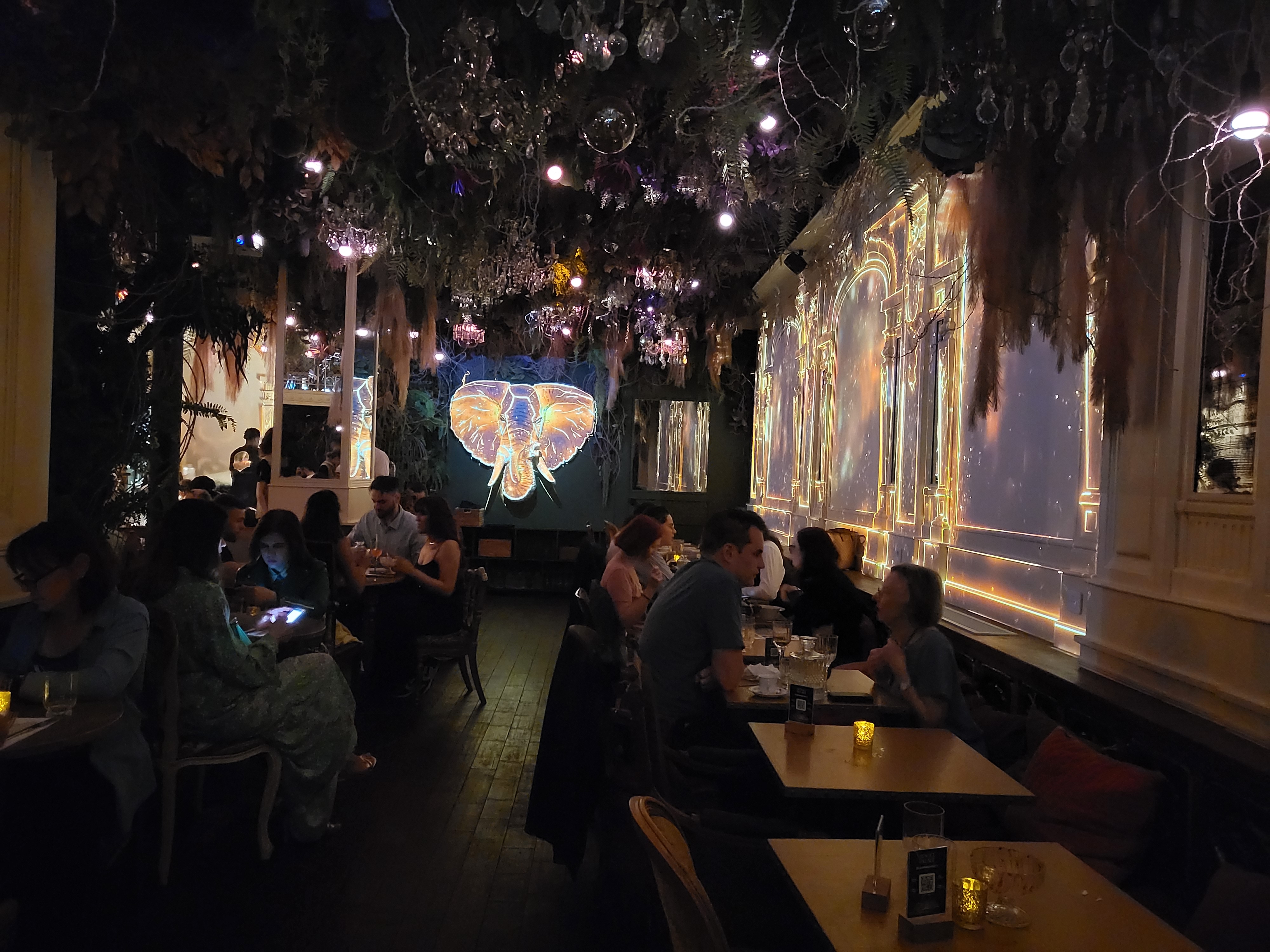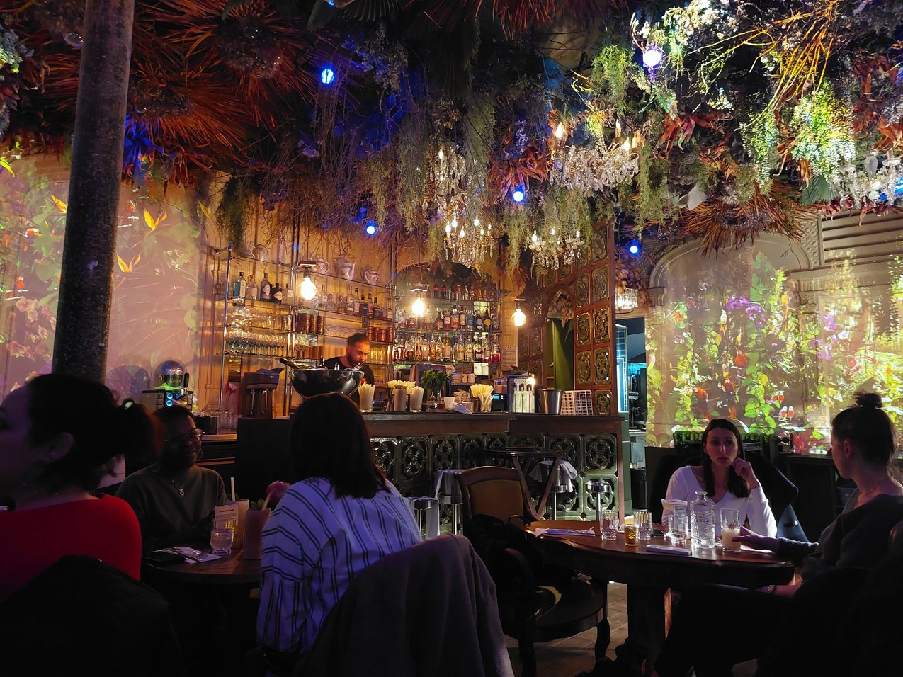 Très belle découverte. Nous avions déjà essayé Under The Sea, et nous avons légèrement préféré Jungle Palace. L'accueil et les serveuses très sympas, je pense que c'est la base des restau Ephemera ce qui est un gros plus. Le menu est varié et original ce qui change des cartes répétitives, les portions correctes, les plats bien présentés, et le tout sous le thème de la jungle. Nous avons apprécié l'entrée, les plats, les desserts et les cocktails commandés. L'ambiance est sympa, les projections murales, la déco et les effets sonores nous submergent dans le contexte de jungle. Reste à tester Stellar, leur troisième enseigne sous le thème spatial. Il faut bien réserver à l'avance, surtout pour un week-end. Nous recommandons cette adresse.