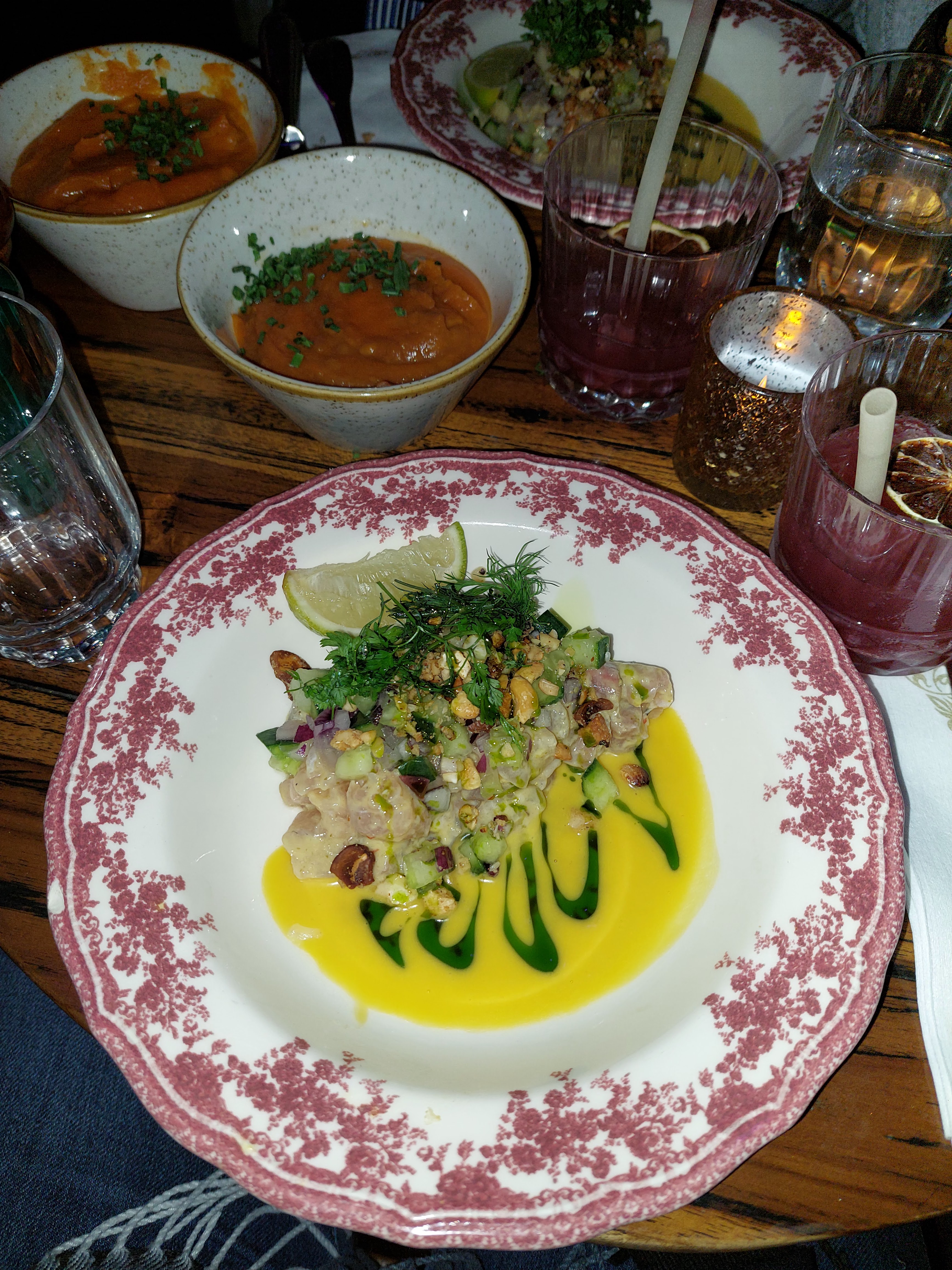 Le lieu est magnifique, nous sommes émerveillés devant ces décors. Les cocktails etaient bons , le plat (ceviche) était bon (manquait légèrement d'assaisonnement j'ai donc redemandé du citron )mais il manquait en quantité surtout le poisson (voir la photo) et le dessert ça allait sans plus.